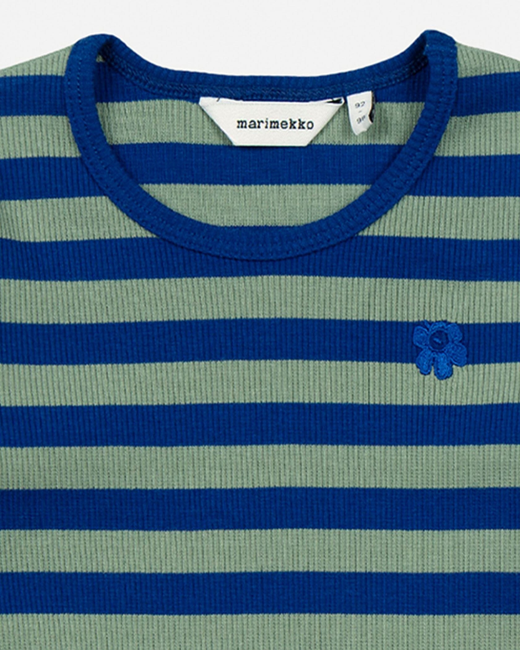 MarimekkoからInnostaa Tasaraita Unikkoの長袖カットソーが登場です。コットンメインの肌に優しい着心地、アイキャッチなボーダー柄に同色のロゴが目を引きます。1枚着はもちろんインナーとしてもおすすめ、同柄のパンツとのセットアップでそろえるのも楽しいアイテムです。