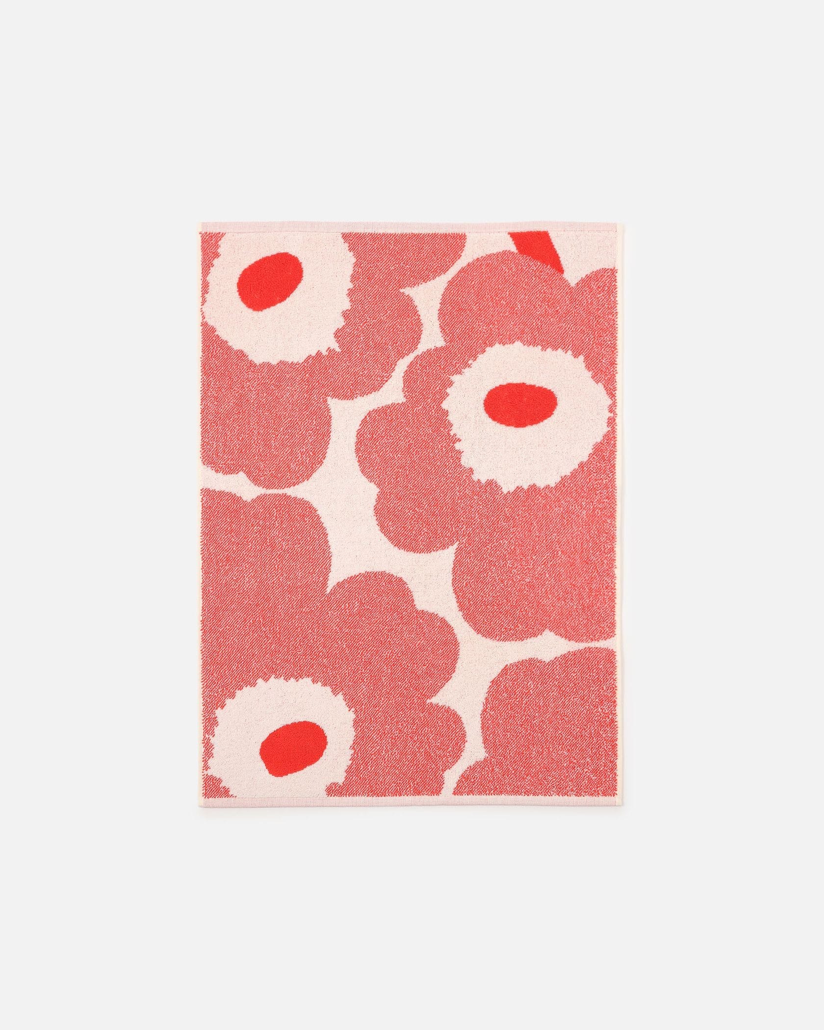 Unikko柄を全面に配した華やかなフェイスタオル。目にするたび使うたびに、ハッピームードを呼び込んでくれそう。あらゆる用途に使いやすいサイズ感も魅力です。