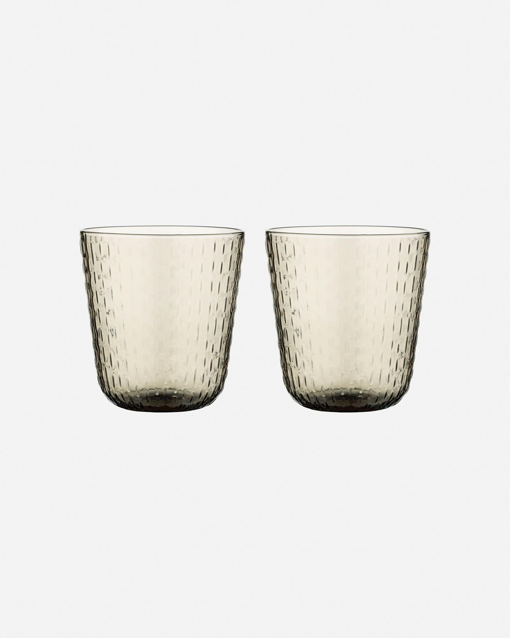 繊細な凹凸模様で雨を表現したペアグラス。シンプルなフォルムで、気軽に手に取りやすいデザインに。食卓にさりげなく置いておくだけでも優雅な気分にしてくれそうなアイテム。