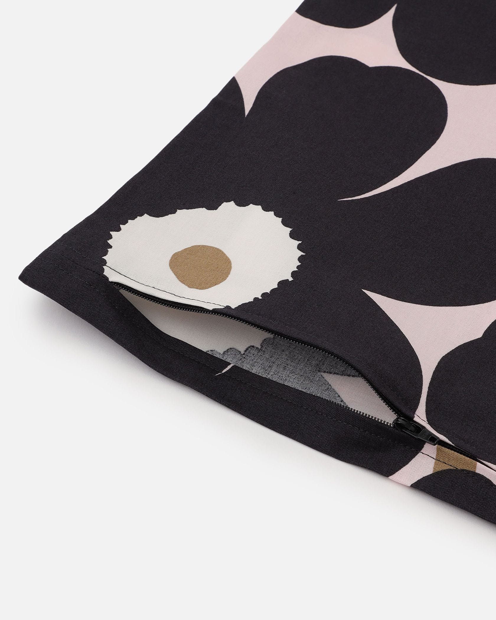 ダークカラーのUnikko柄がシックなクッションカバー。ナチュラルな家具との相性も良く、手軽にインテリアのイメージチェンジを楽しみたいシーンにもおすすめです。