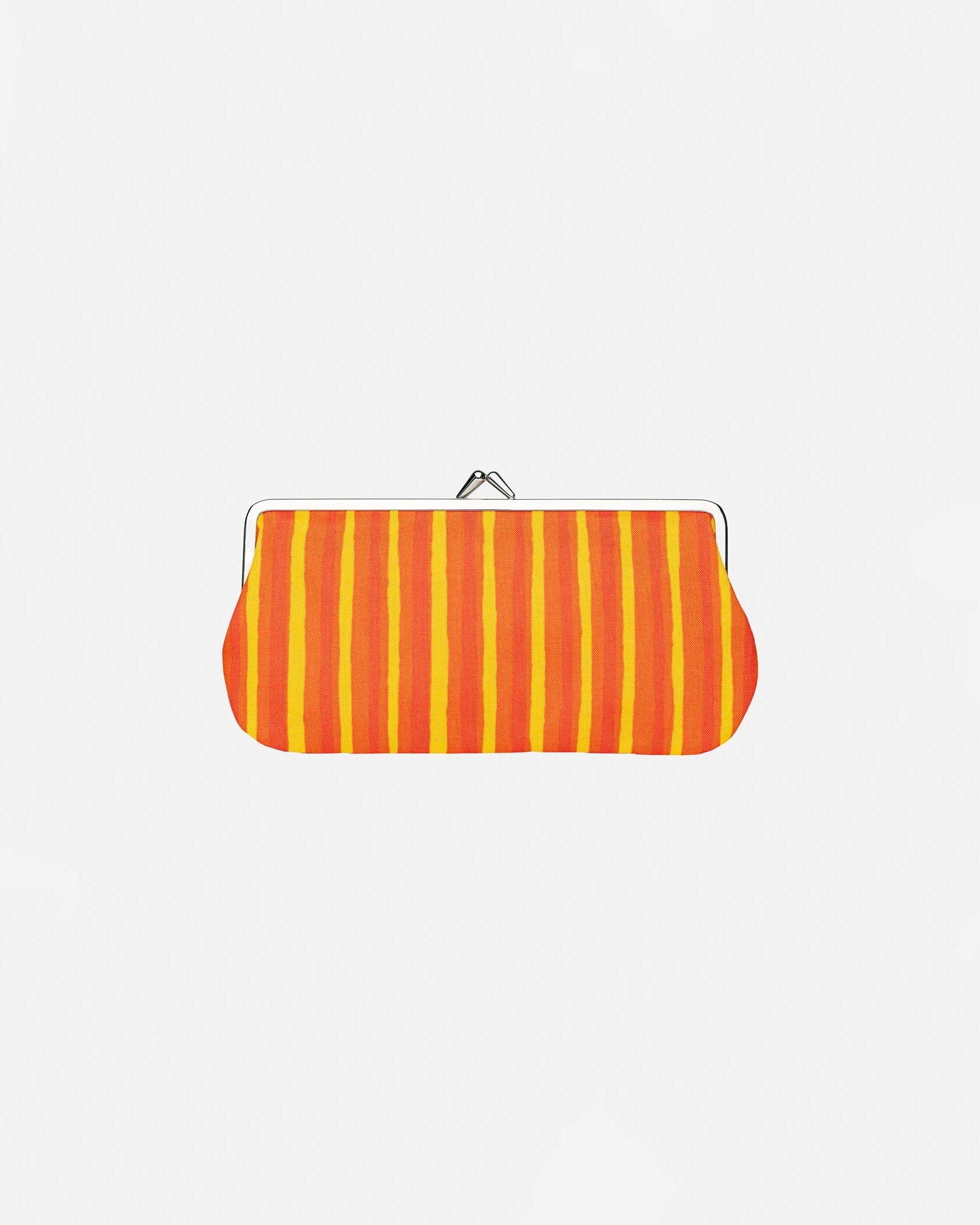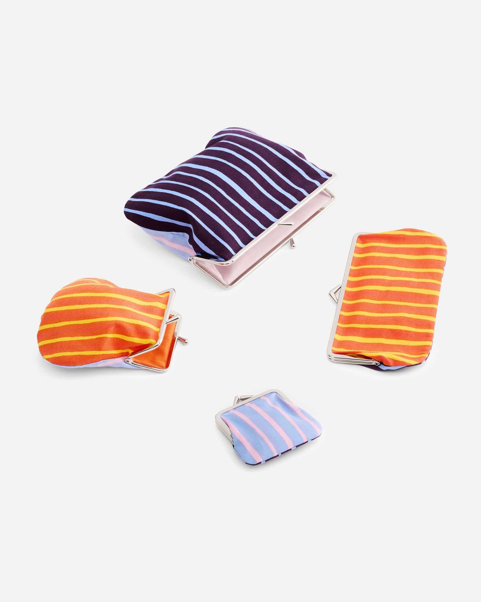 Marimekkoの新作コレクションから、メリハリのある配色で人気のPiccoloストライプのがま口ポーチが登場です。横に長いデザインでステーショナリーや眼鏡入れとしてもおすすめ、裏地も鮮やかなカラーを使い見えない部分にもこだわりました。用途にあわせてサイズ違いでそろえるのも楽しいアイテムです。