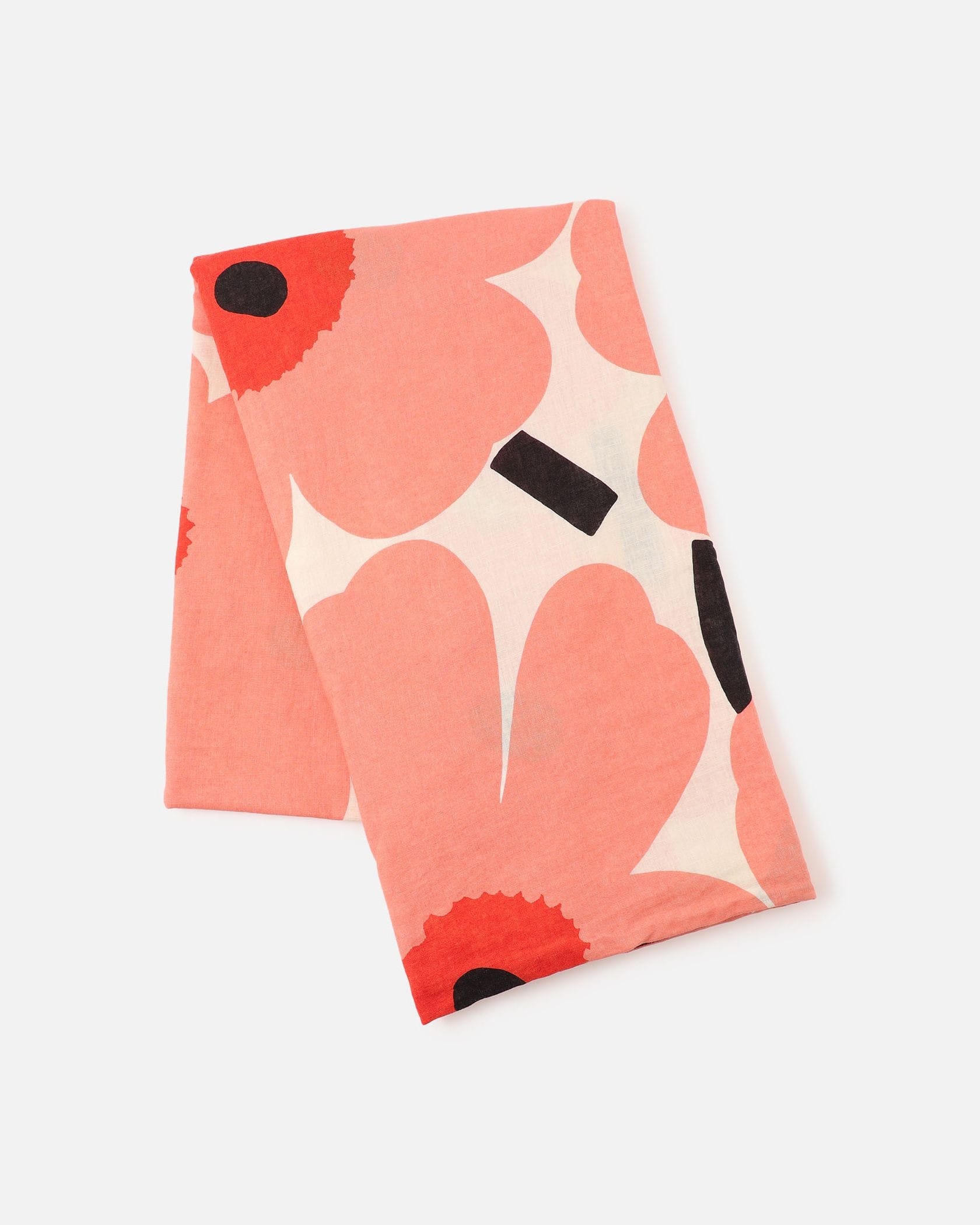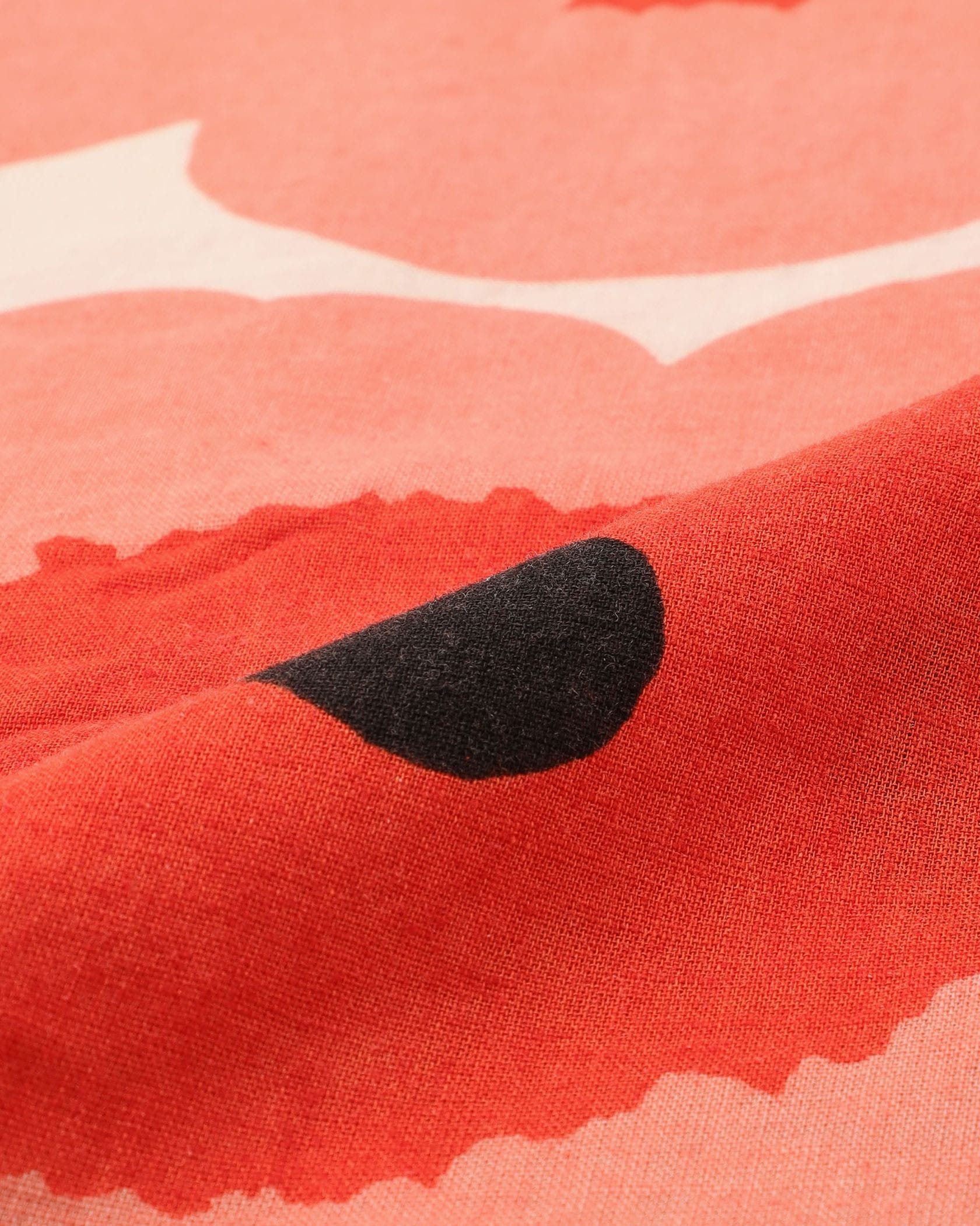 Marimekkoを代表するUnikko柄のデュベカバー(150×210cm)。大きなフラワーモチーフが全面にプリントされた華やかなデザインが魅力。いつものベッドカバーを変えるだけで、ピンクと赤の明るい配色でお部屋全体を明るく彩ります。スタイリッシュなインテリアアクセントになるアイテムです。