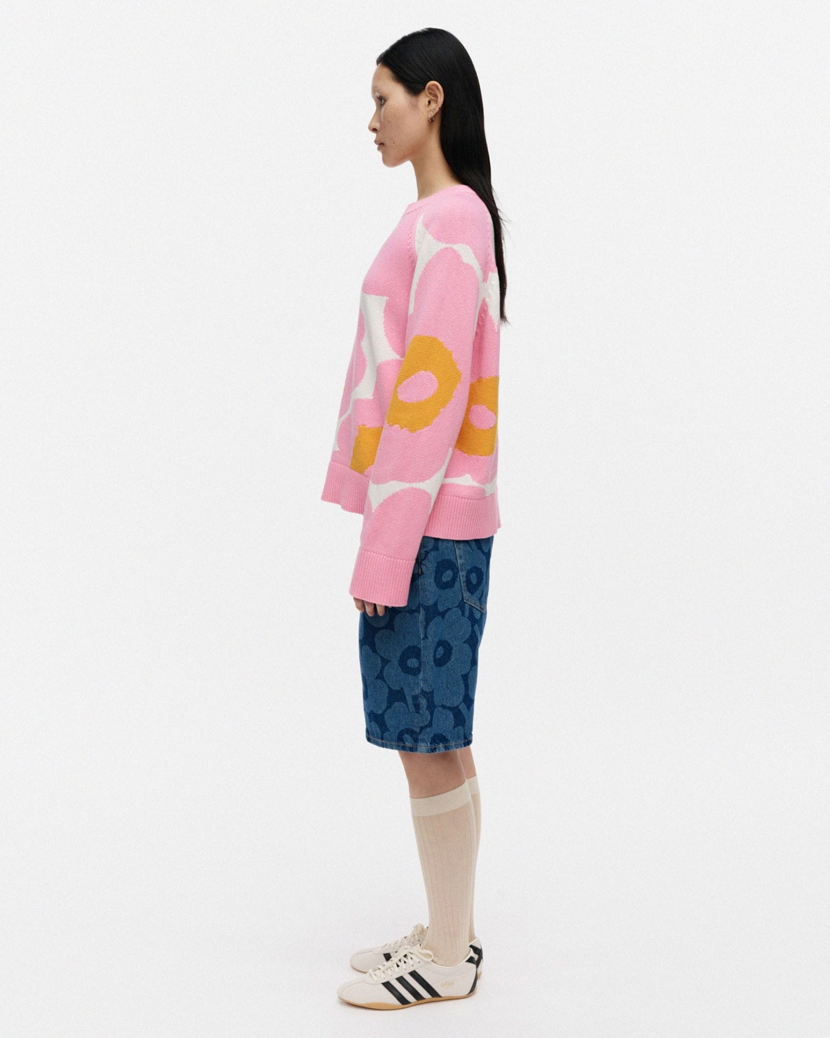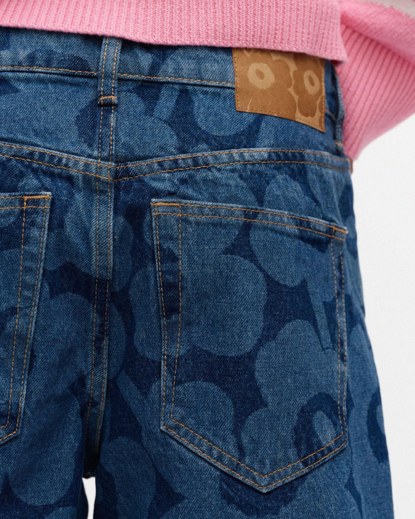 さりげなく主張するUnikko柄が可愛いデニムショートパンツ。いつものカジュアルスタイルも、ワンランク華やかに仕上げてくれそう。さわやかさを演出したいシーンにもおすすめの一本です。
