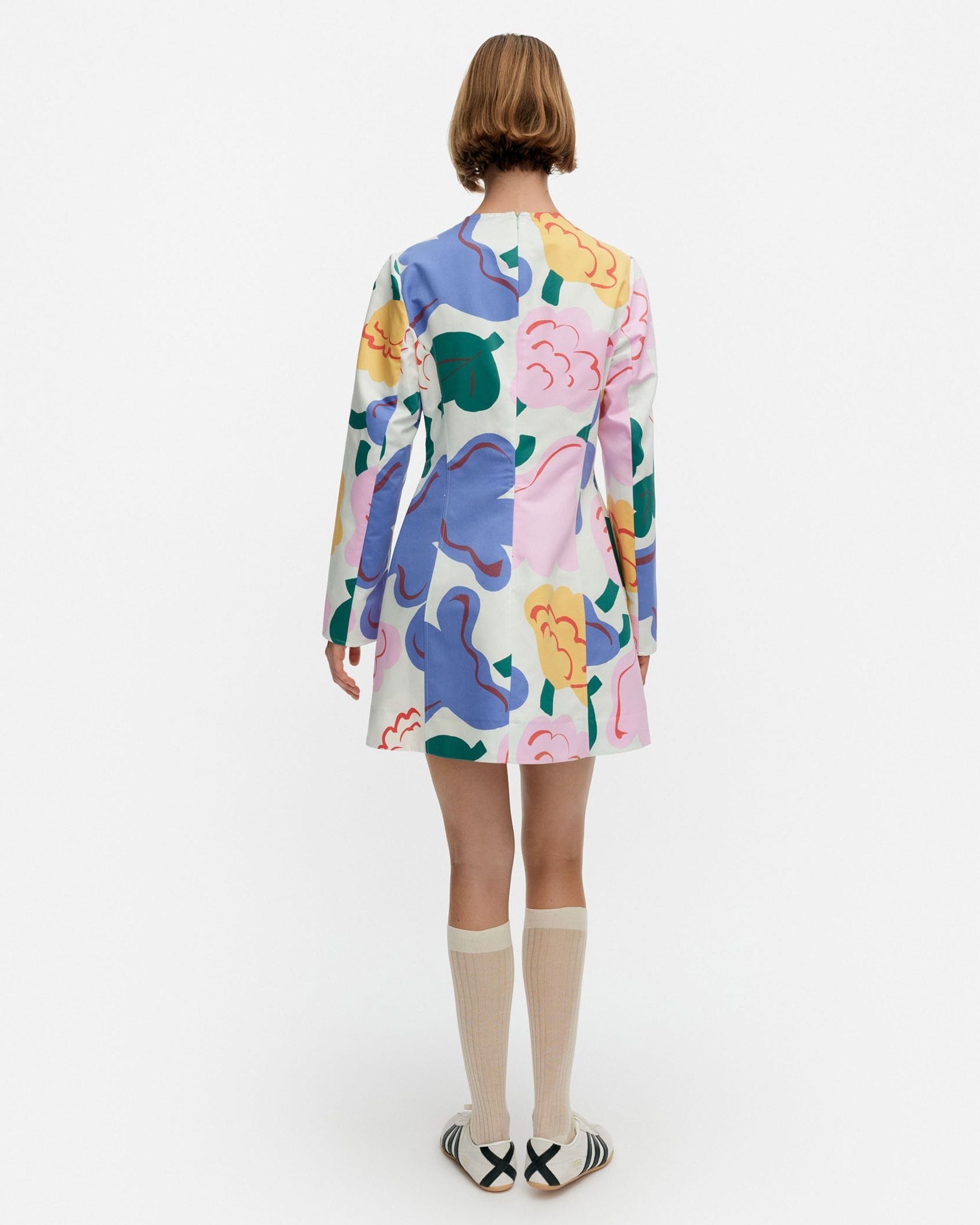日常をドレスアップしてくれるIloinen Kukasta Kukkaanワンピースです。遠目にもアイキャッチなフラワー柄プリントが魅力、見る角度によって様々な表情が楽しめます。くびれコンシャスなウエストから広がるミニ丈もポイント、ブーツやハイソックスとあわせるのも可愛くておすすめです。