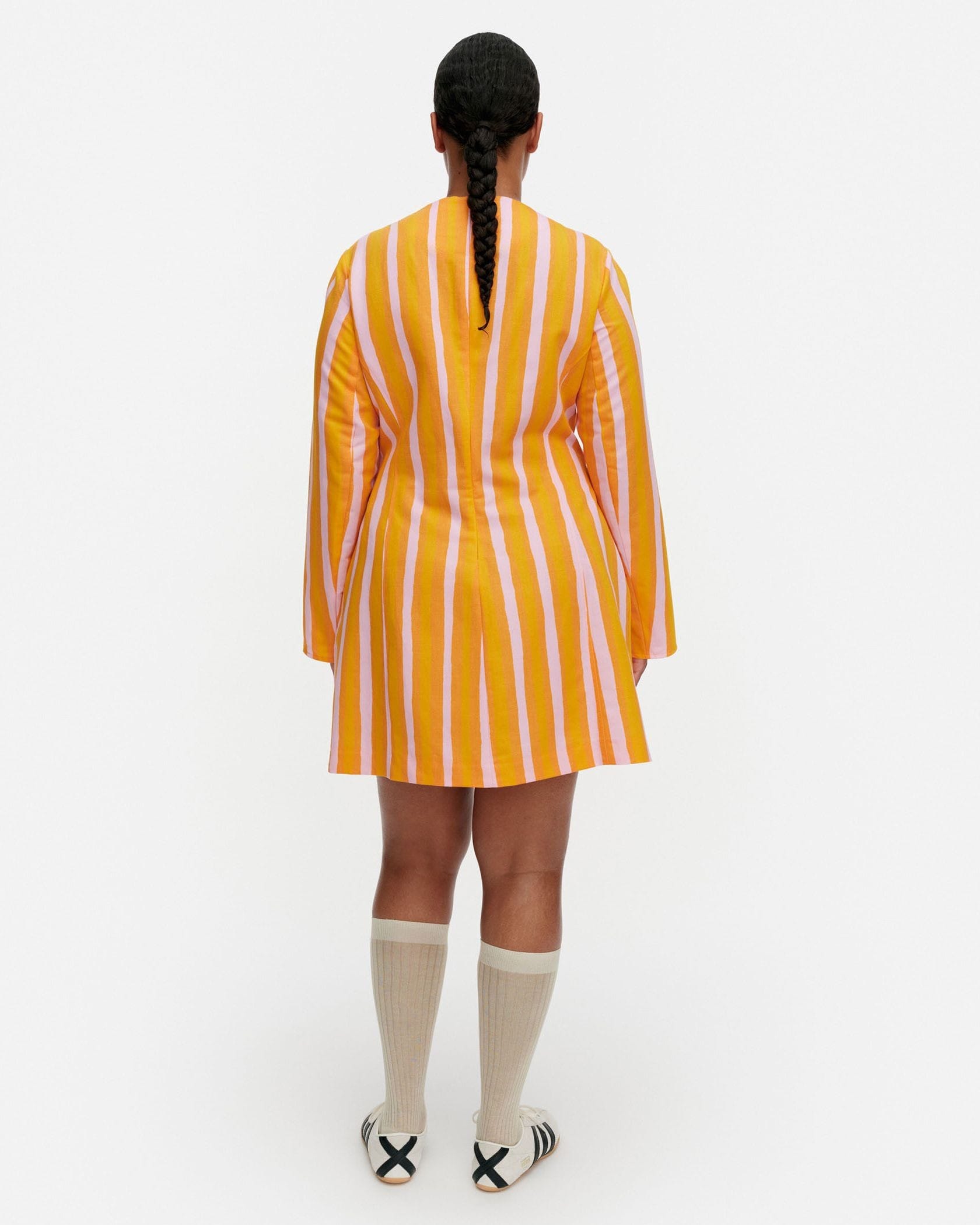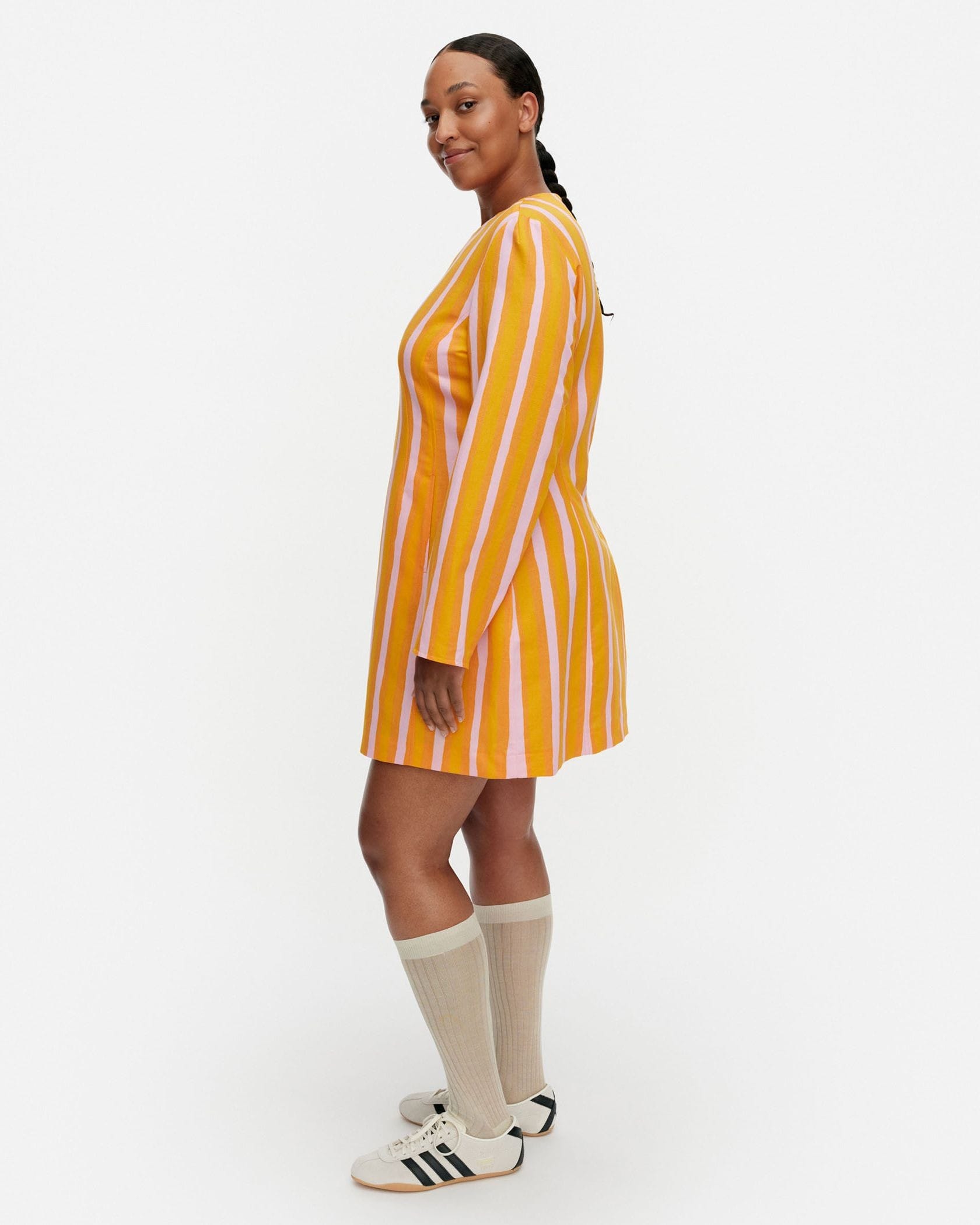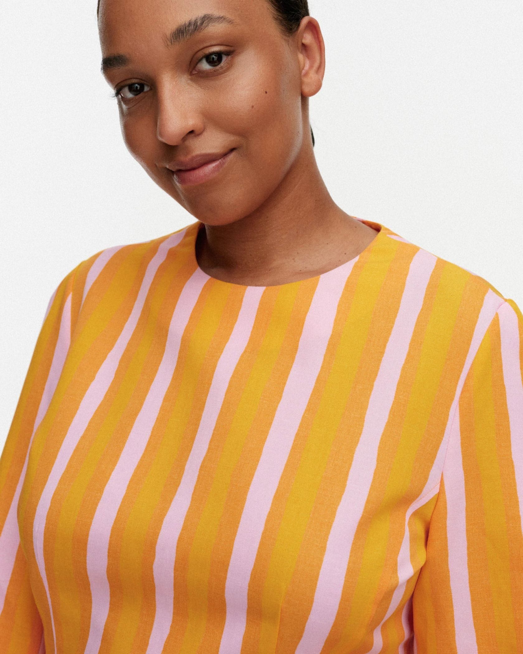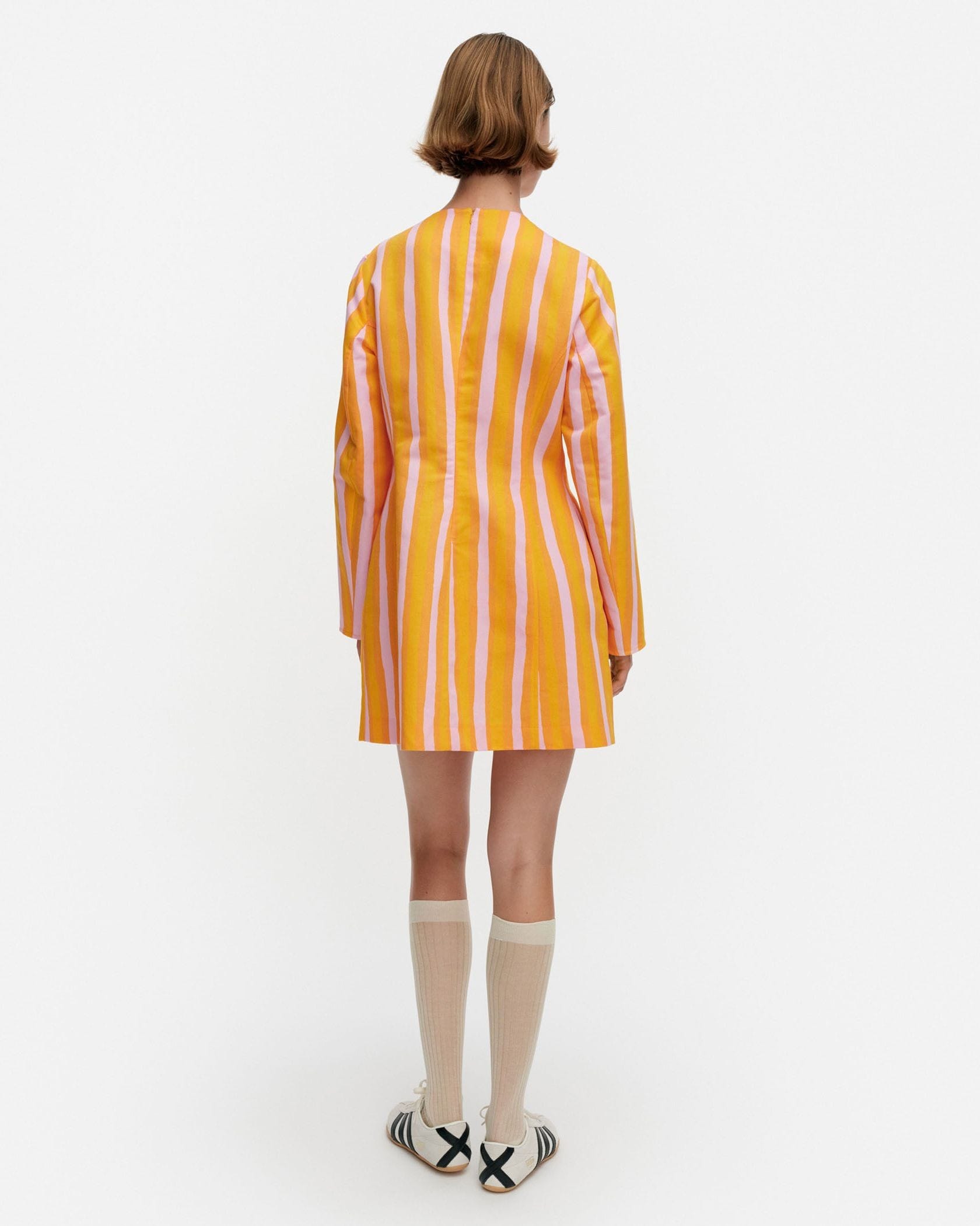 日常をドレスアップしてくれるIloinen Piccoloワンピースです。目が覚めるような鮮やかなストライプ柄が魅力、遠目にも存在感たっぷりにデザインしました。くびれコンシャスなウエストから広がる大人可愛く着られるミニ丈もポイント、ブーツやハイソックスとあわせるのもおすすめです。