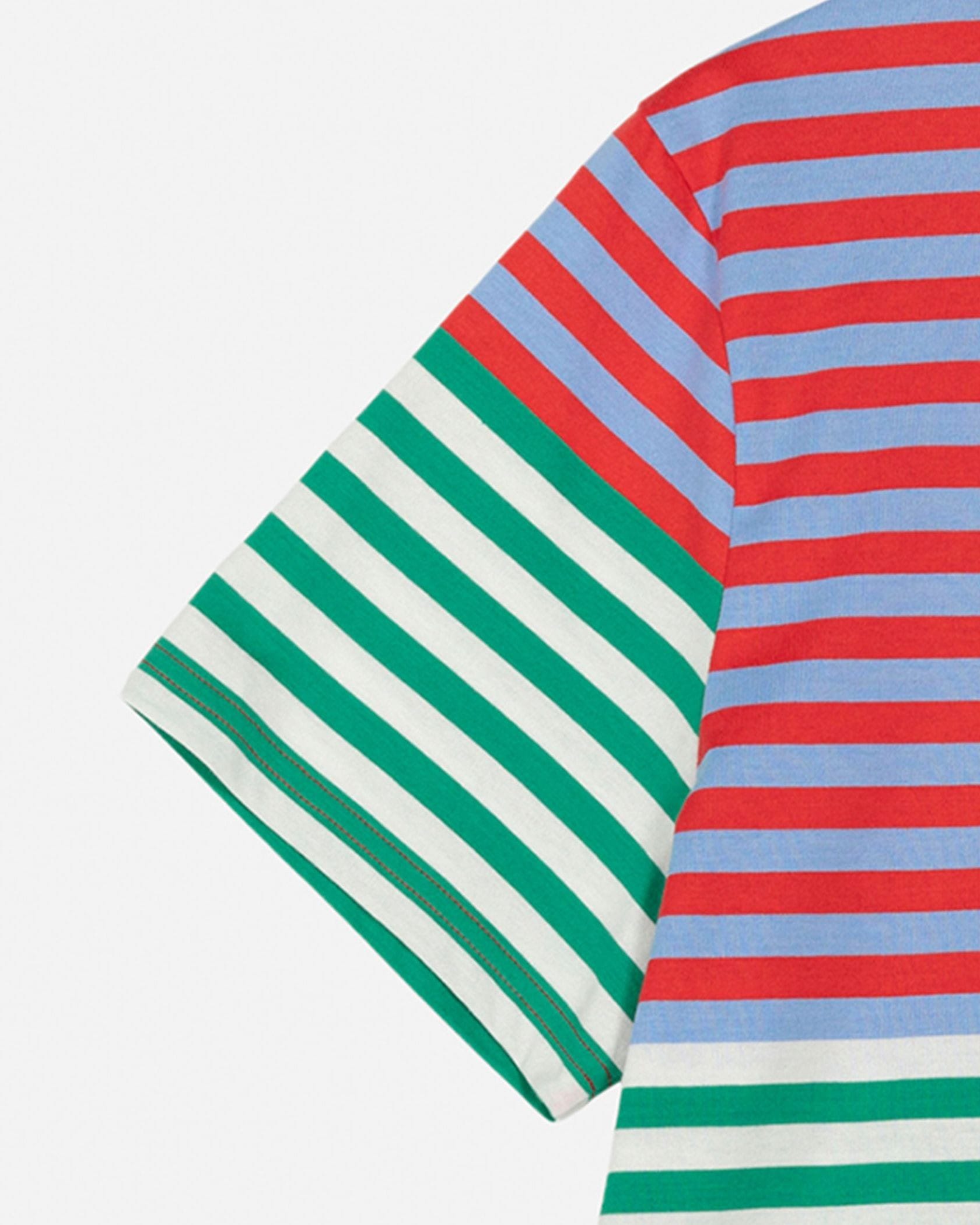 異なるボーダーカラーの組み合わせがユニークなデザインの半袖Tシャツ。カラフルなカラートーンが印象的なデザイン。左胸のUnikkoモチーフがスタイリッシュなアクセント。着こなしやすいゆったりとしたストレートシルエット。お手持ちのボトムに合わせて明るいムードの着こなしが実現するアイテムです。