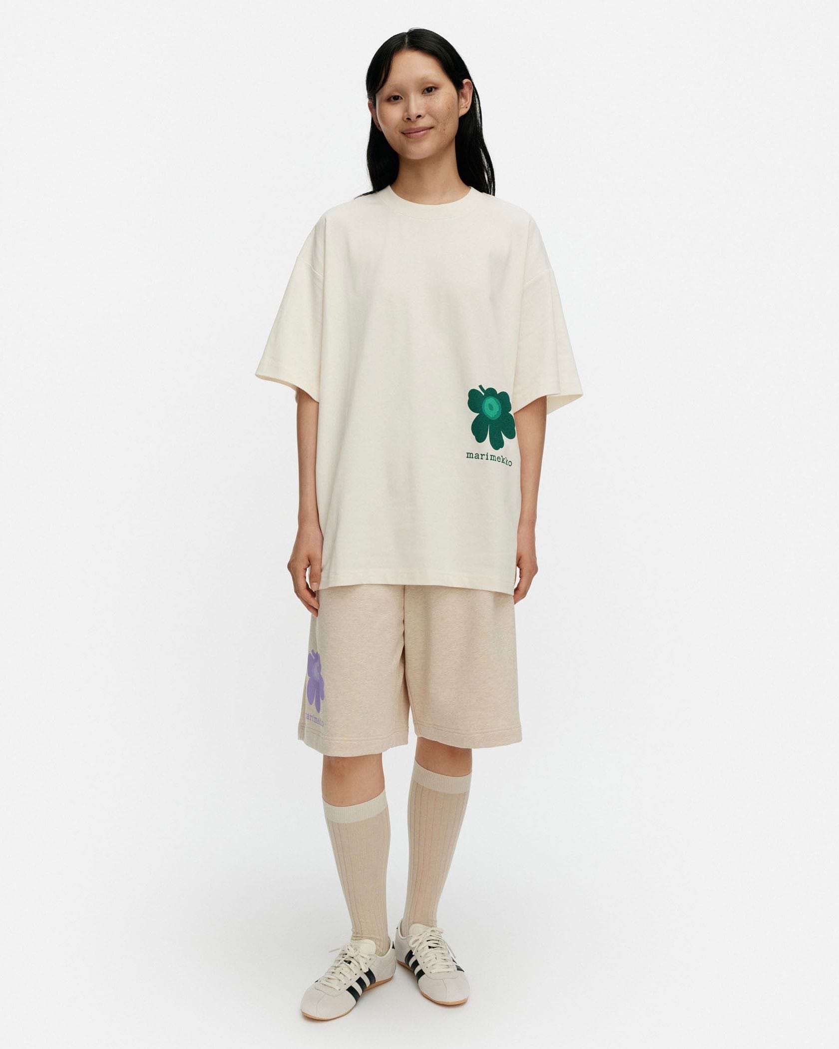 フロント側には控えめに、背中には大きくUnikko柄を効かせたTシャツ。メリハリ感のあるデザインによって、シンプルな着こなしも洗練された印象に。ゆるりとしたシルエットで、裾のイン・アウトも自在にアレンジできます。