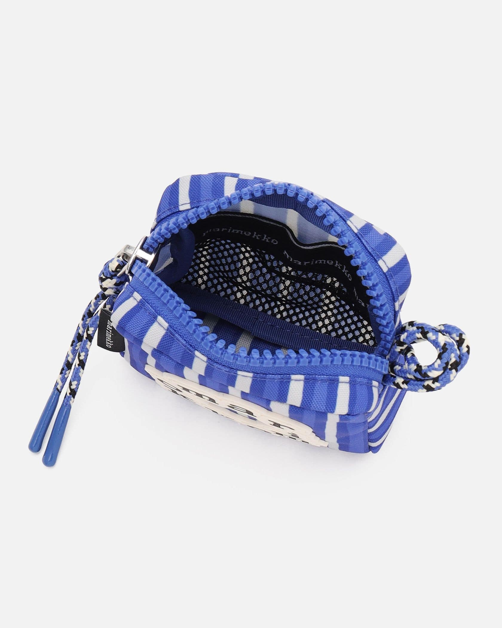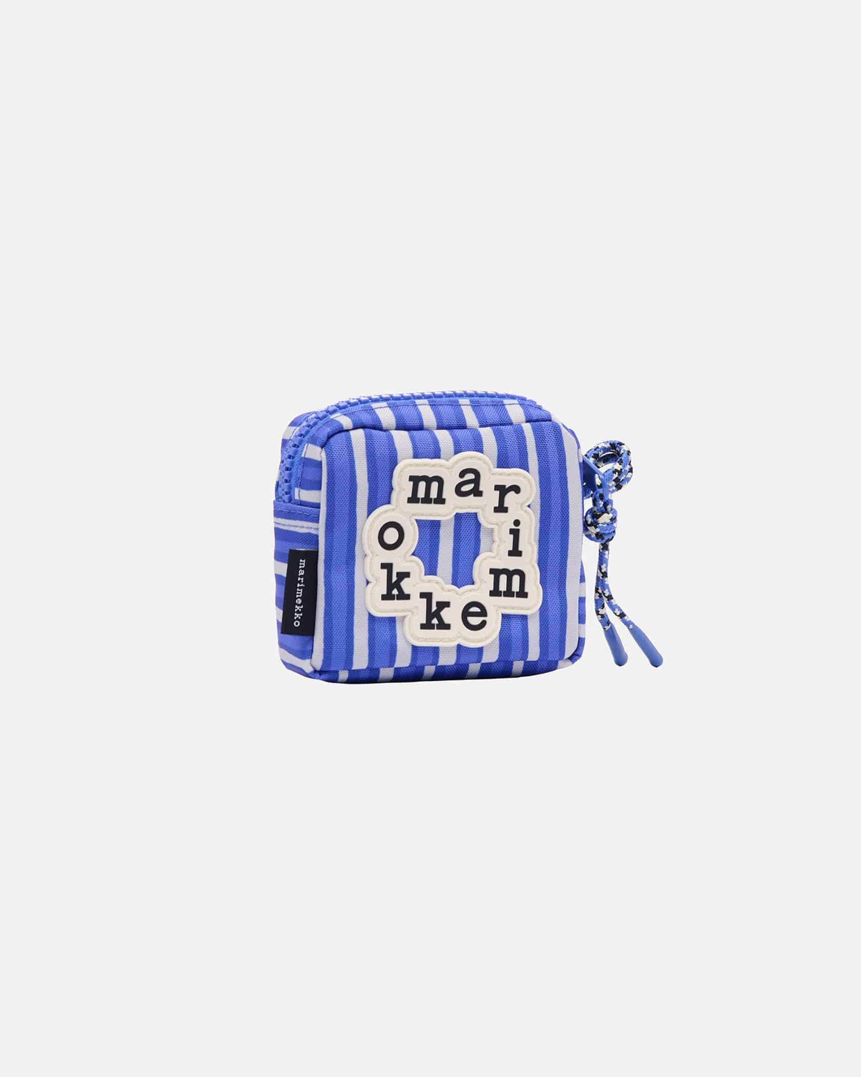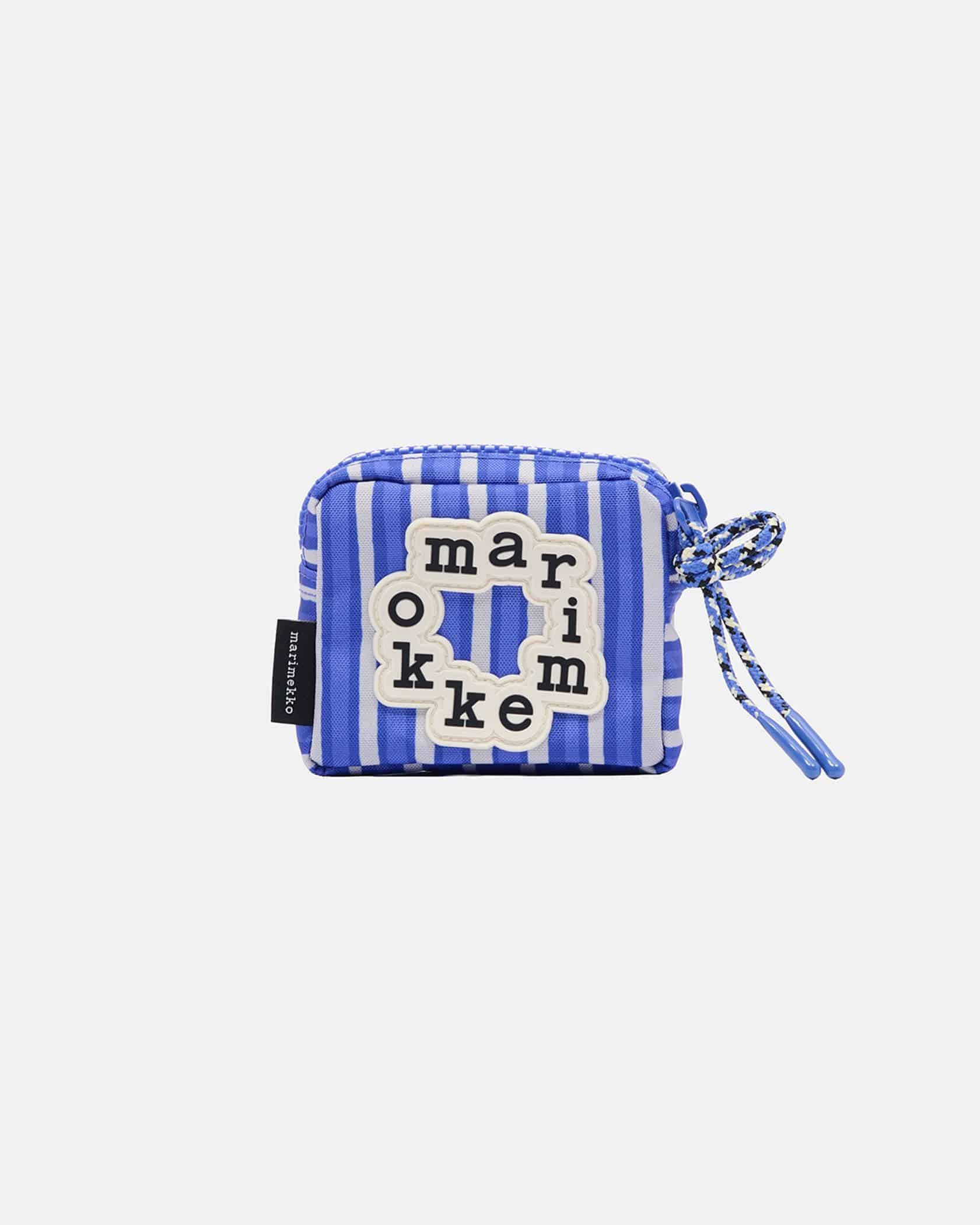 世界中から愛されているMarimekkoから、Piccoloストライプ柄のポーチが登場です。円を描くようにデザインされたロゴがポイント、遠目にもアイキャッチに仕上げました。ファスナー部分にはコードを付けて開け閉めしやすくアクセントをプラス、マチを広めにとったスクエア型で見た目以上に収納力は抜群です。
