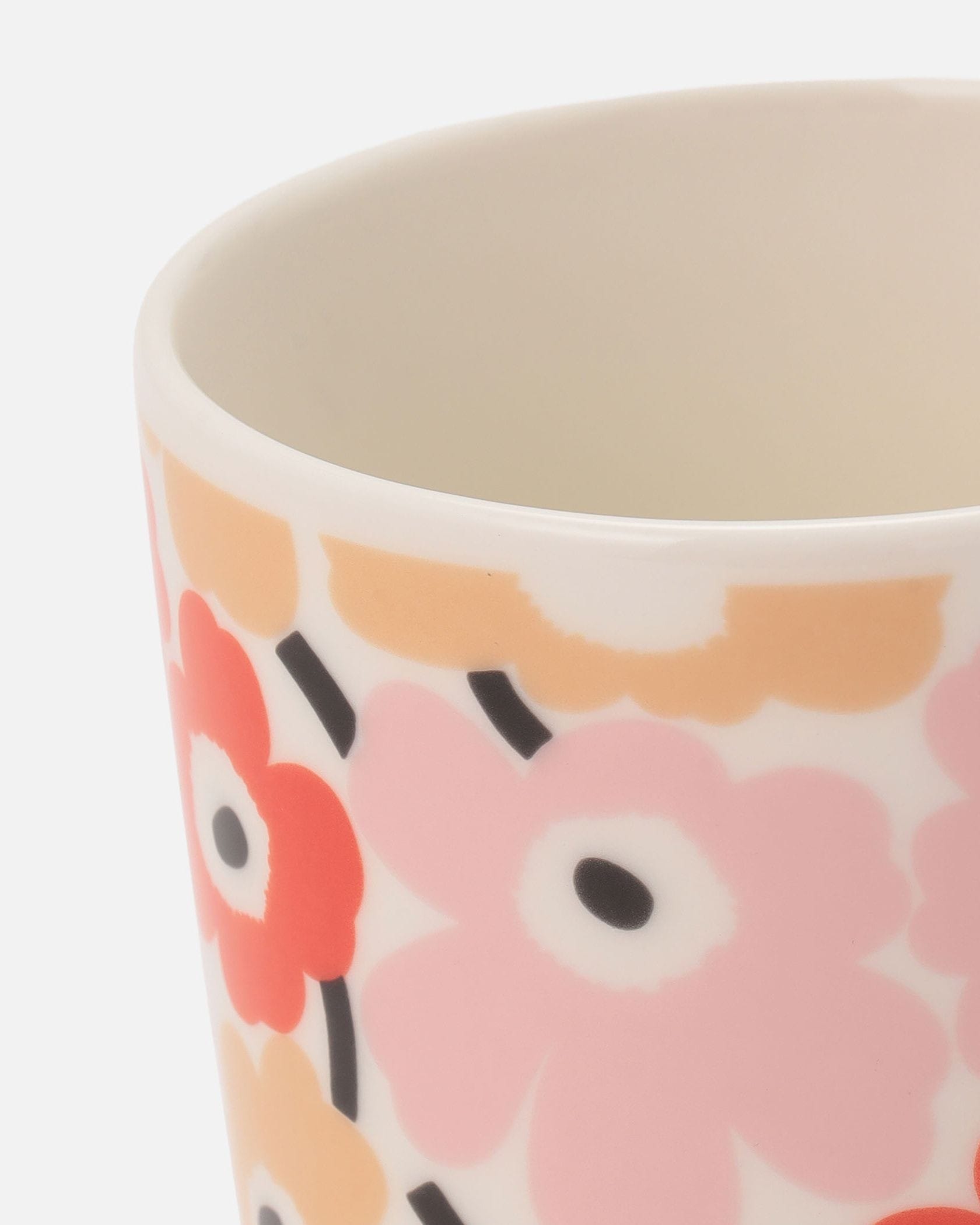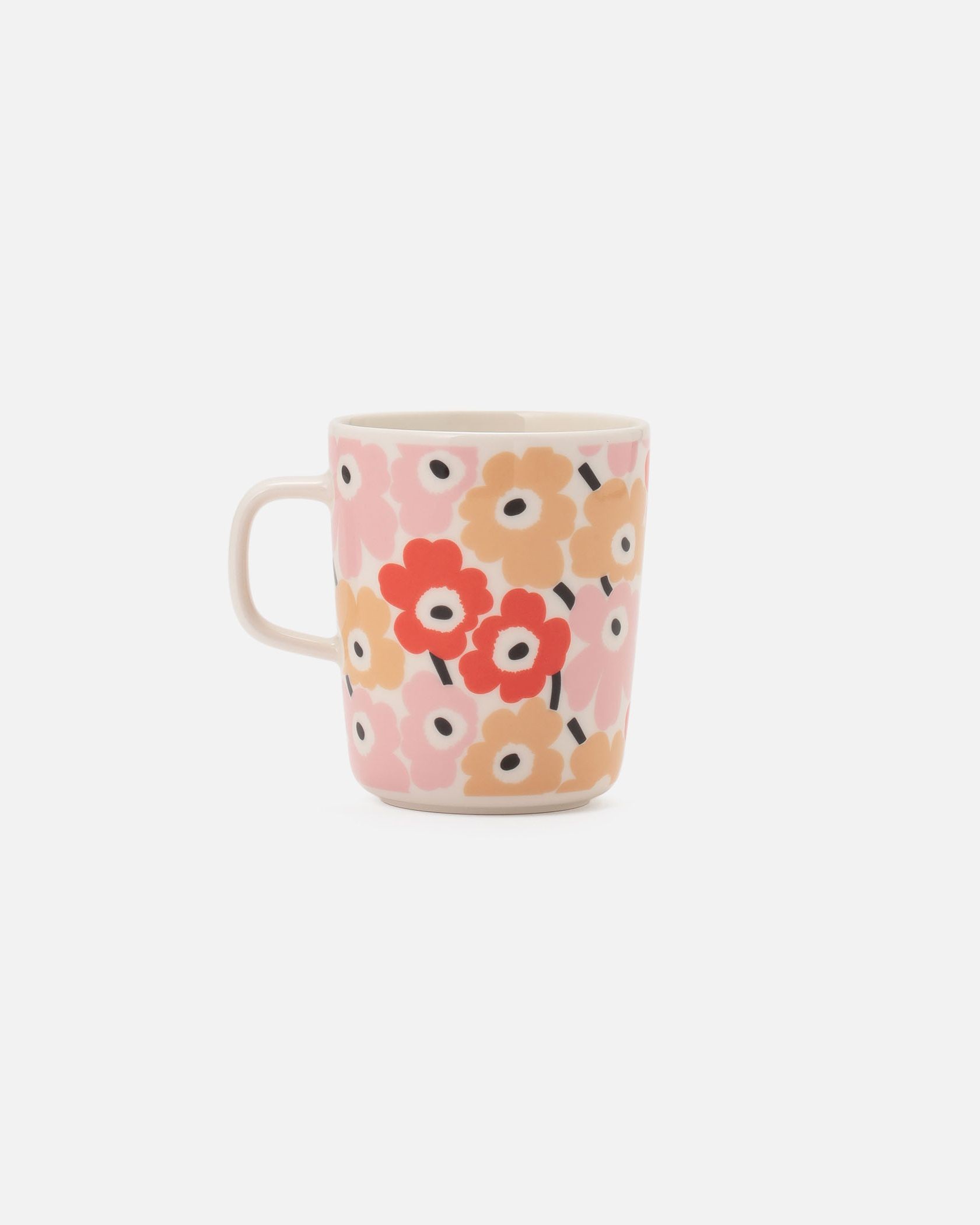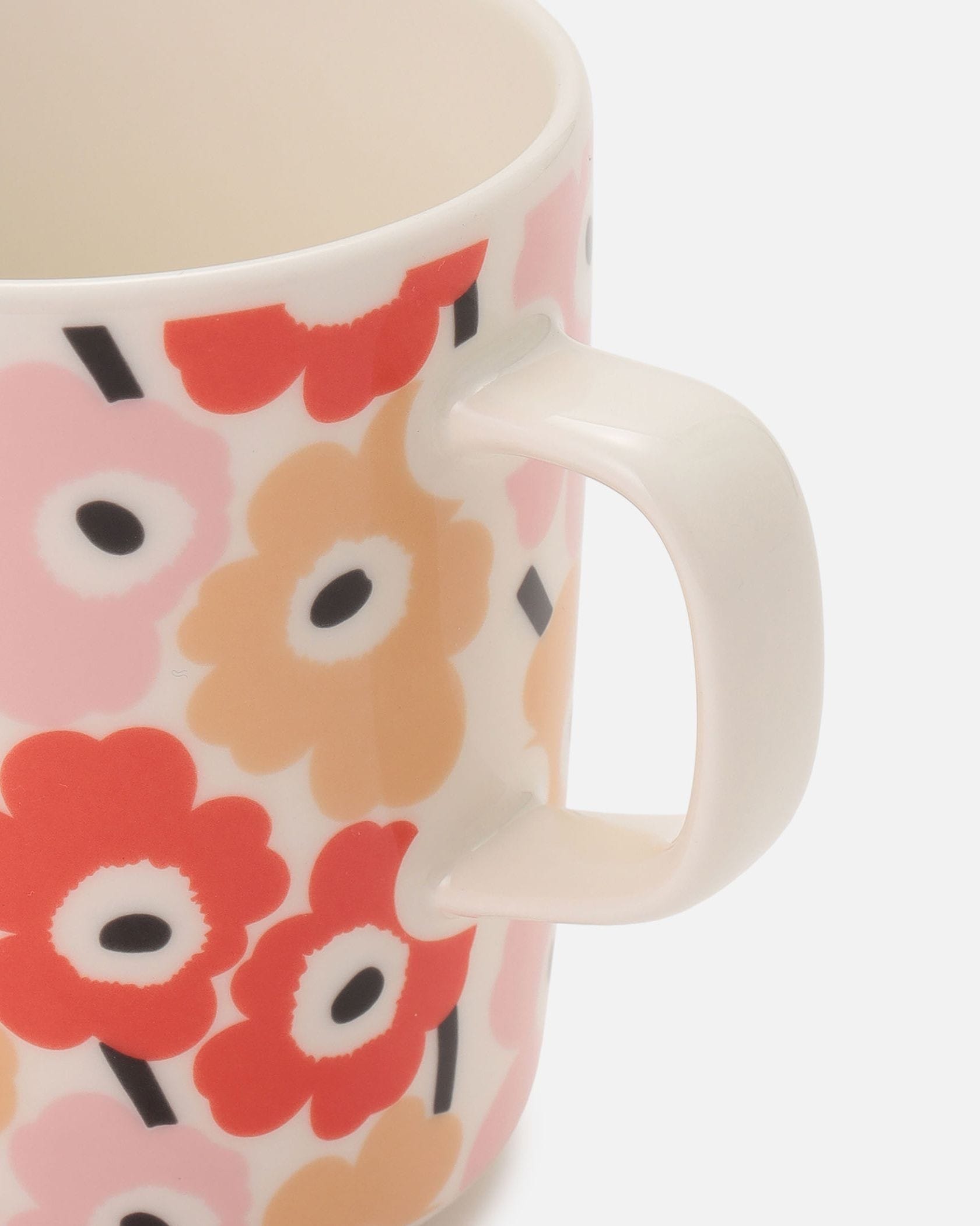 Marimekkoを代表するUnikko柄が華やかなデザインのマグカップ(250ml)。小ぶりな持ち手がモダンなフォルム。食洗機・電子レンジ・オーブン・冷凍庫での使用が可能で、使い勝手も抜群。デイリーからおもてなしまで幅広く活躍し、テーブルコーディネートが明るくなるアイテムです。