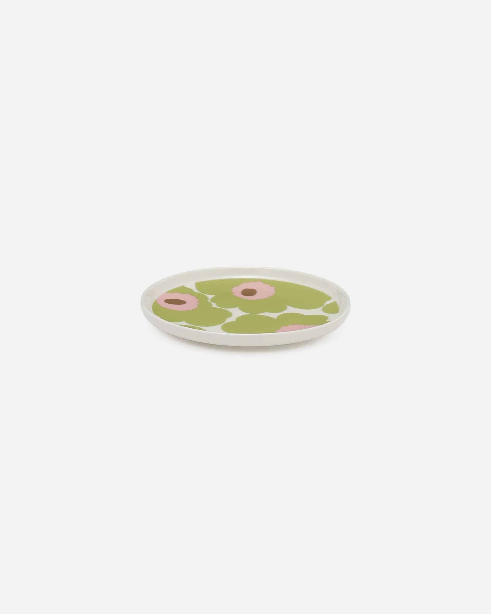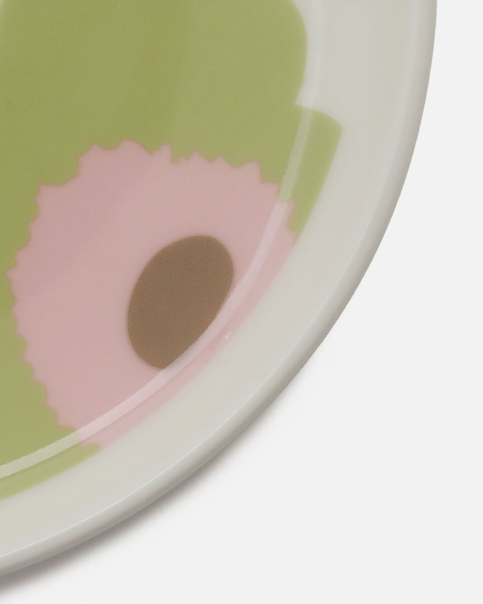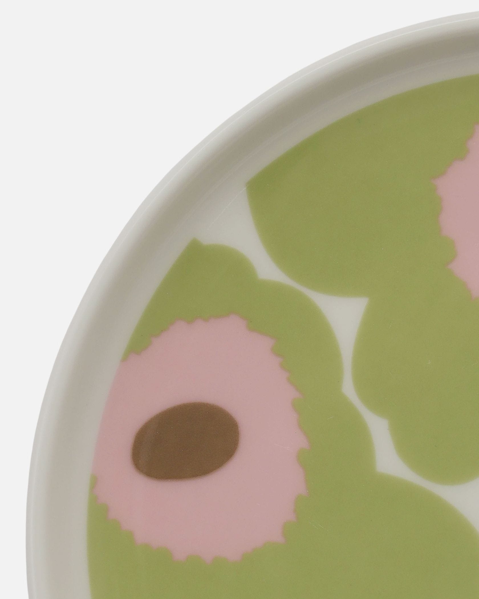 日本限定のUnikko柄プレート。ペールグリーンのUnikko柄は、ナチュラルで上品な雰囲気。副菜やデザートをのせたり取り皿として使用したりと、幅広く活躍してくれます。