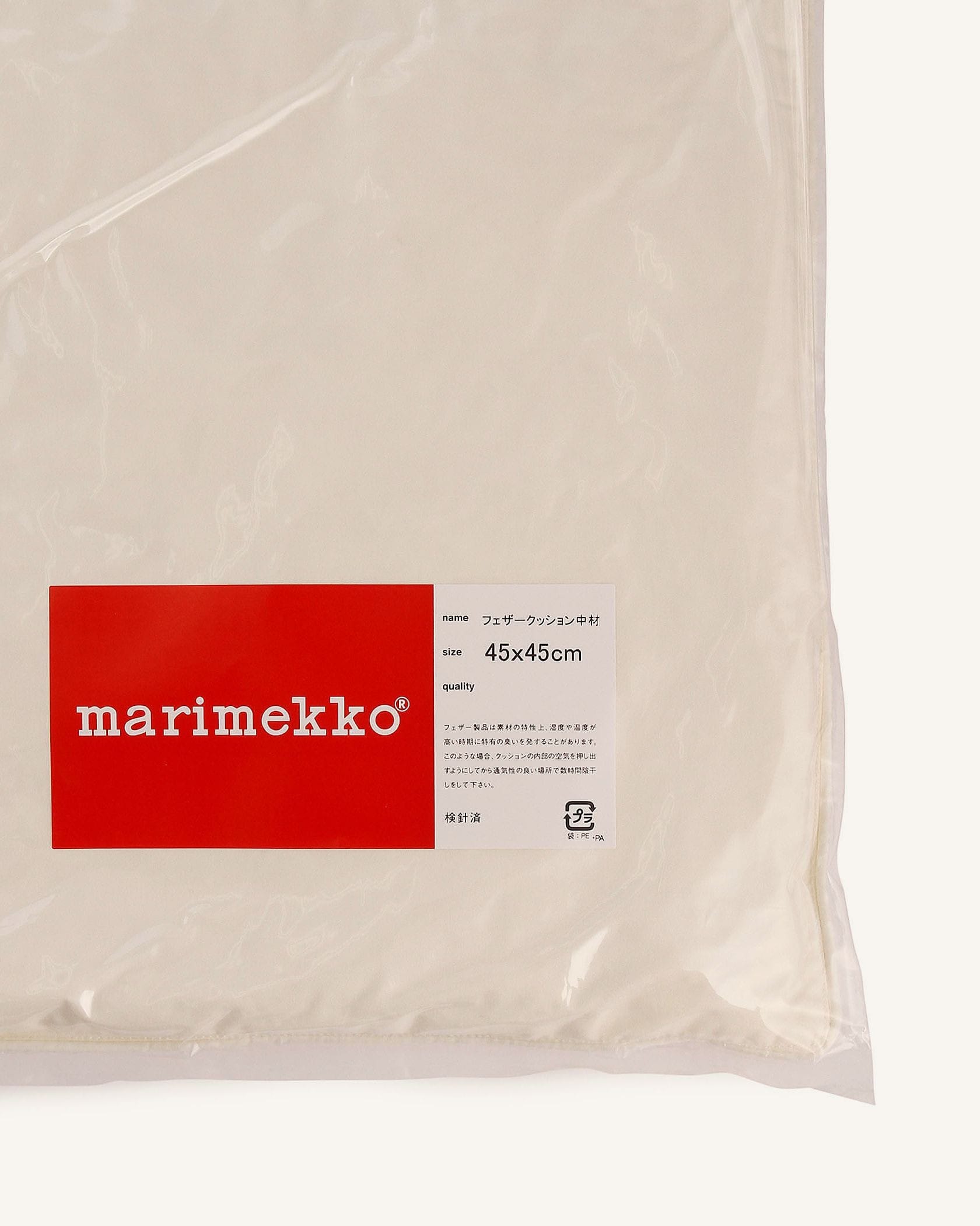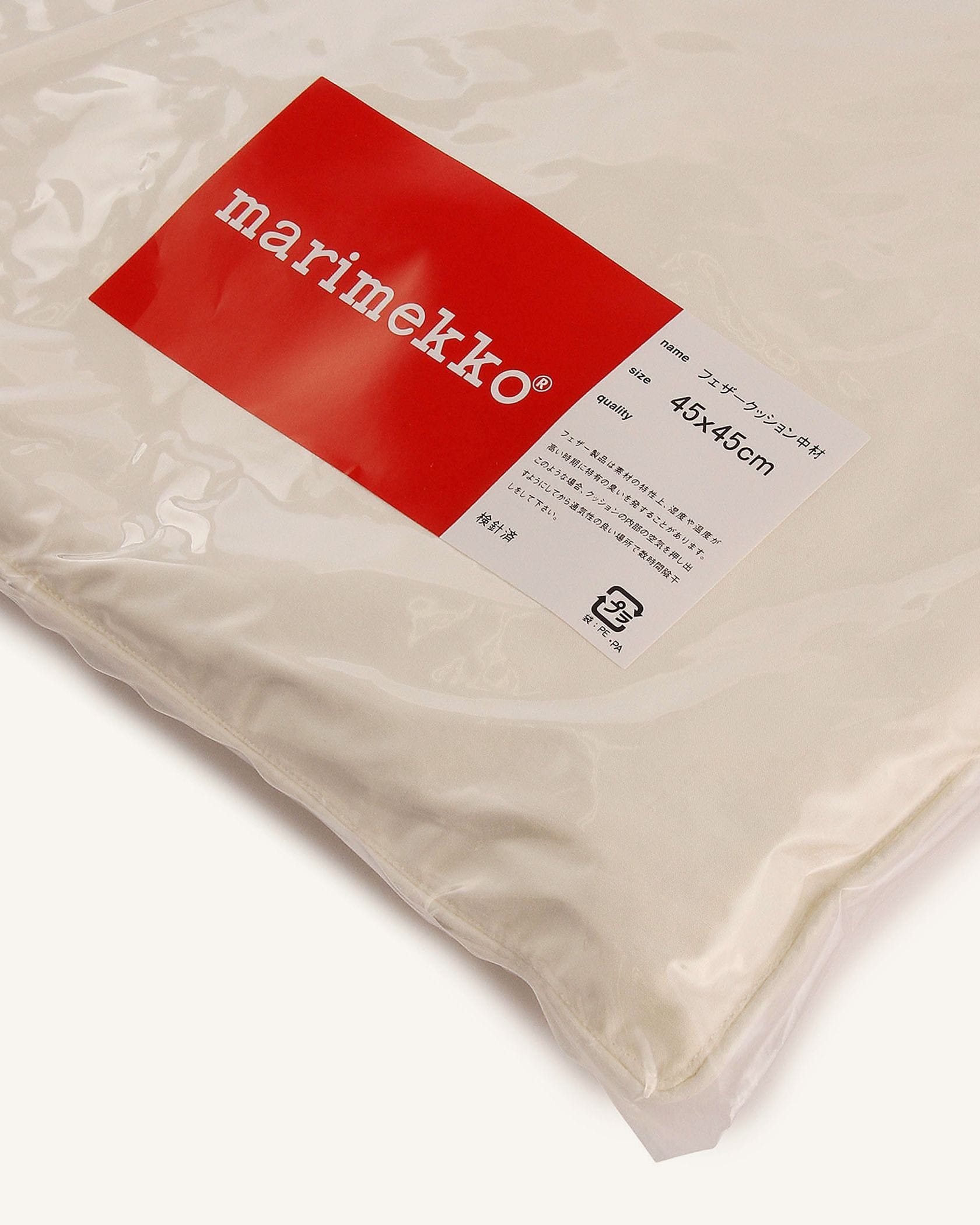 クッションの中材として使用可能なふわふわのインナーフェザークッション(45x45cm)。Marimekkoならではの、バリエーション豊かなテキスタイル柄の中からセレクトしたクッションカバーと合わせて使用できるアイテム。カバーに響かない白の無地。適度なやわらかさと弾力性が魅力です。