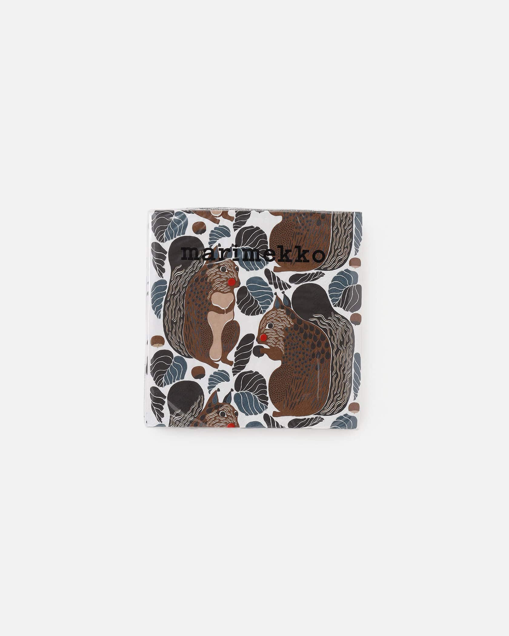 森の中で木の実を集める愛らしいリスが描かれたKurre柄のランチナプキン33×33cmサイズ。ホリデーシーズンなどの華やかな卓上にぴったりのアイテムです。