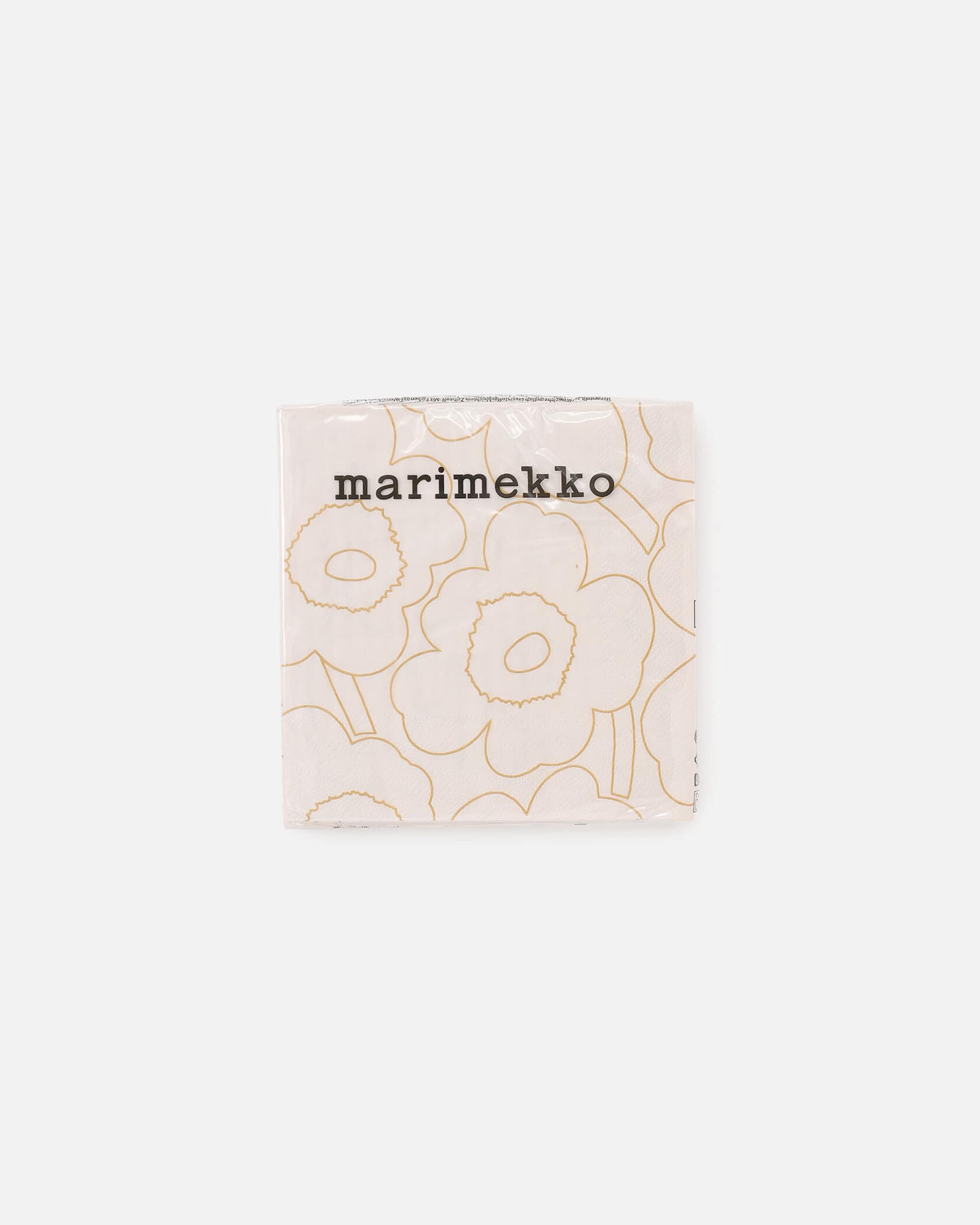 ドローイングされたUnikko柄が繊細な雰囲気を醸すランチナプキン33×33cmサイズ。卓上のプラスワンアイテムとして、モダンで華やかな印象を与えます。ゴールドがリュクスなワンポイントに。