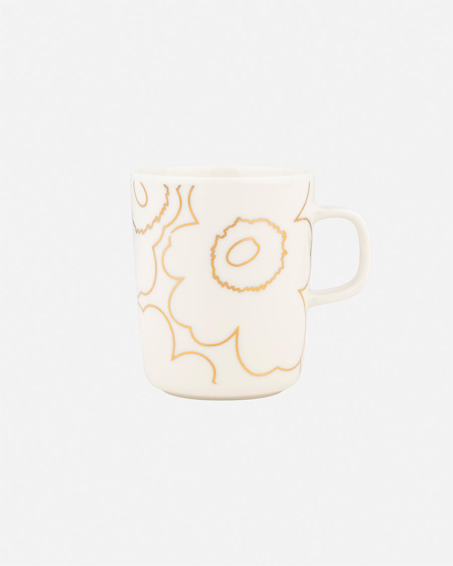銀色が輝く華やかなウニッコのマグカップとマメプレートは、松屋銀座開店100周年を記念して、マリメッコが松屋銀座のために特別に制作したアイテム。