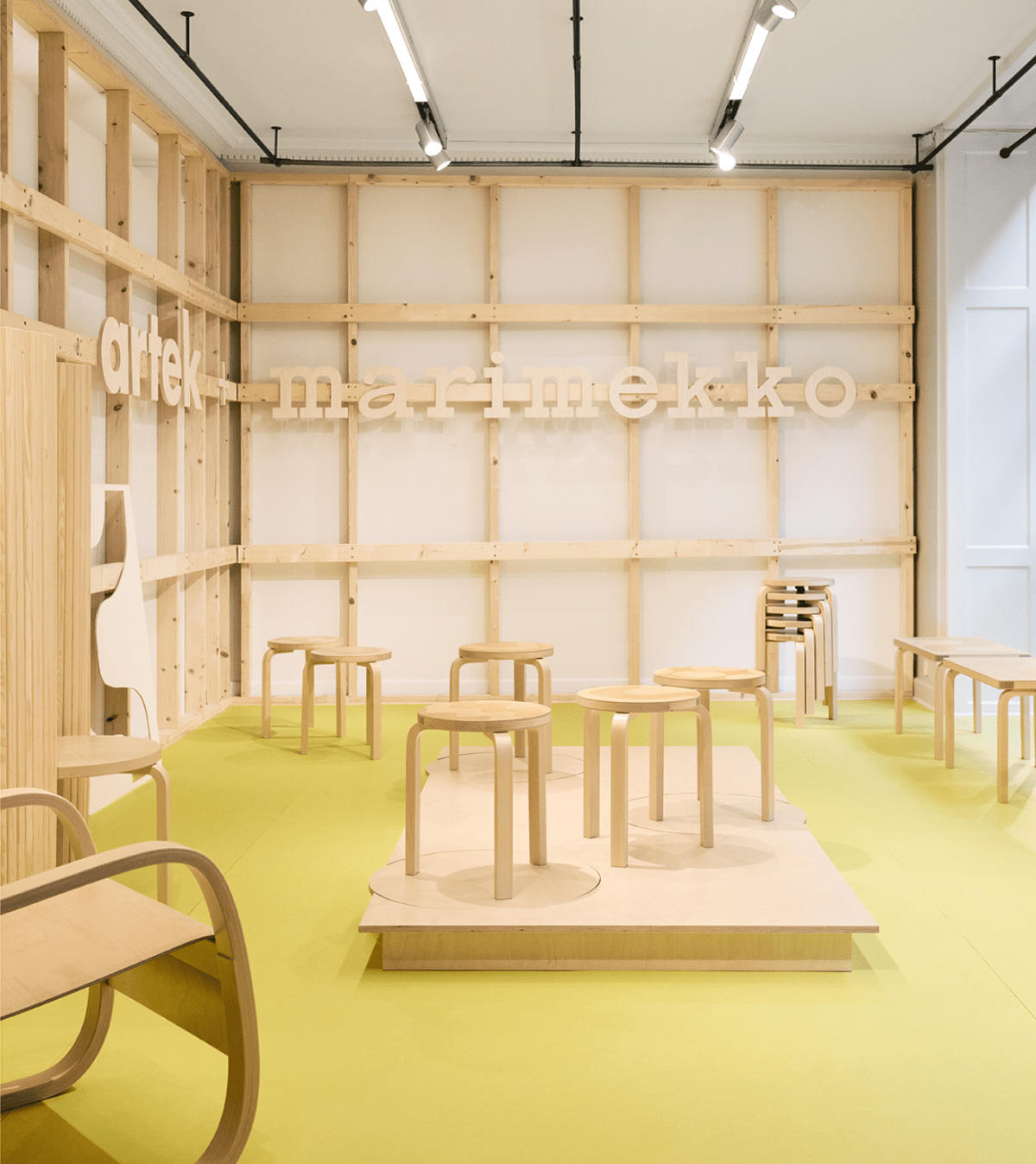 フィンランド人デザイナー、リンダ・ベルグロスとの共同制作によるプレビュー展示では、アルテックの詩的なシンプルさがマリメッコの大胆で陽気な本質をいかに引き立てるかを強調した空間で製品が披露されました。
