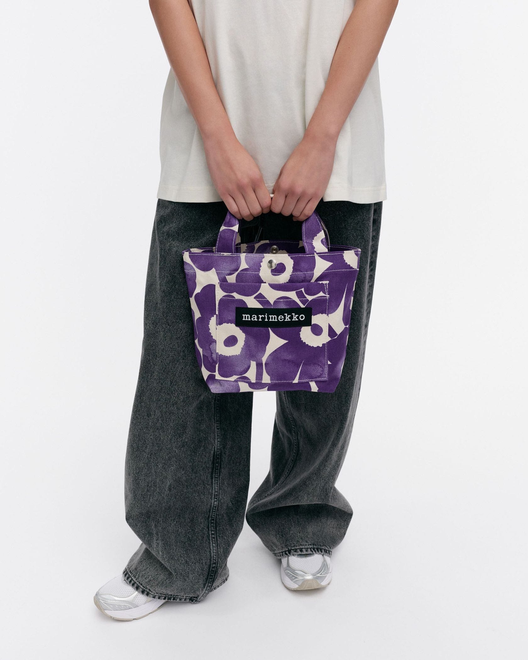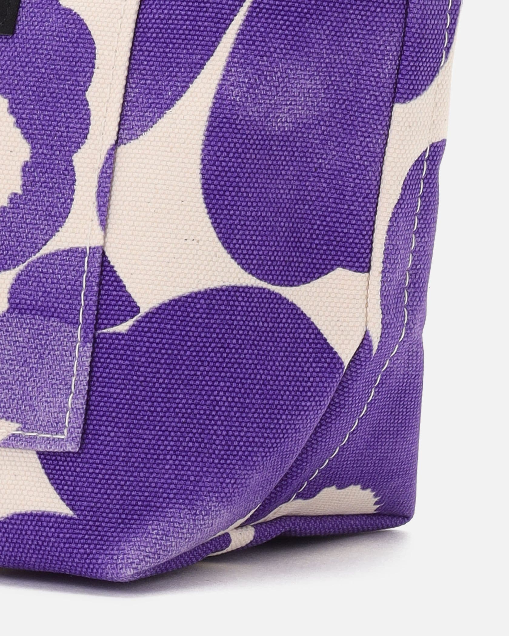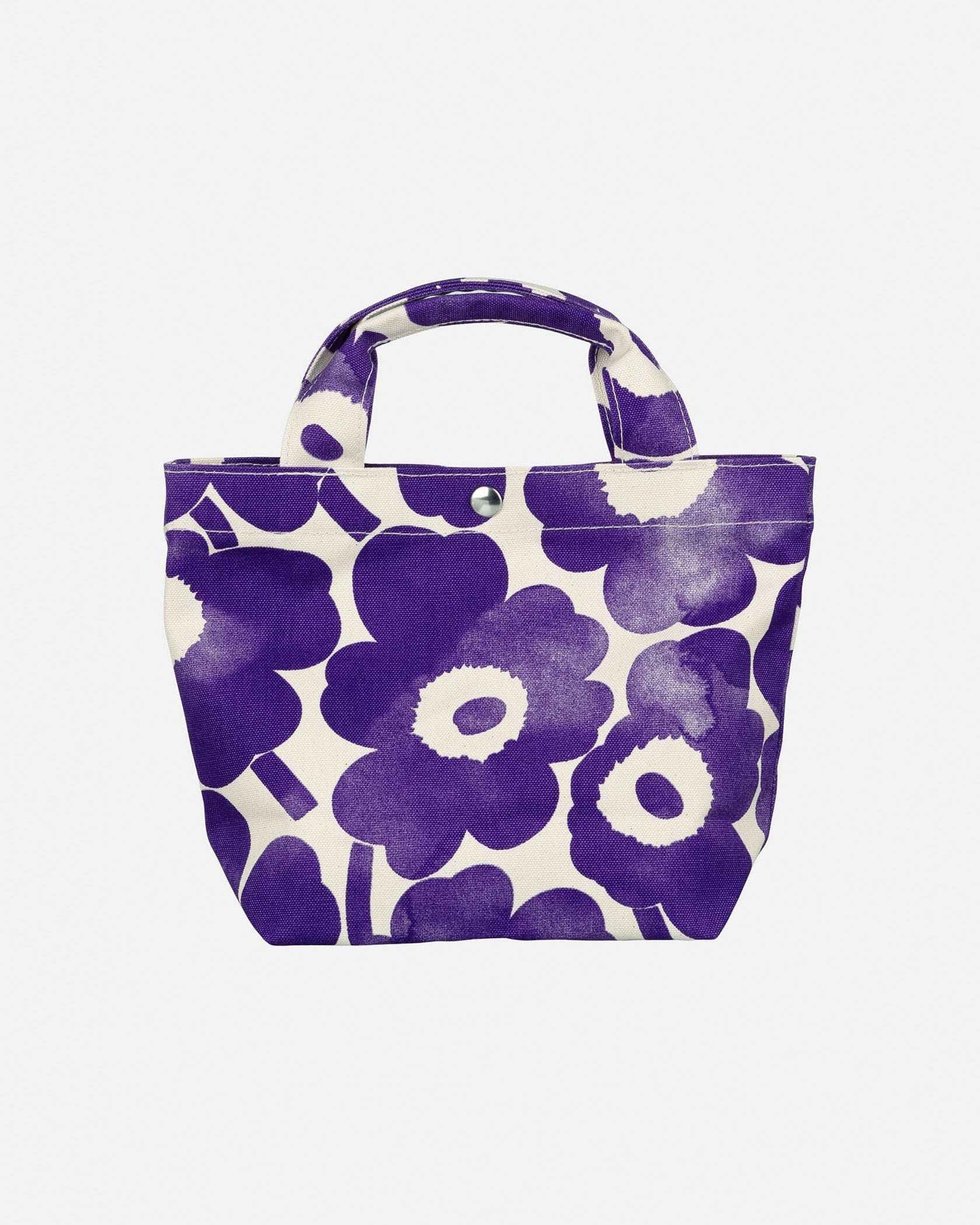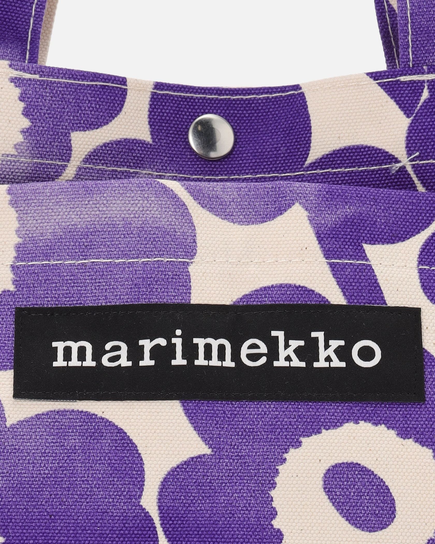 Marimekkoを代表するUnikko柄プリントが華やかなミニトートバッグ。フラワーモチーフを水彩風に表現したスタイリッシュなデザイン。フロントのポケットにはブランドロゴタグのアクセント。ころんとした小ぶりなサイズ感で、ちょっとしたお出かけやランチバッグとしてなど使い勝手抜群のアイテムです。
