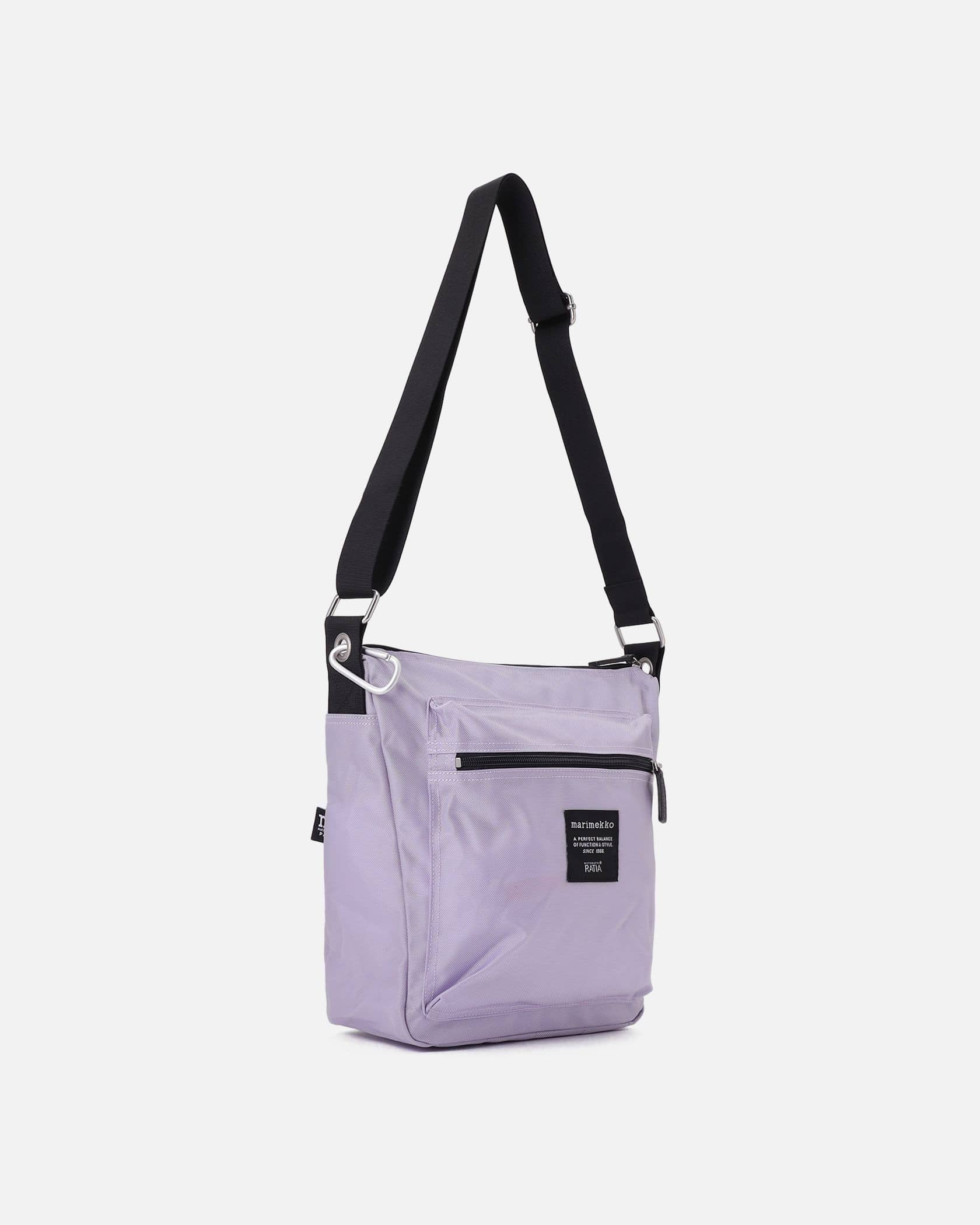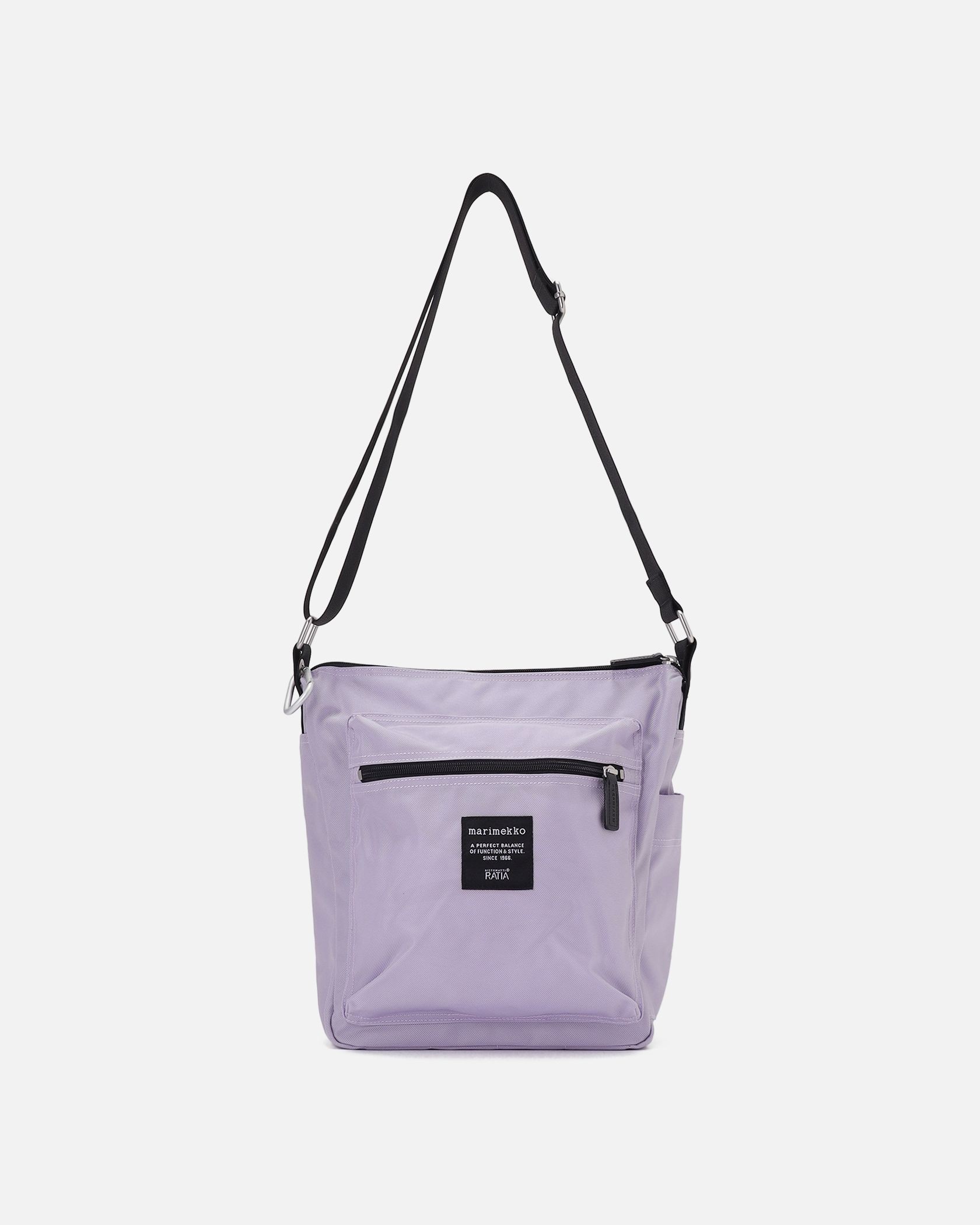 フロントのブランドロゴタグがスタイリッシュなアクセントのショルダーバッグ。しっかりとしたマチで収納力のある立体的なフォルムとジップ仕様の大きなフロントポケット付きで使い勝手も抜群。調整可能なストラップとカスタムに便利なカラビナ付き。丈夫で扱いやすいナイロン生地でデイリーに活躍するアイテムです。