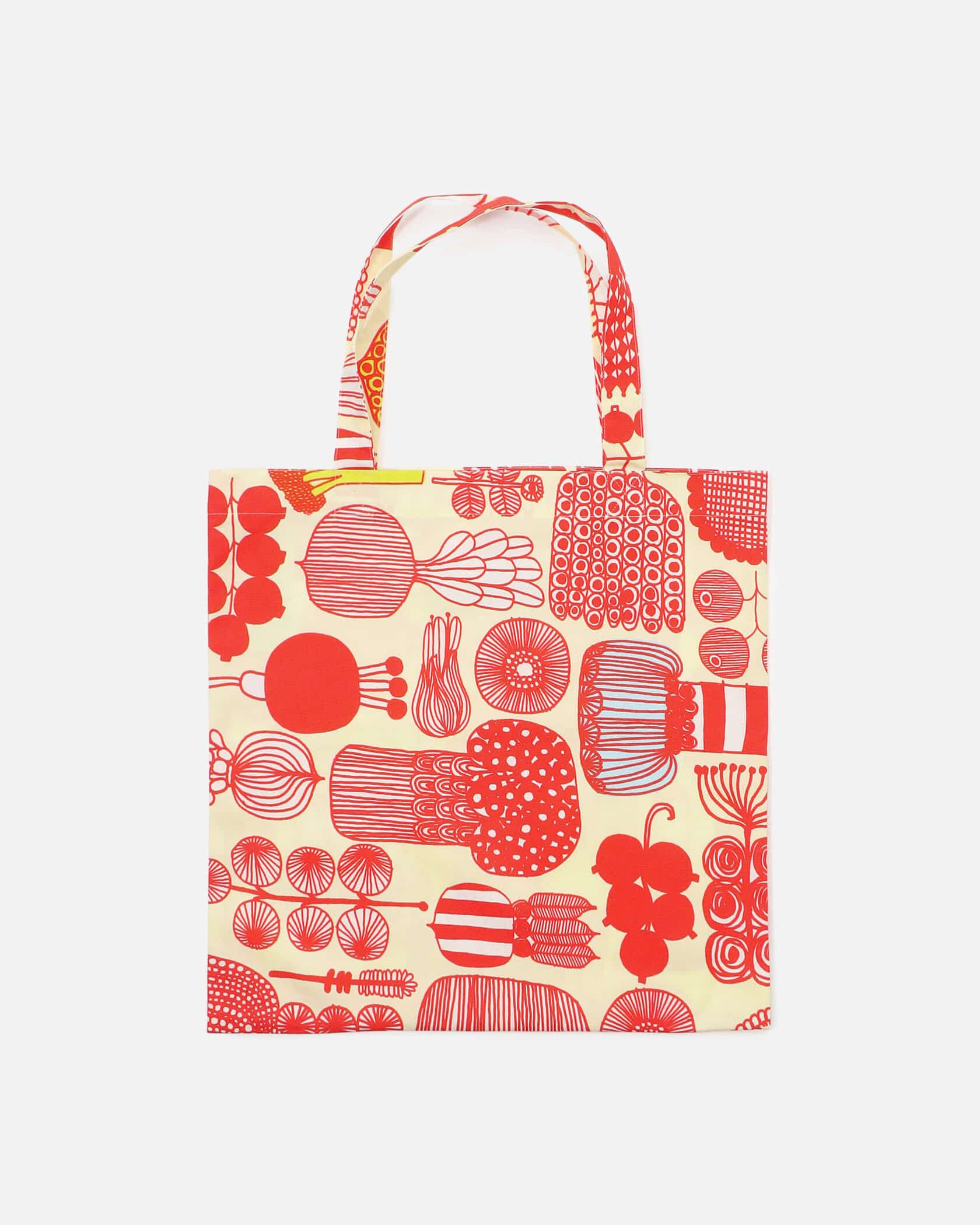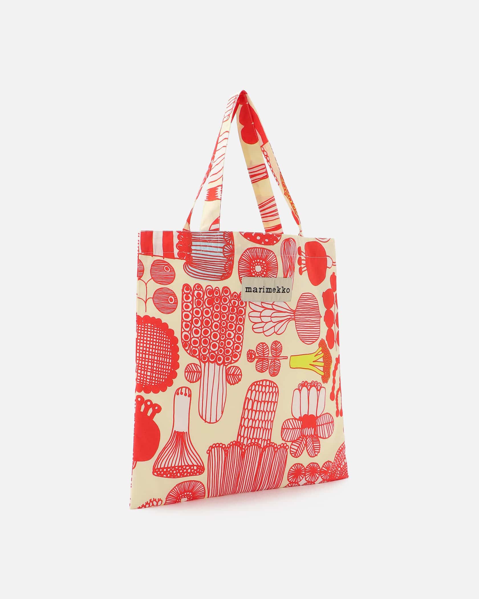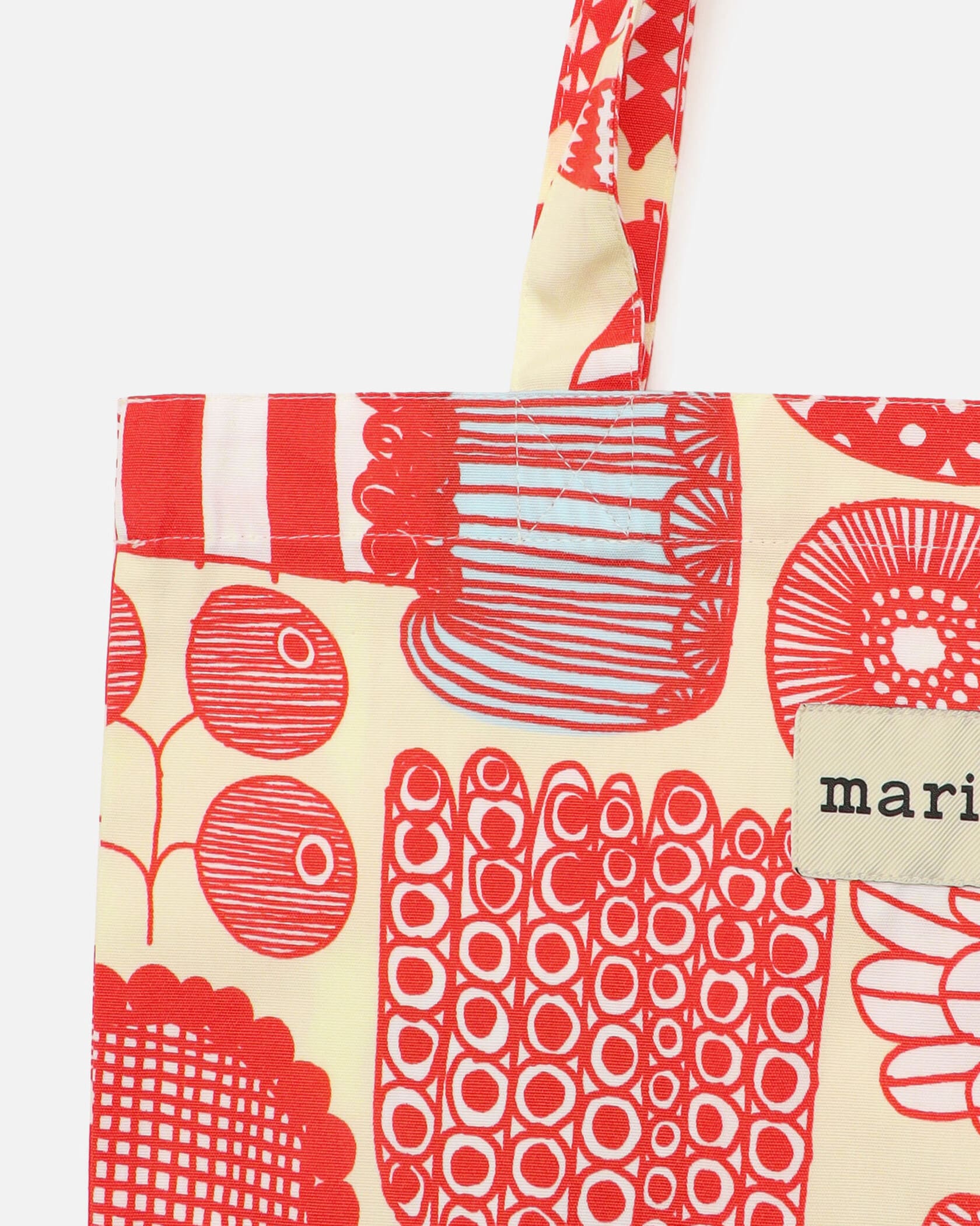 marimekko人気のファブリックバッグです。たっぷり入って持ち運びもしやすく、メインバッグにもサブバッグにもなり、さらに買い物のグロサリーバッグにもなる優れた一品。賑やかなデザインは、スタイリングのワンポイントになります。