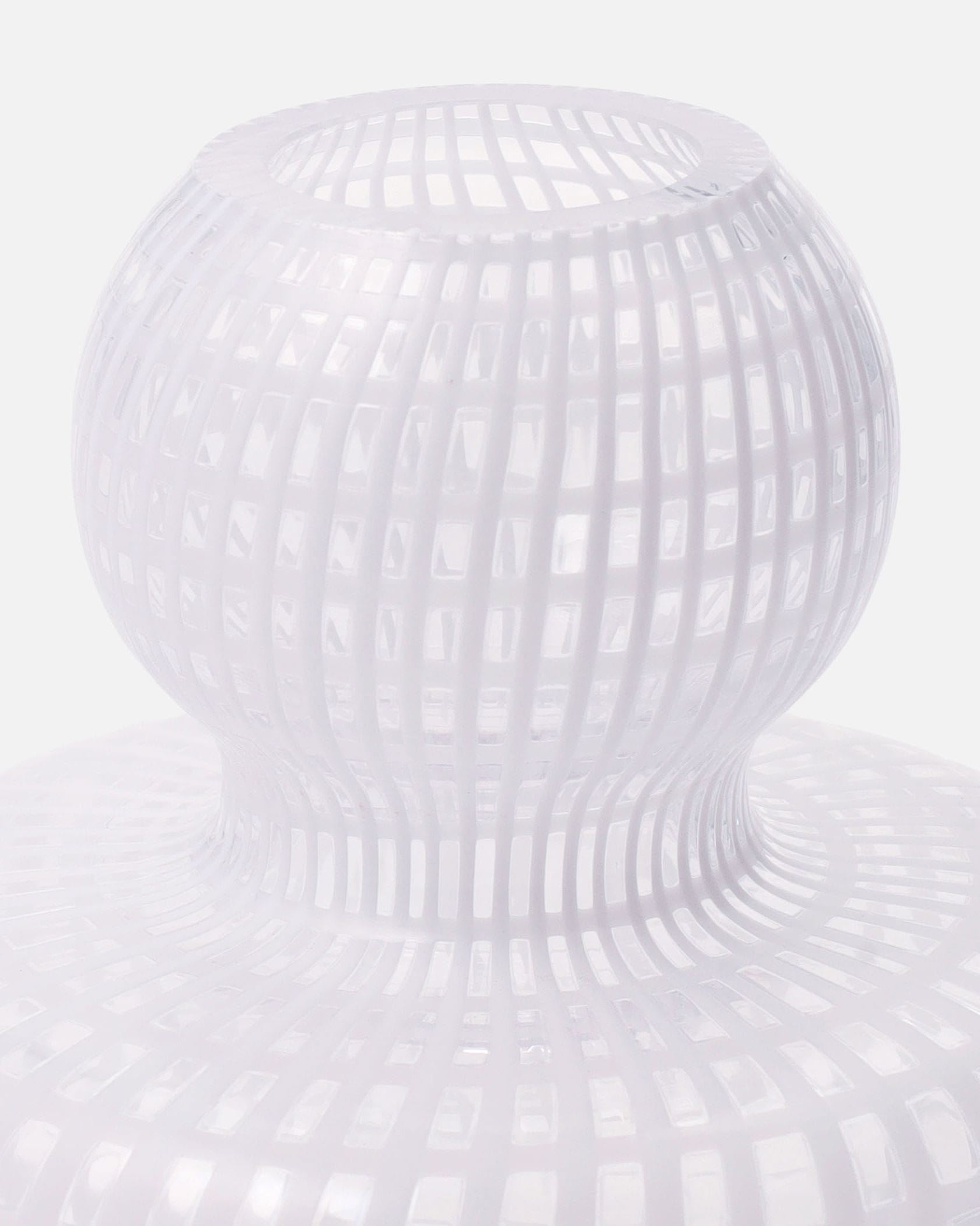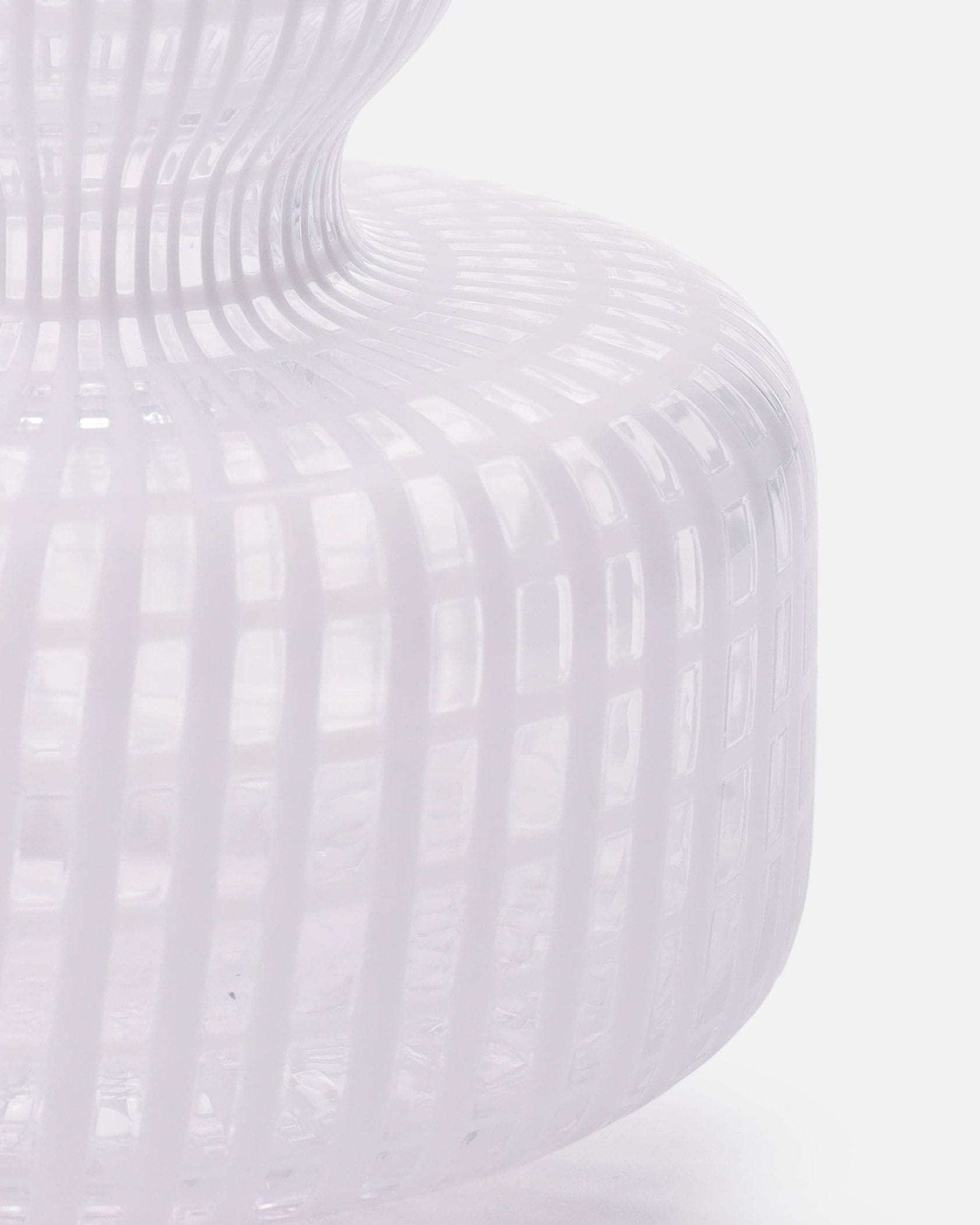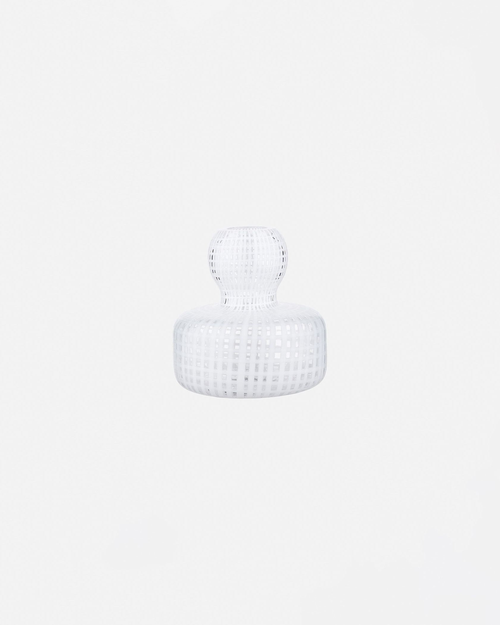 シンプルな中にひねりを効かせたフラワーベース。流れるような格子柄が、インテリアのさりげないアクセントに。コロンとした丸みのあるフォルムも、優美な表情を演出します。