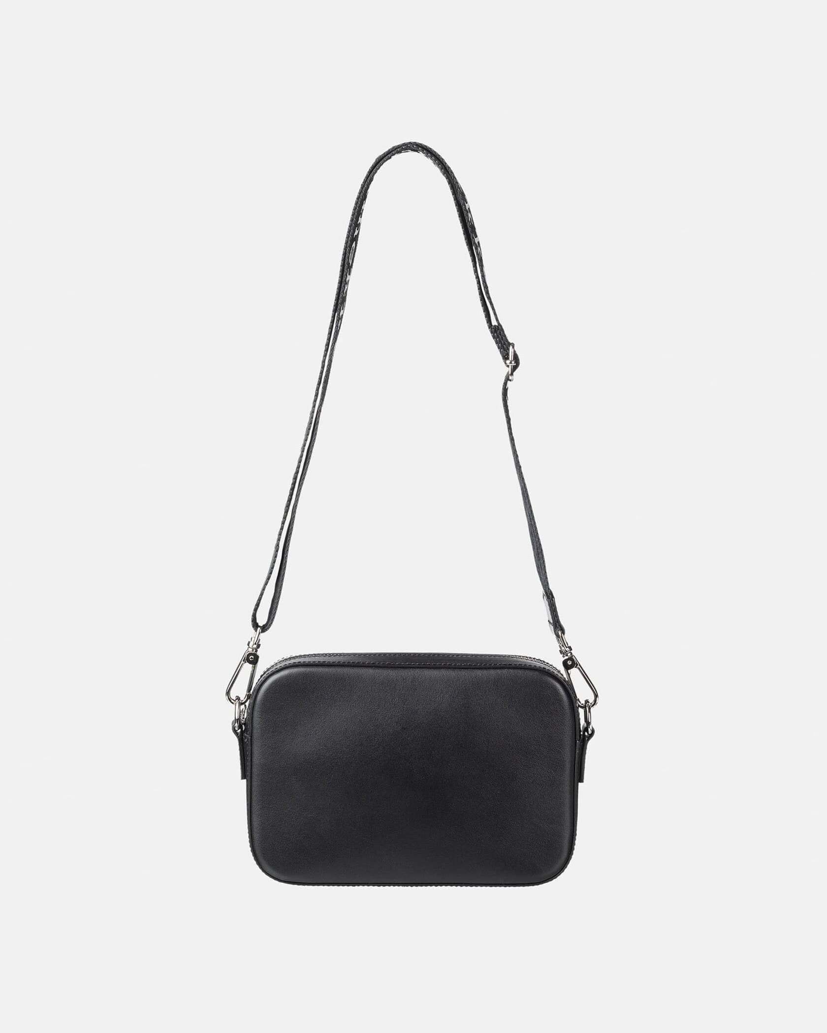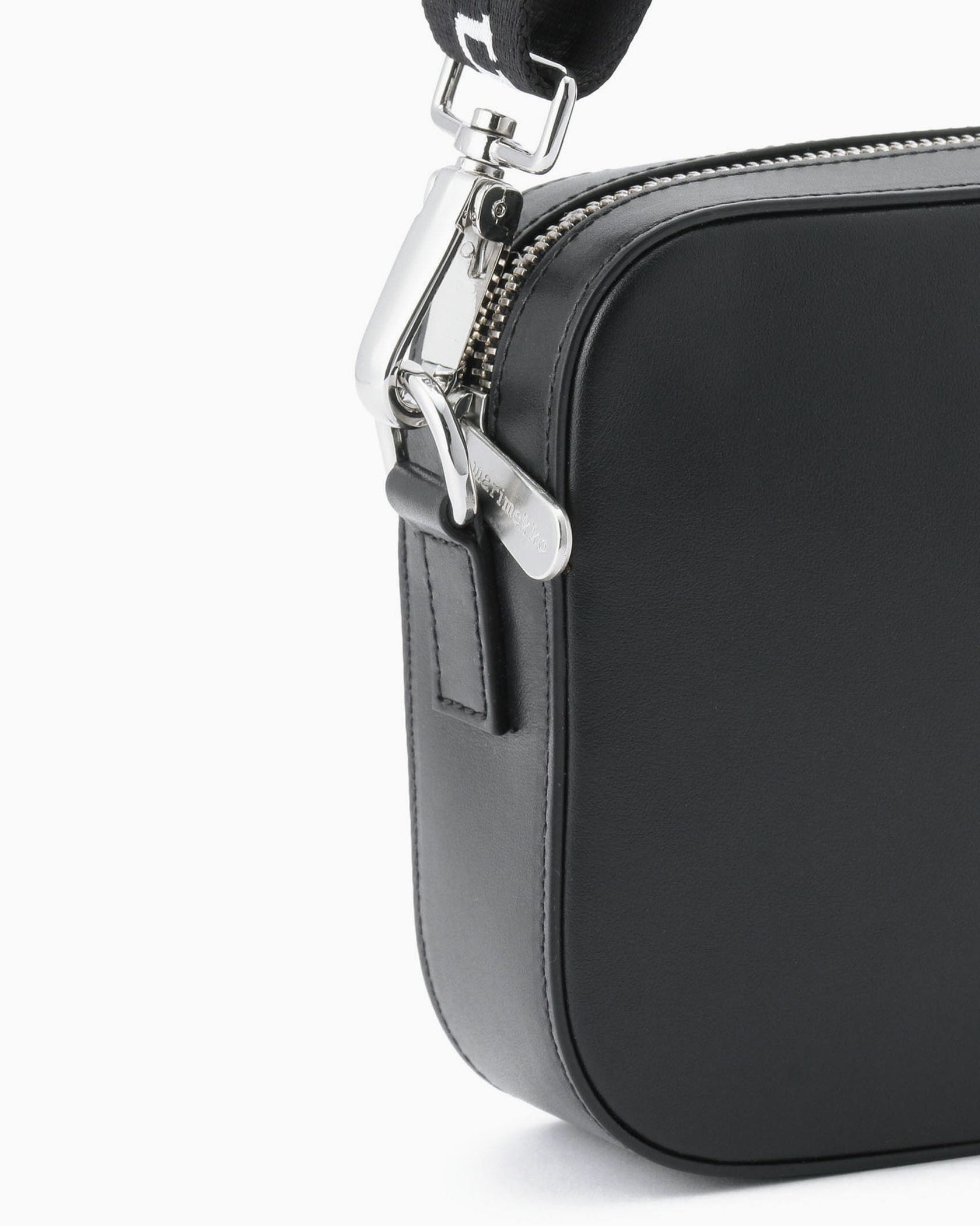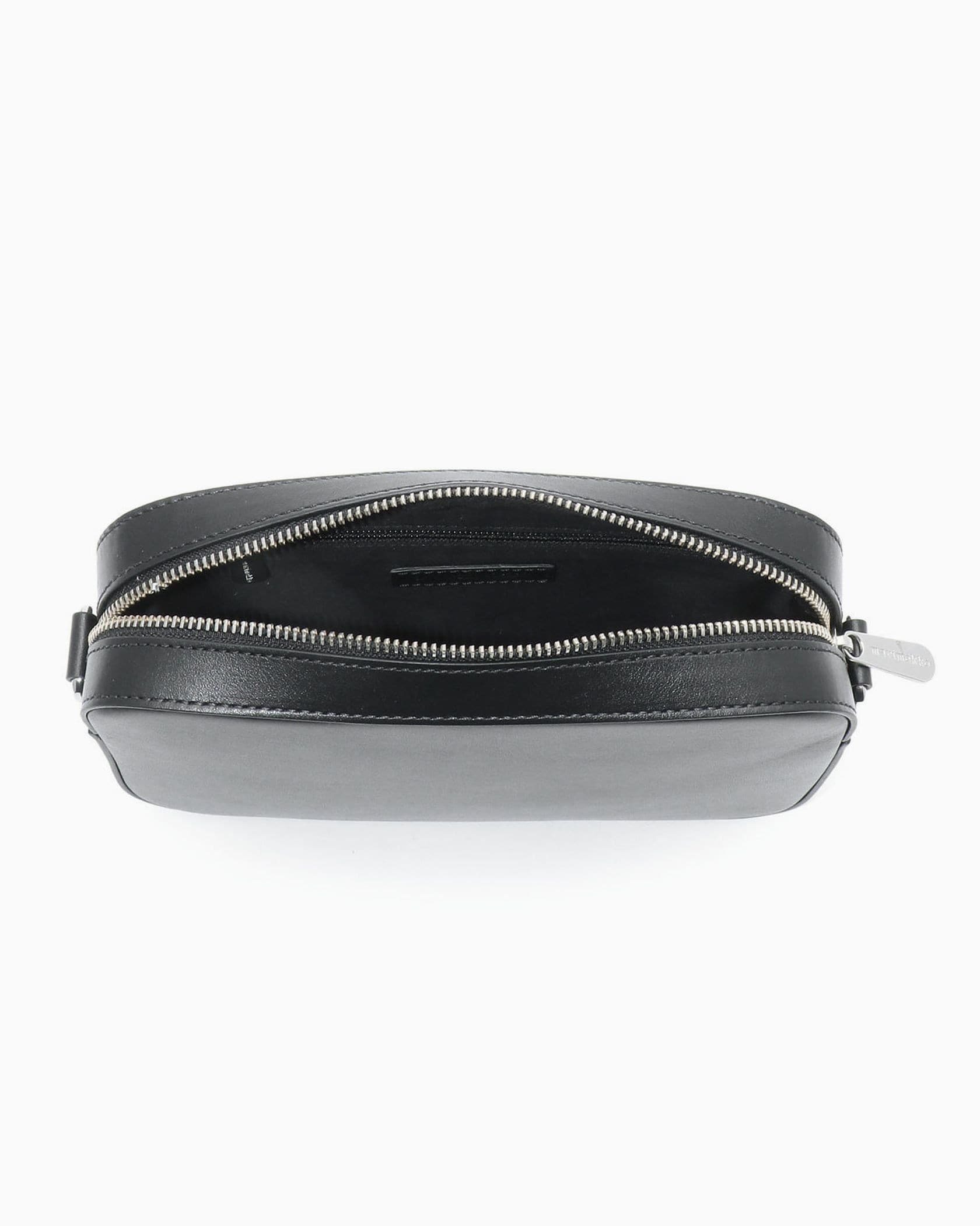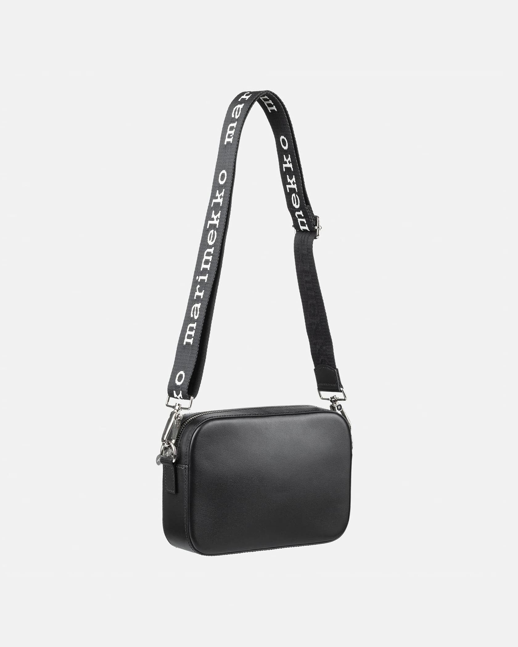 シンプルモダンなレクタングルフォルムのレザーショルダーバッグ。マリメッコのロゴ入りショルダーストラップは長さの調整が自在。フック仕様になっており、取り外しも可能です。間口はジップクロージャー、内部にジップポケットが配置されています。