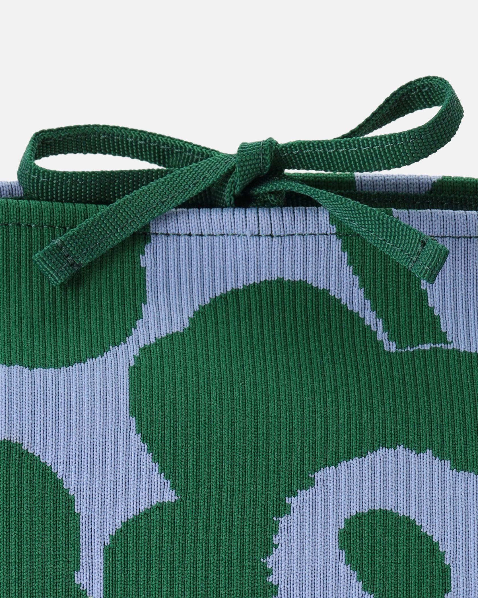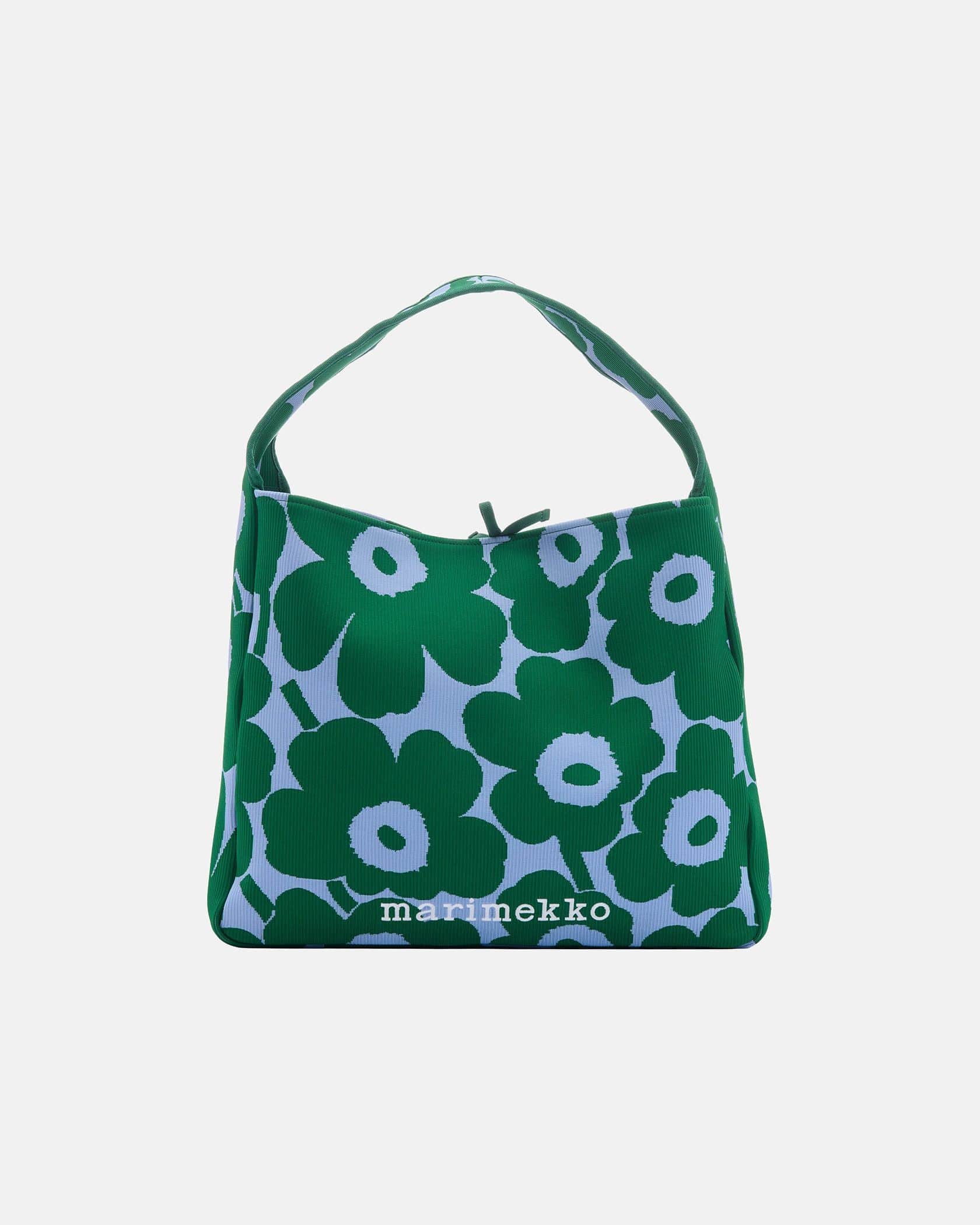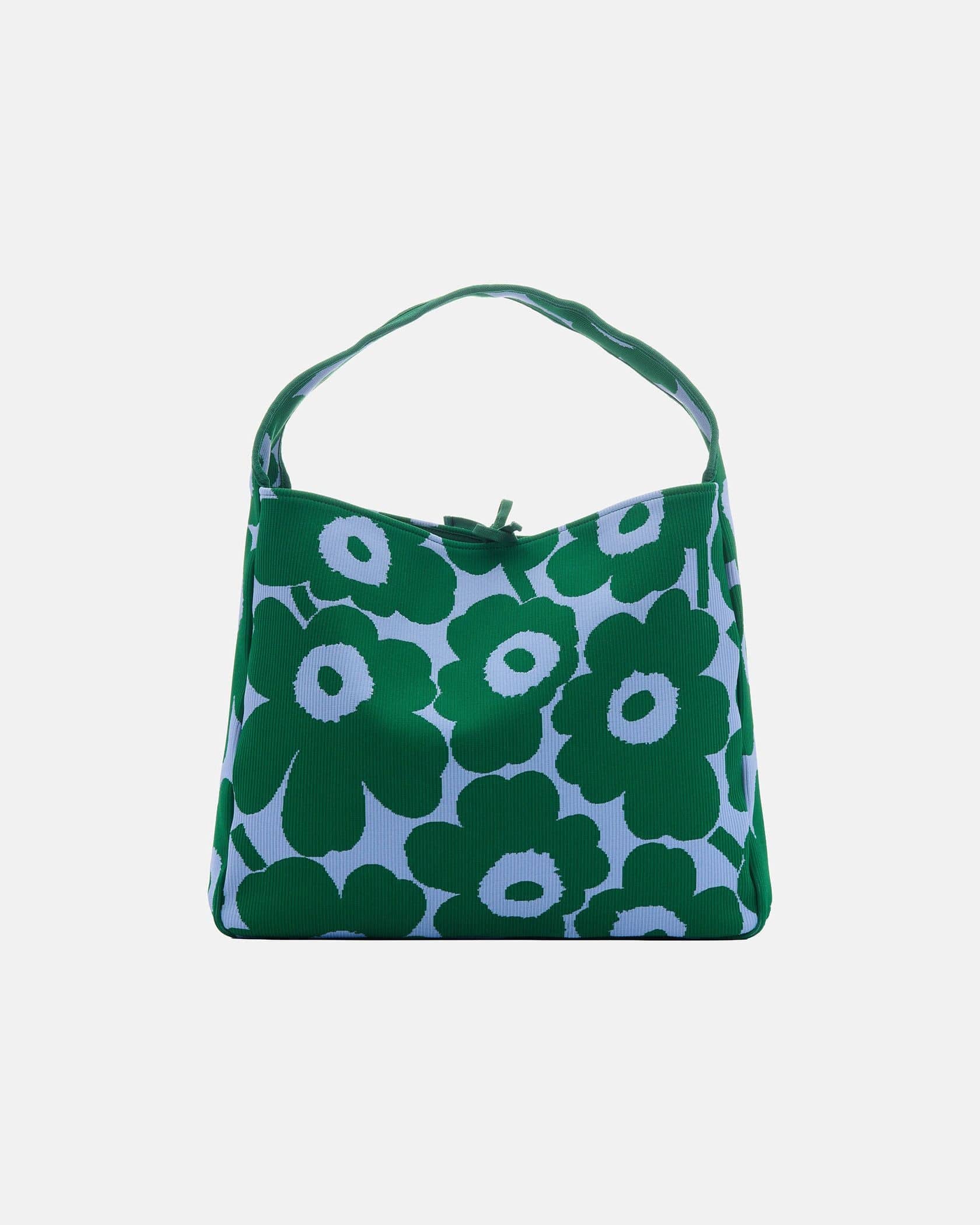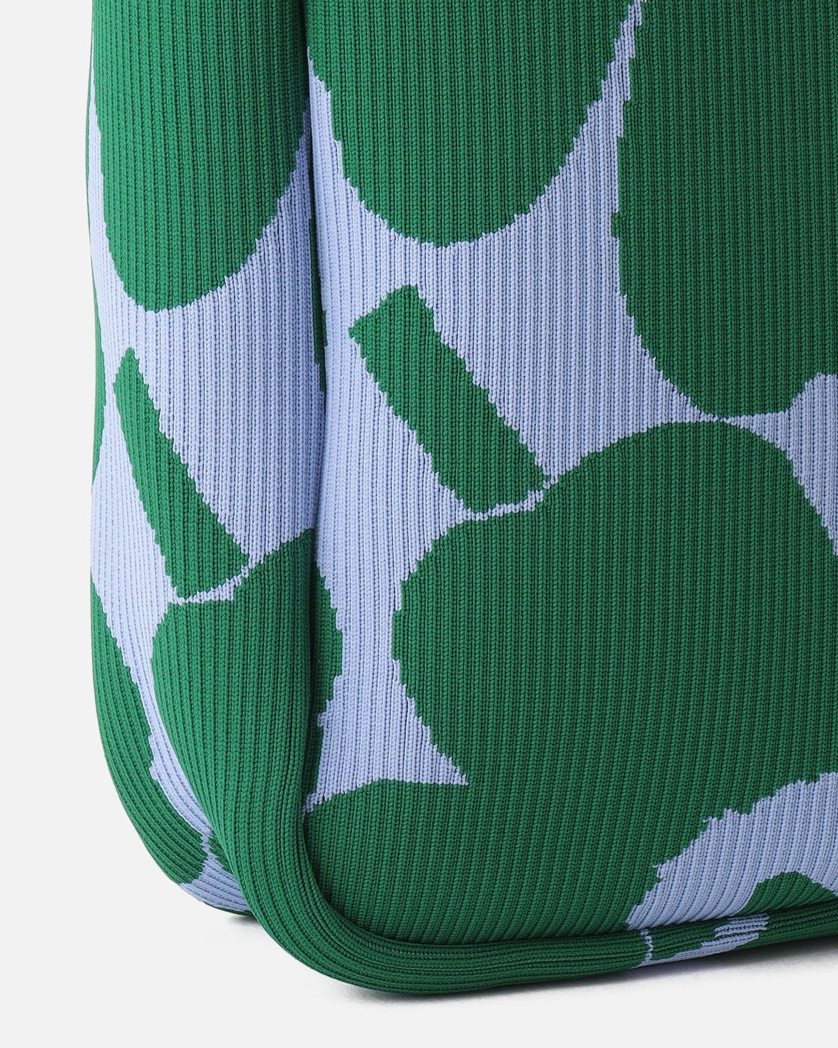 遠目にも存在感たっぷりなUnikko柄で仕上げたトートバッグです。柔らかくて丈夫なニット素材を使用、マチたっぷりのラージサイズで普段使いはもちろんショッピングや旅行など色んなシーンでお使いいただけます。肩掛けがしやすいワンハンドル仕様、他のサイズの同柄バッグとセットでそろえるのもおすすめです。