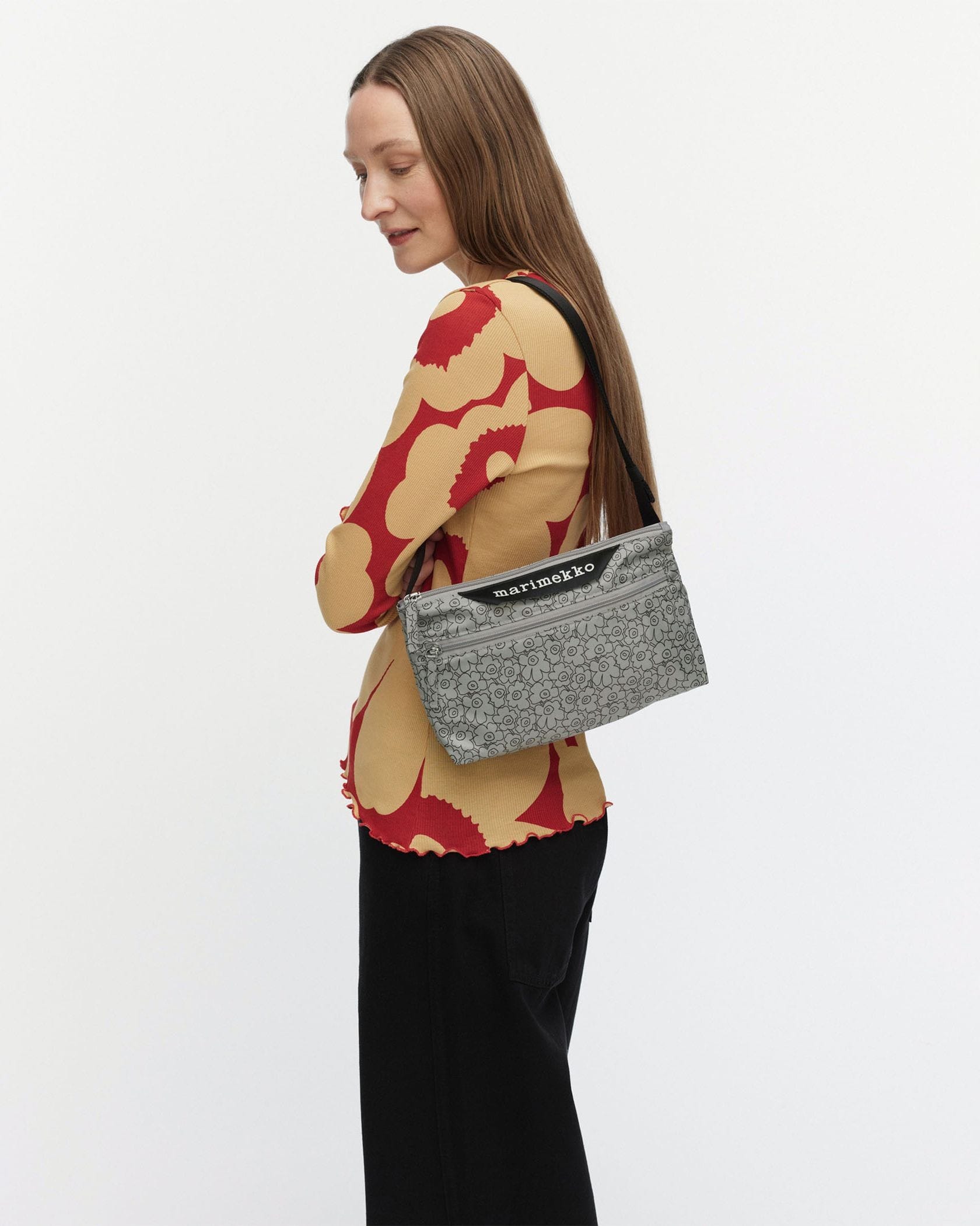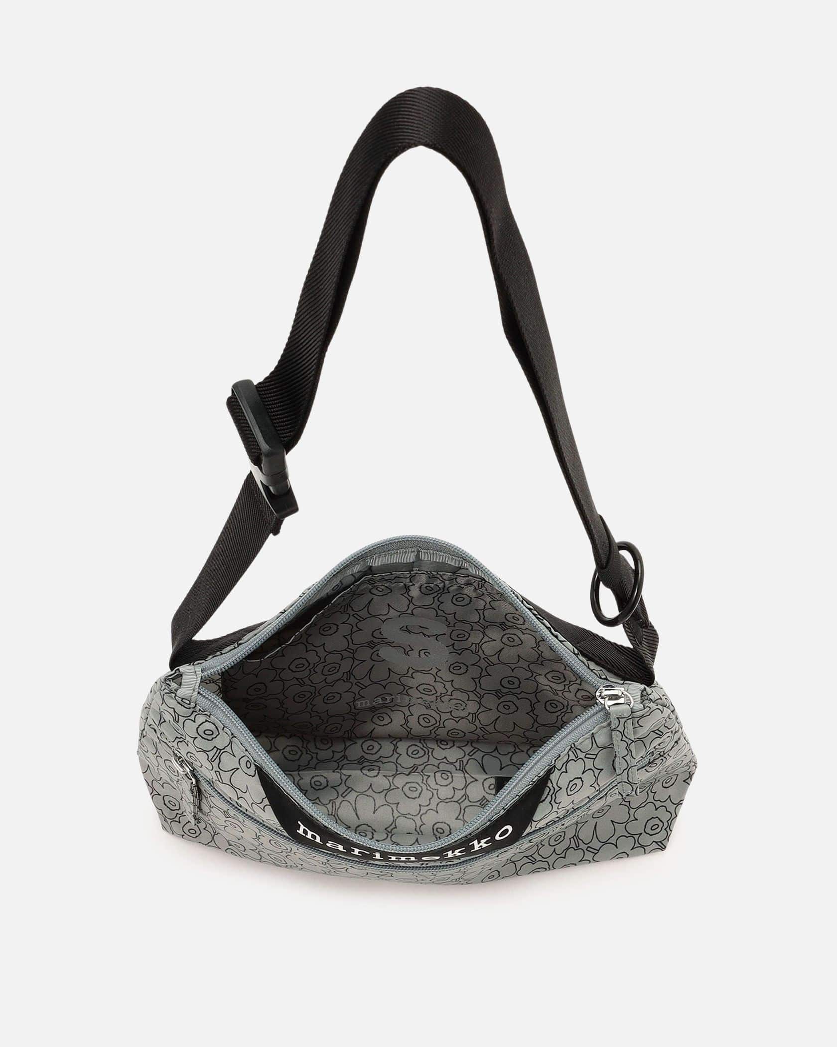 Marimekkoを代表するUnikko柄をラインで表現したスタイリッシュなデザインが特徴のシンプルなワンストラップミニショルダーバッグ。フロントにあしらわれたロゴタグもスタイリッシュなデザイン。内側にはバッグ全体を折りたたんで収納できるスリップインポケット付きで機能性も抜群のアイテムです。