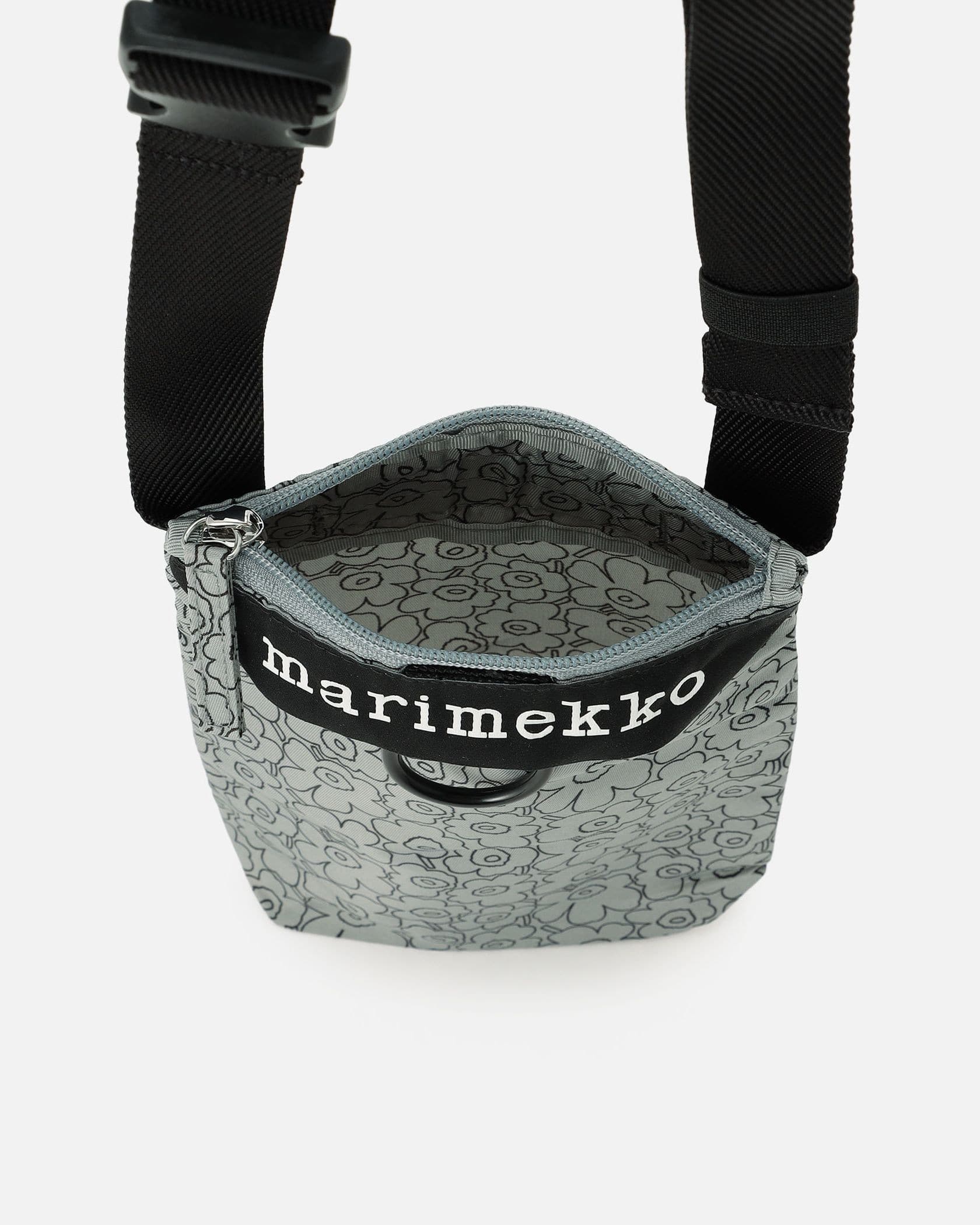 緻密なUnikko柄を敷き詰めた、繊細なグラフィックを用いたショルダーバッグ。スマートフォンやミニウォレットなど、肌身離さず身に着けておきたいものがスマートに収まるサイズです。斜め掛けした時のフィット感の良さも満点で、アクティブに動きたいシーンにも最適。ストラップは長さの調節も可能です。