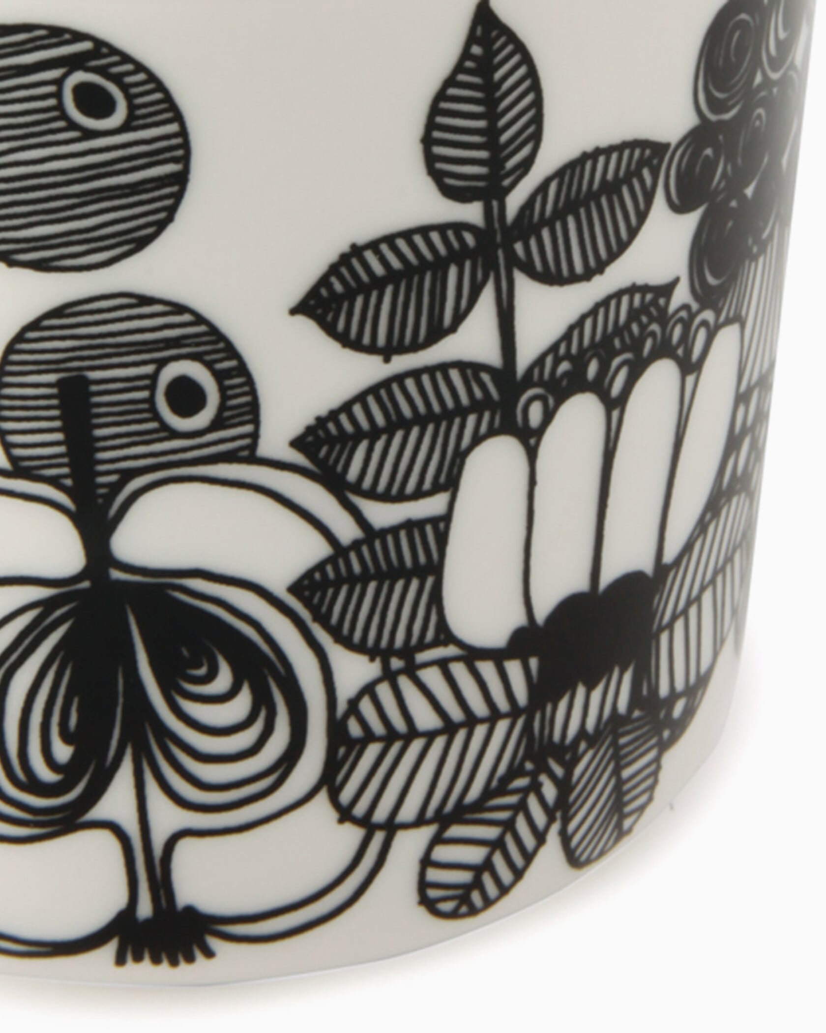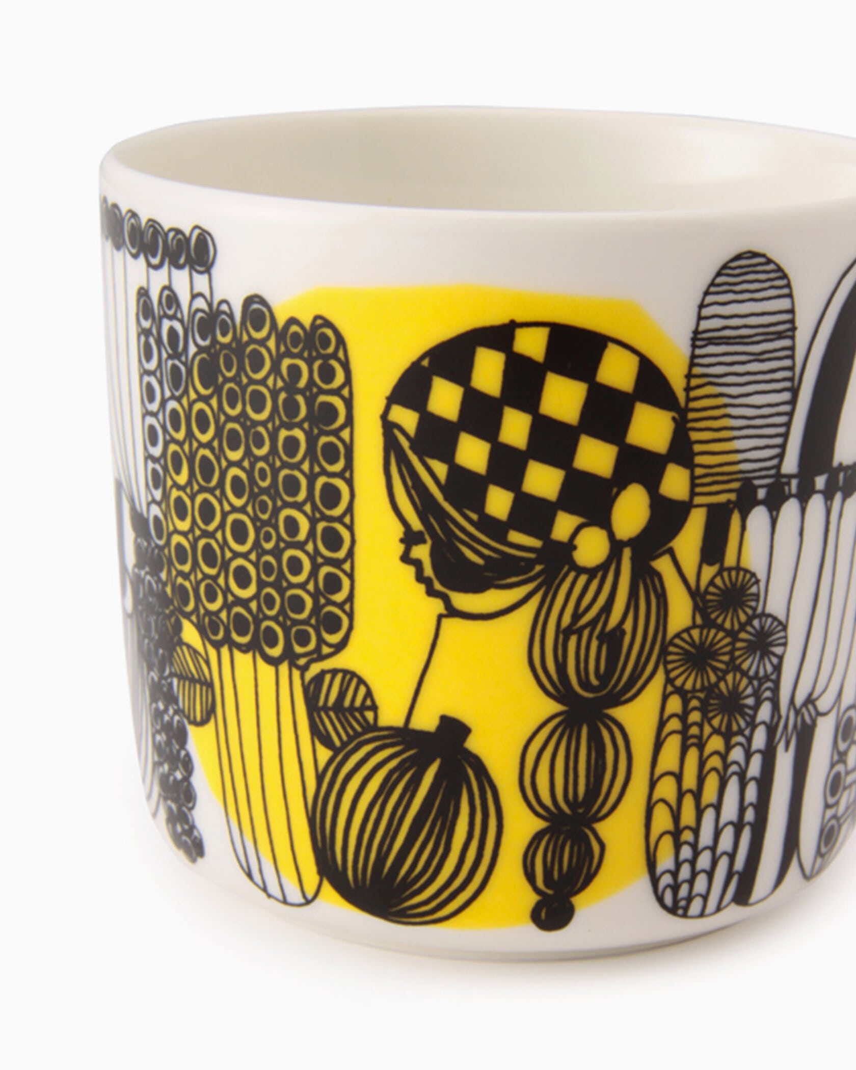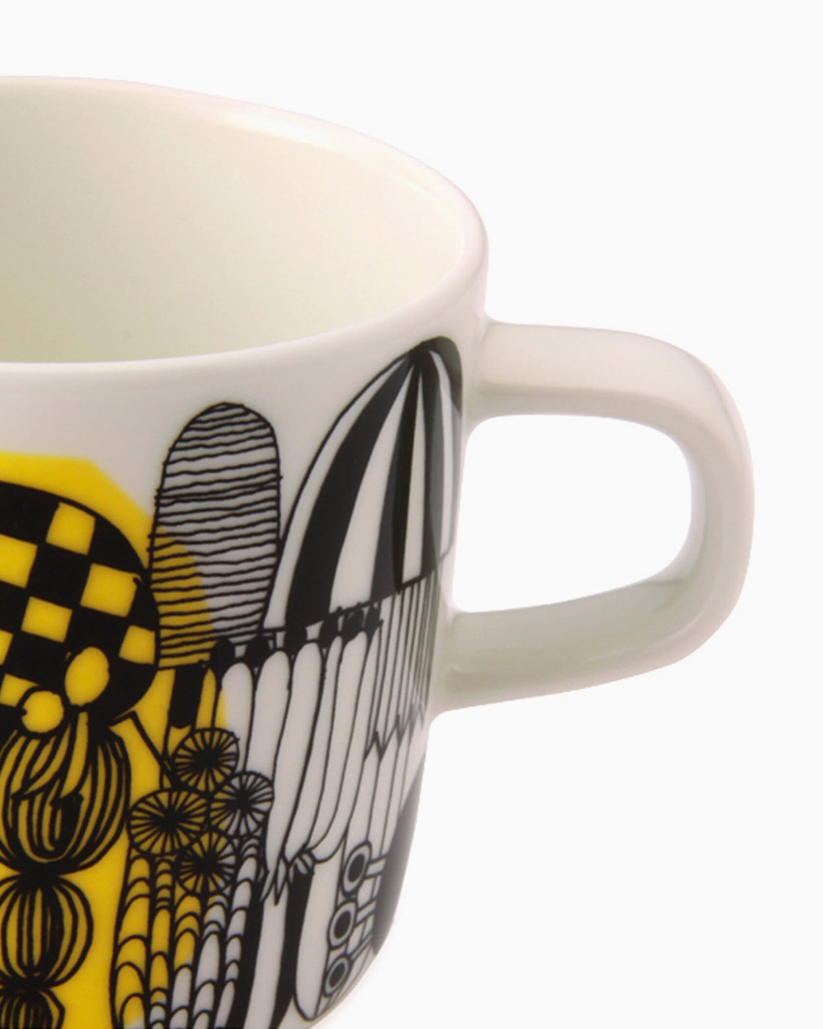 モノトーンカラーのゆるやかなタッチのイラストに、まぶしいイエローでアクセントを効かせたコーヒーカップ。容量は200mlです。使うたびにセンスの良さをアピールできるスタイリッシュなデザインなので、コーヒーブレイクが楽しみになりそうです。