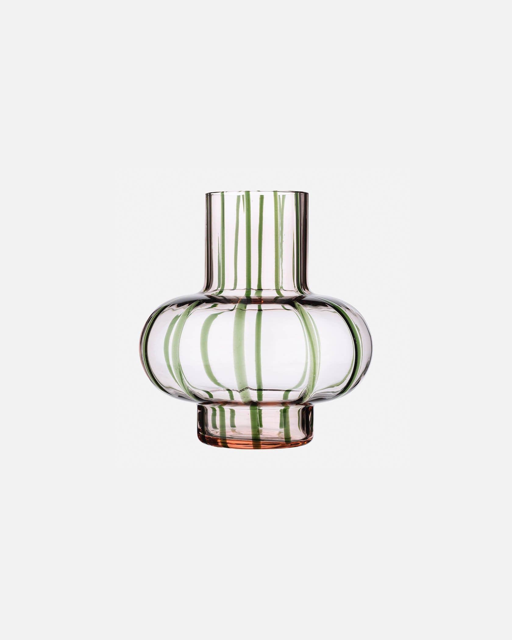 ファッションからインテリア雑貨まで幅広いジャンルで人気のMarimekkoから、Umpuフラワーベースが登場です。直線と曲線を組み合わせたモダンなフォルム、透明なガラスに映えるグリーンのラインが花や草木を引き立てます。花瓶としてはもちろん、そのままお部屋に飾るのもおすすめのアイテムです。