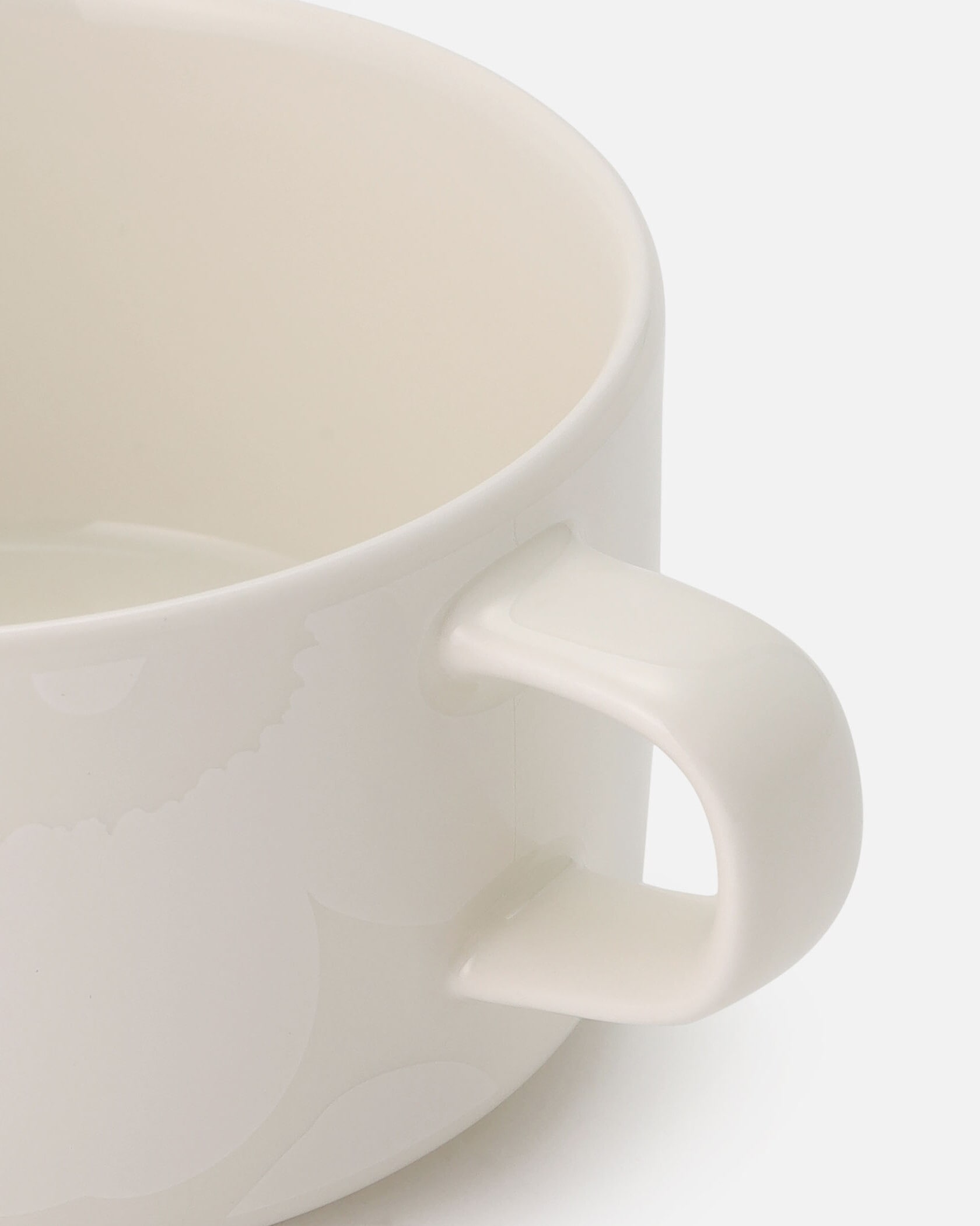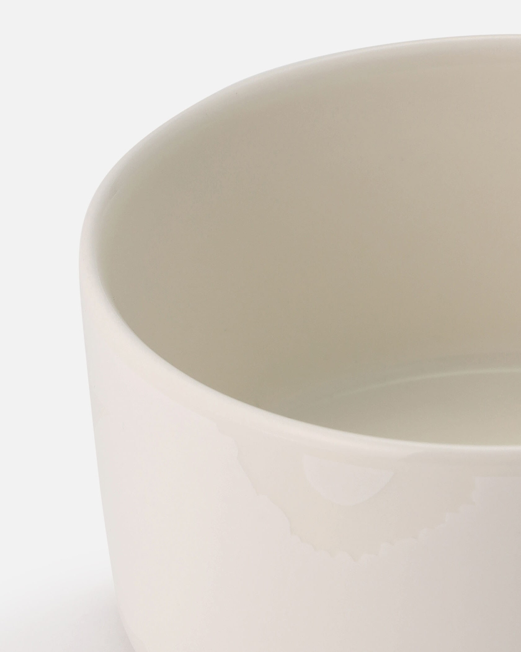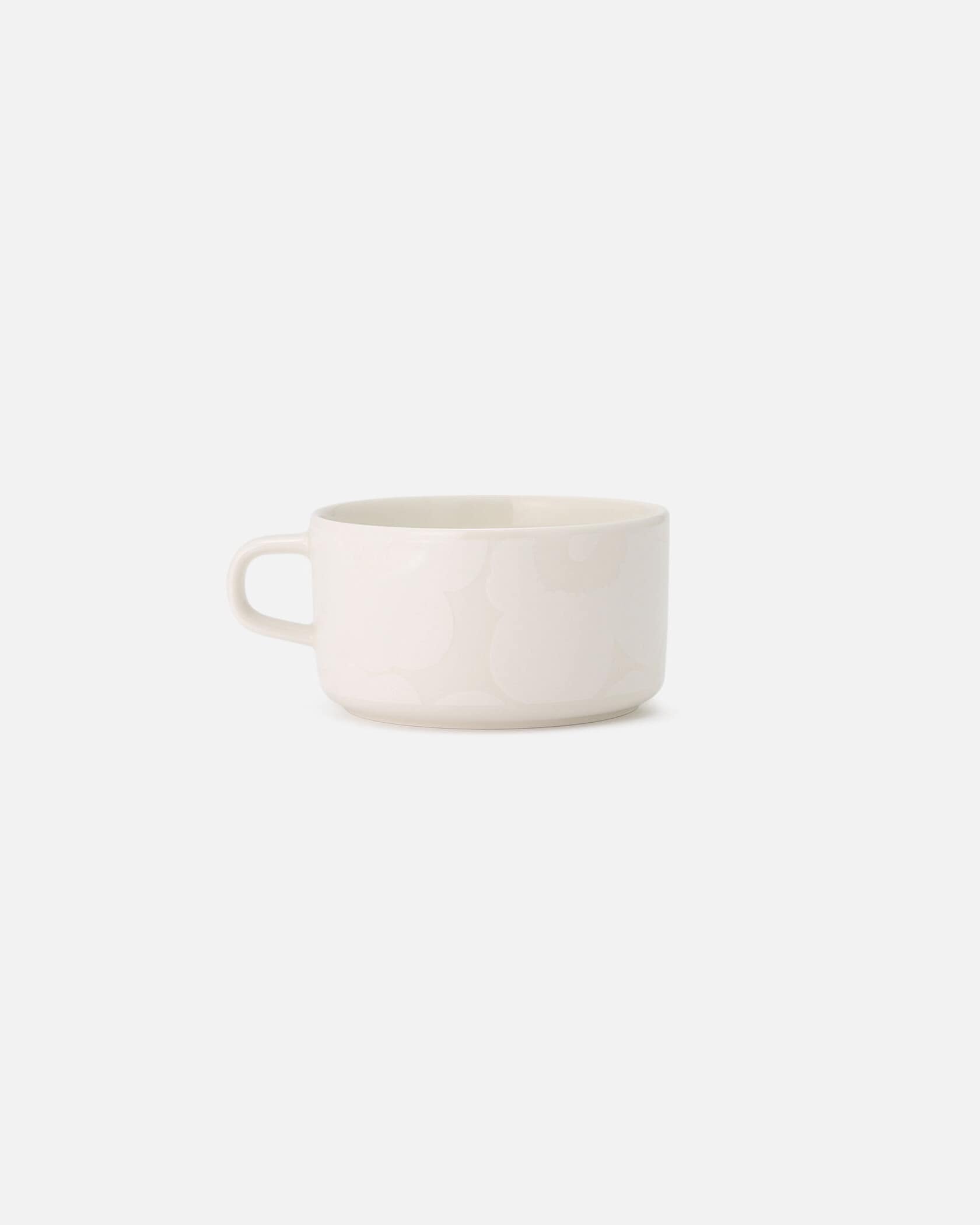 少し平たい造形で、愛らしい表情に仕上げたティーカップです。ベースの色と同系色のUnikko柄を乗せて、シンプルな中にもモダンな感性を潜ませているのが特徴。お気に入りのお茶やコーヒーをたっぷり淹れてお楽しみいただけます。さりげなく飾っておくだけでも絵になる佇まいは、ギフトとしても喜ばれます。