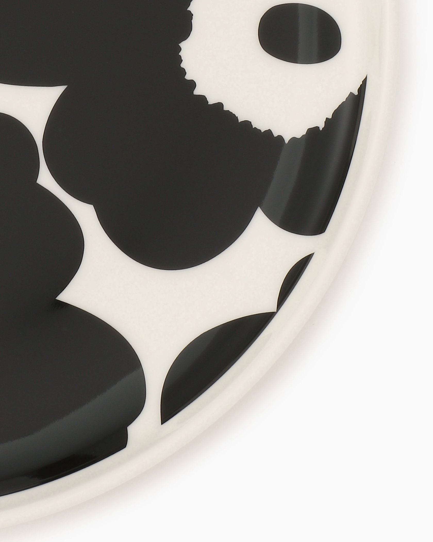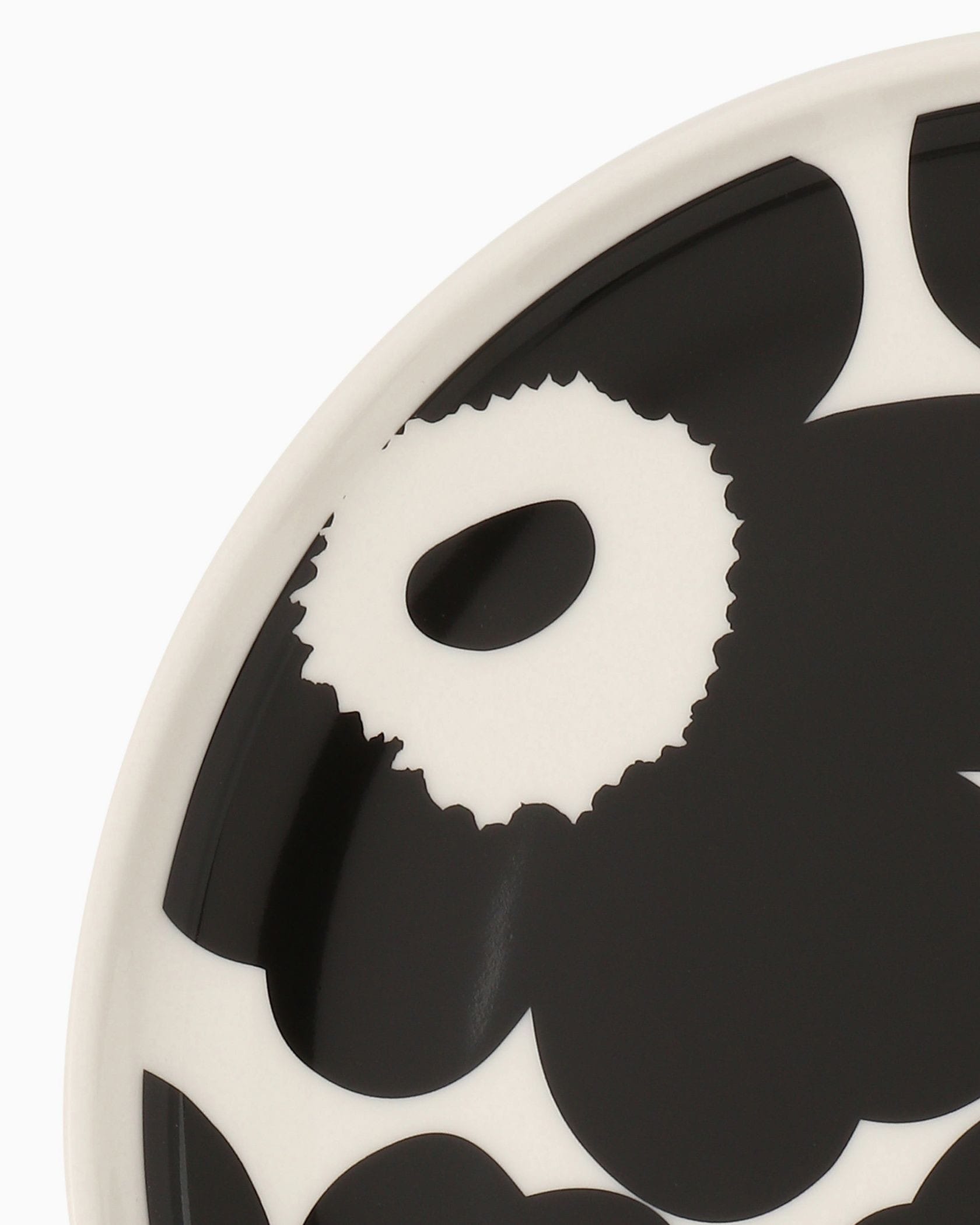 花をモチーフにしたUnikko(ウニッコ)柄のサークルプレート。20cmサイズは何枚か揃えて取り皿にするのもおすすめです。卓上に華やぎを与えてくれるアイテムはおもてなしにも最適。裏面にはブランドロゴが添えられています。