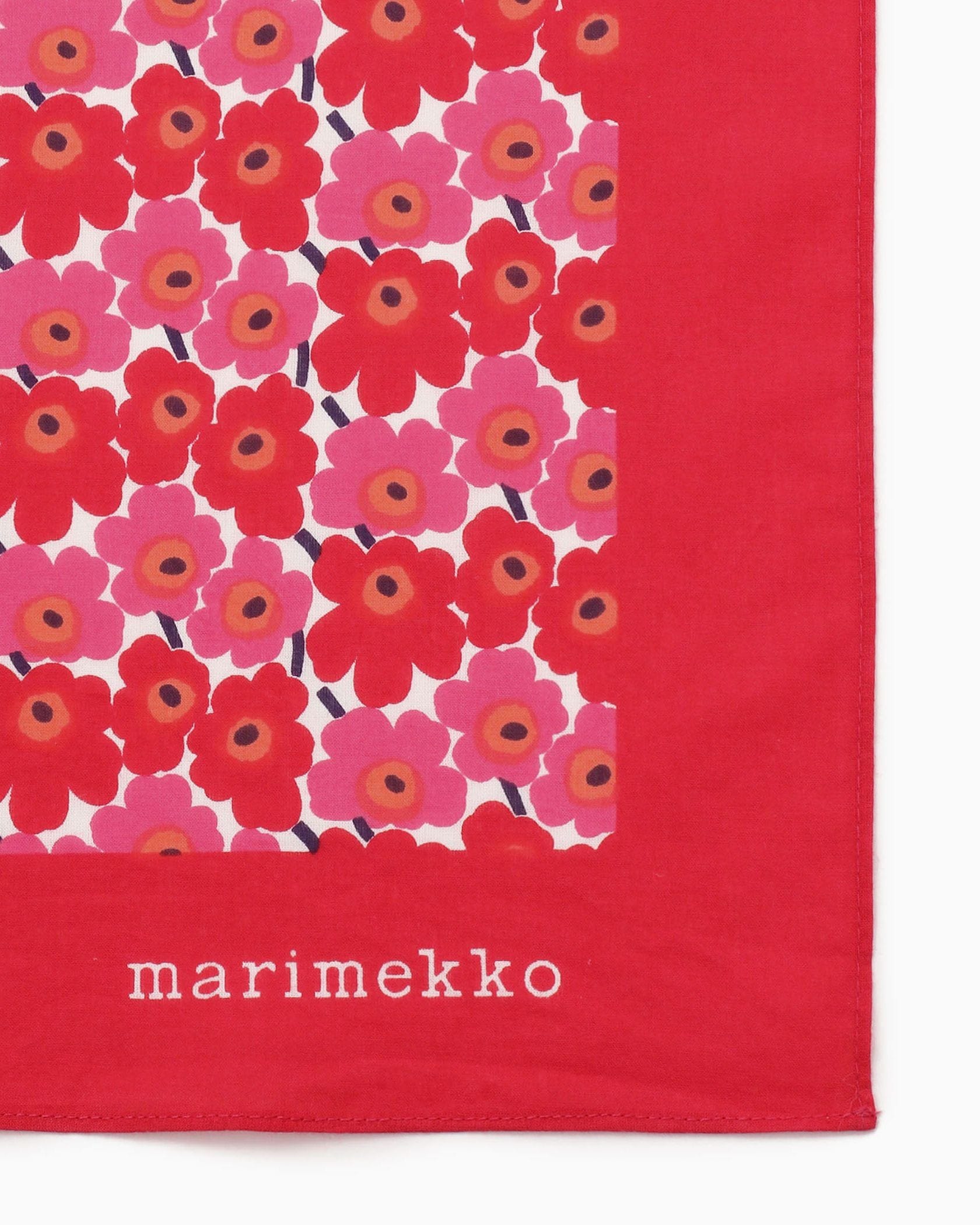 花をモチーフにしたUnikko(ウニッコ)柄で埋め尽くしたスカーフです。さらりとした風合いのコットン100%素材を採用。縁にはブランドロゴを添えてワンポイントに。鮮やかなカラーこそ小物で取り入れて、スタイリングに華やかさをプラスするのがおすすめです。