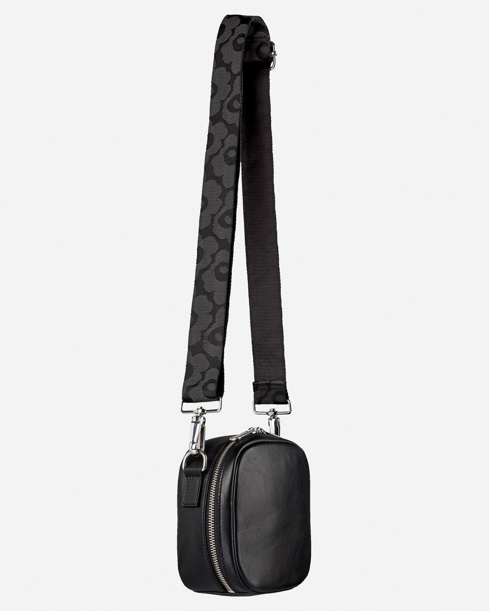 上品なレザー調のボディをスクエアフォルムに仕上げた、モードな表情のショルダーバッグ。大きく開く開口部はジップアップ仕様となっており、使い勝手にもこだわっておつくりしました。アクセントになっているウニッコ柄のストラップは、サイズ調整することで掛け方のアレンジも可能なため、スタイリングに合わせて使い分けも楽しめます。