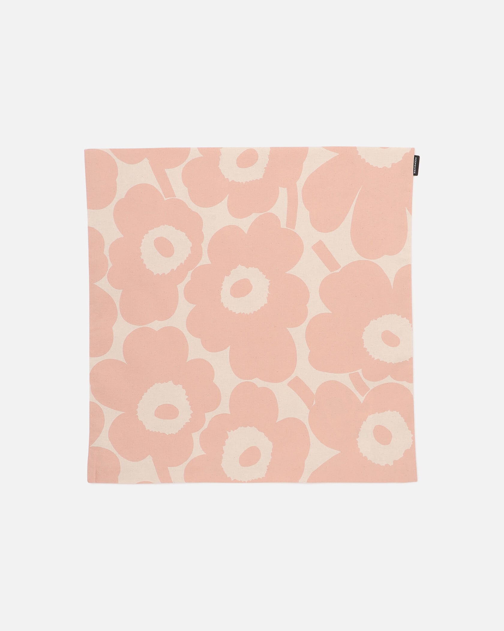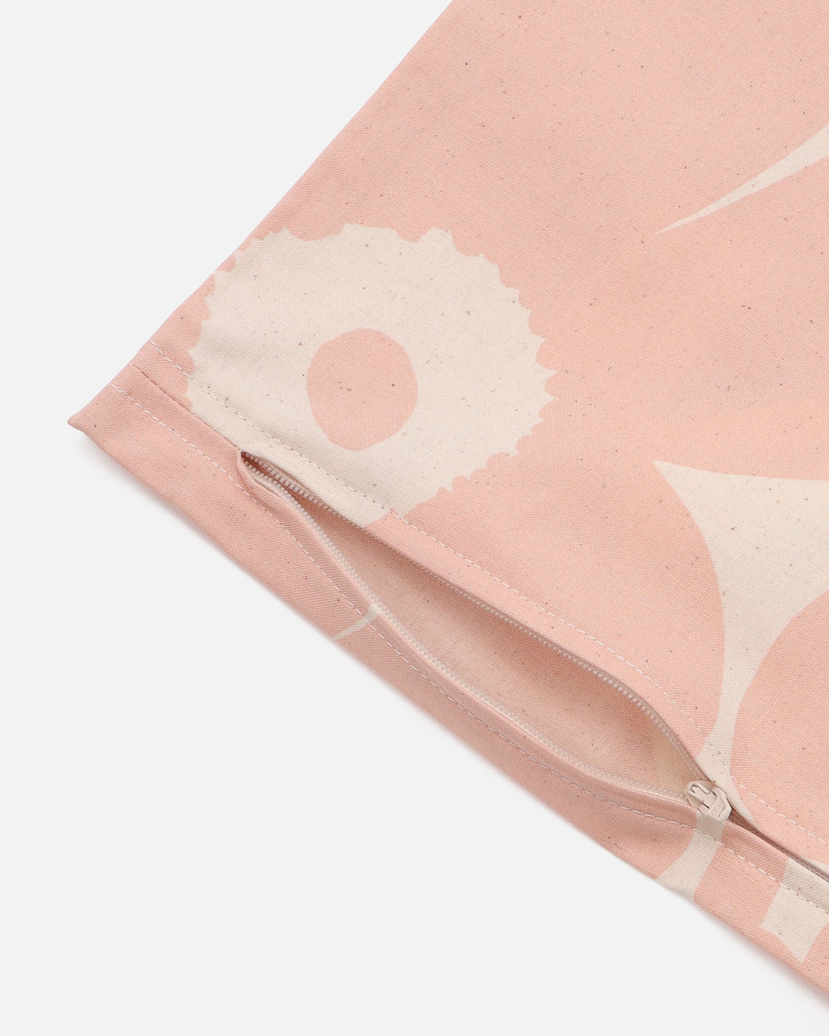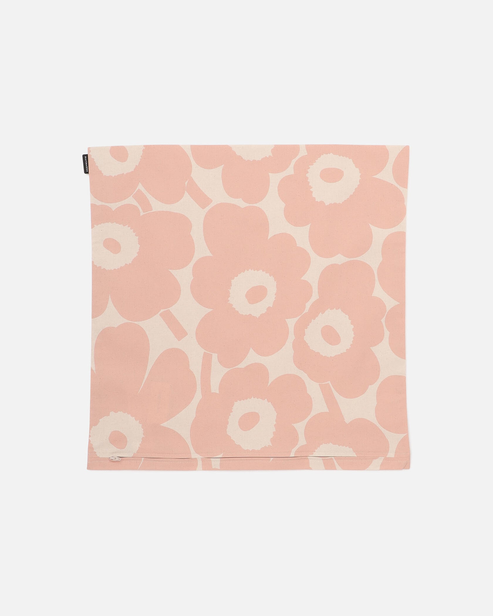 シーズン問わずにお使いいただける、コットン100%素材を使用したクッション。花をモチーフとしたMarimekkoを代表するUnikko柄を淡いピンクでやわらかな印象に仕上げています。ソファやベッドとコーディネートすると、お部屋がぱっと華やぐアイテムです。