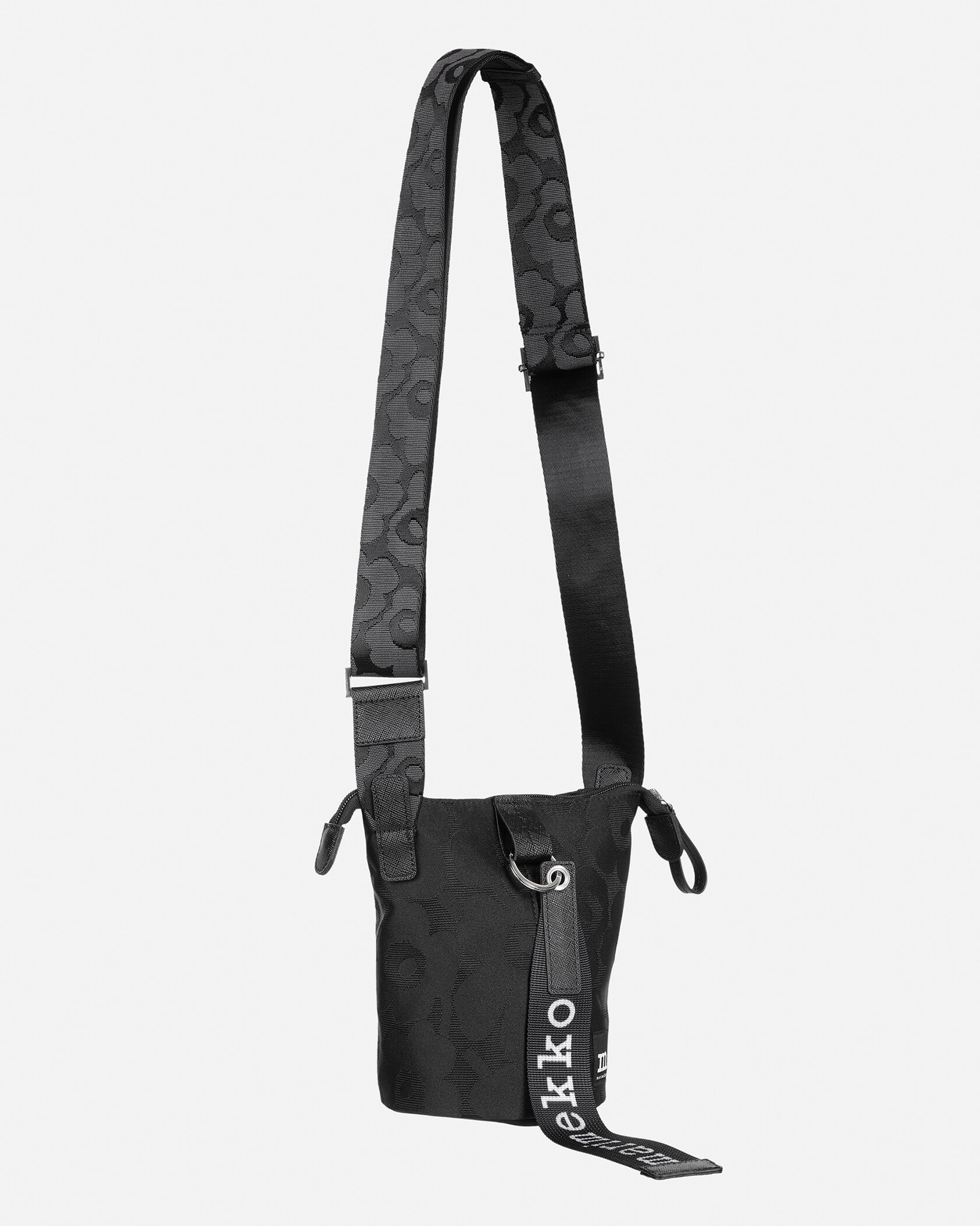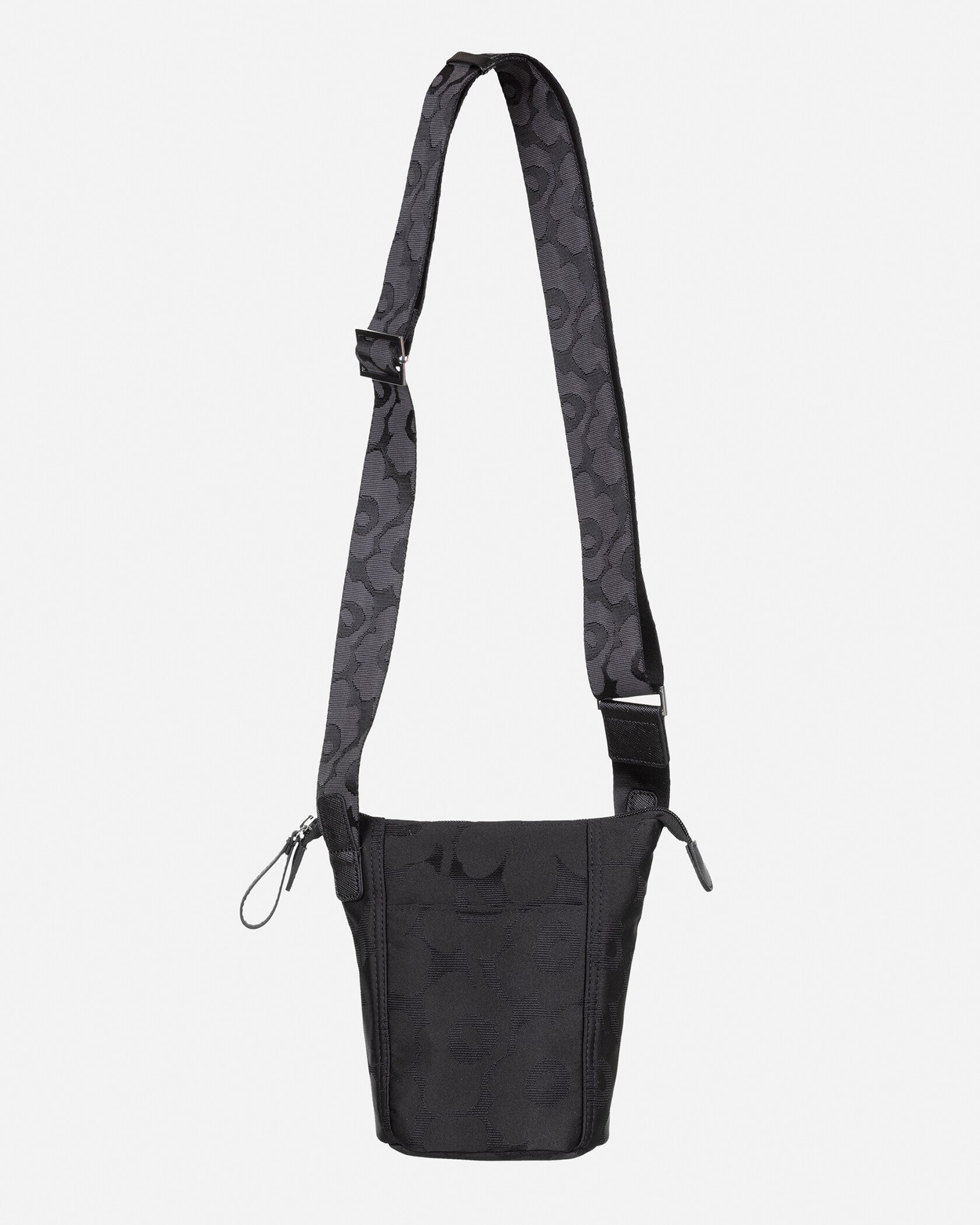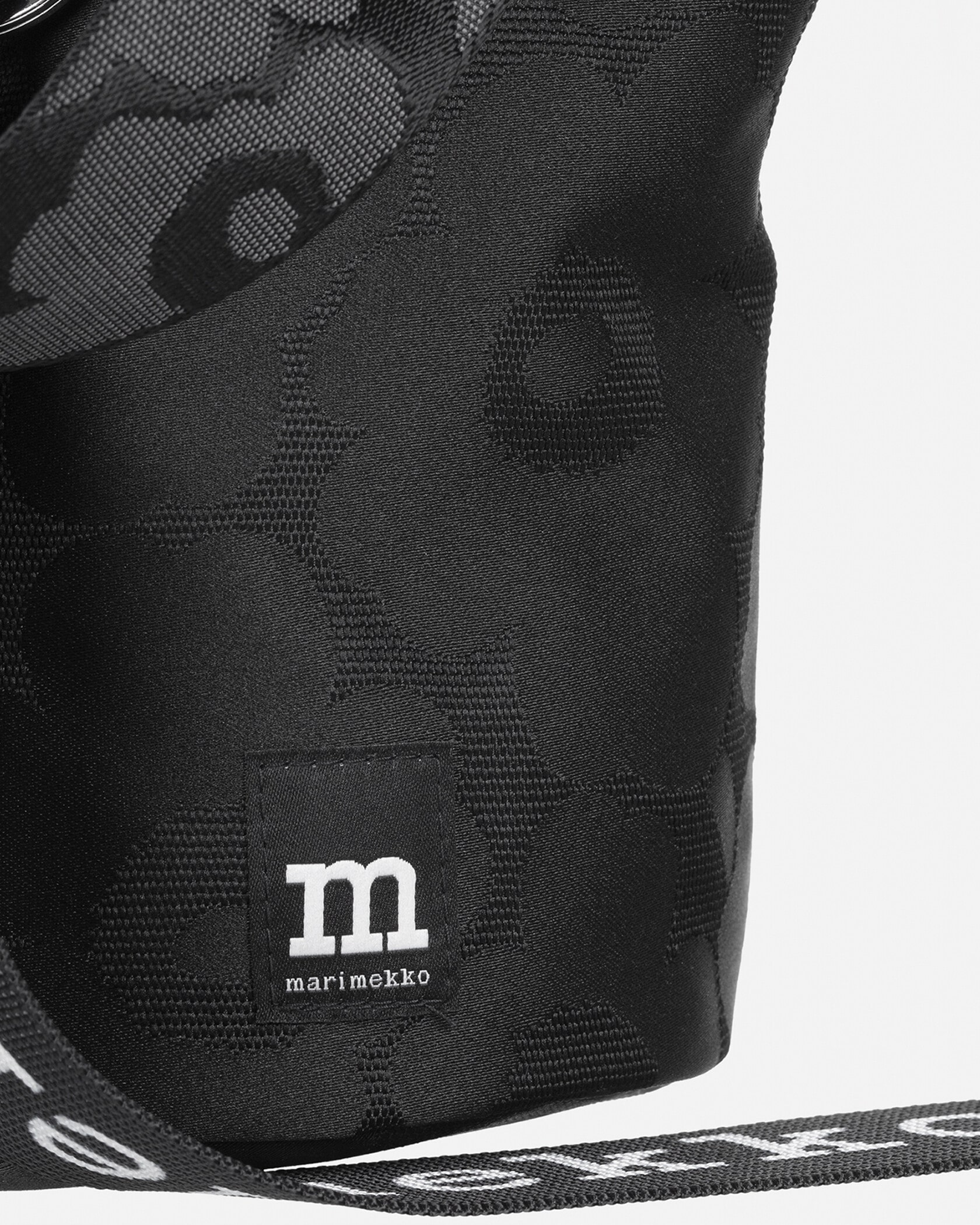 Unikkoパターンのジャガード織でモードシックな雰囲気に仕上げたバケットショルダーバッグ。ストラップは長さの調整が可能です。部分的にレザーディテールを取り入れることで素材によるメリハリをつけています。Marimekkoのロゴがあしらわれたストラップもワンポイントに。
