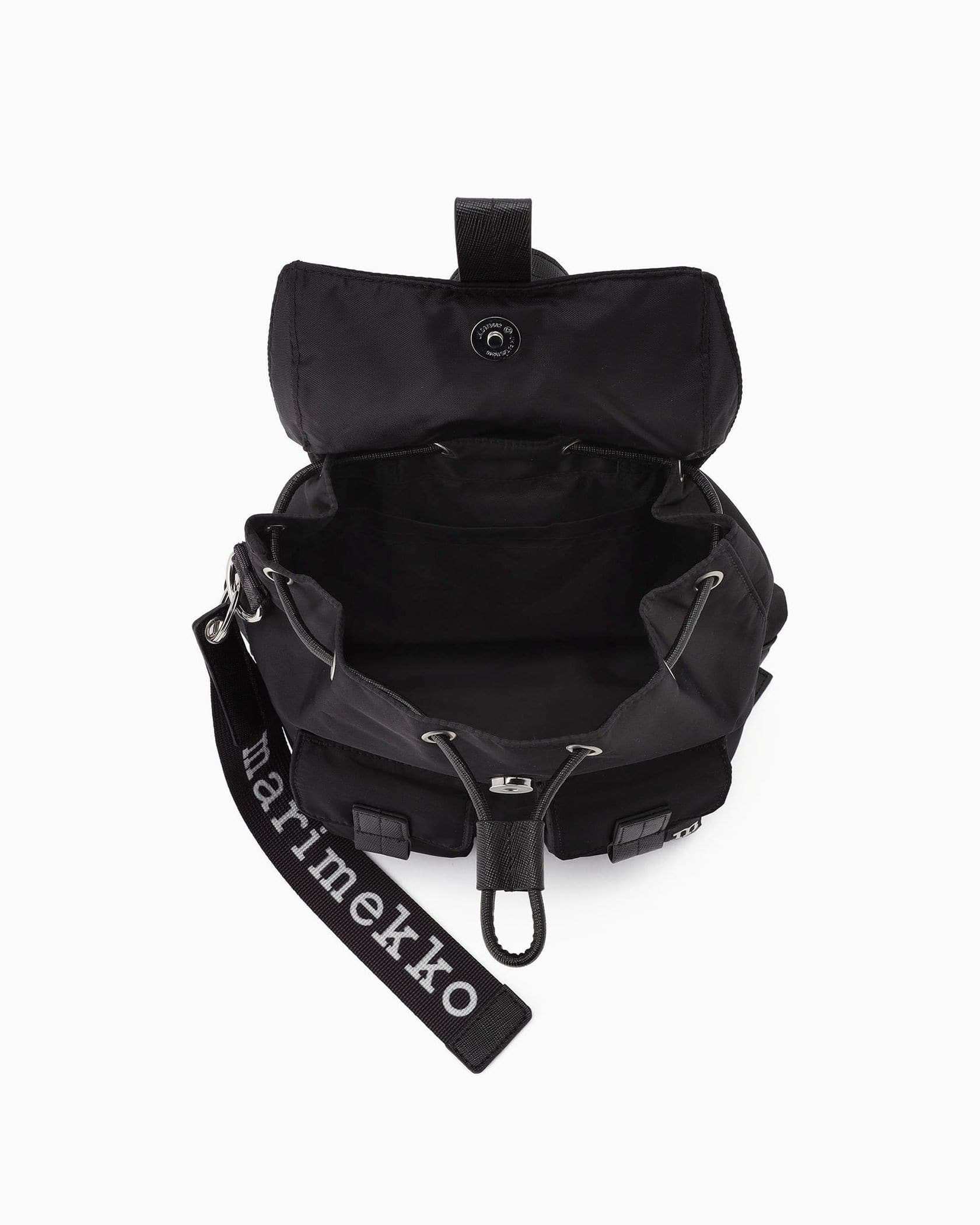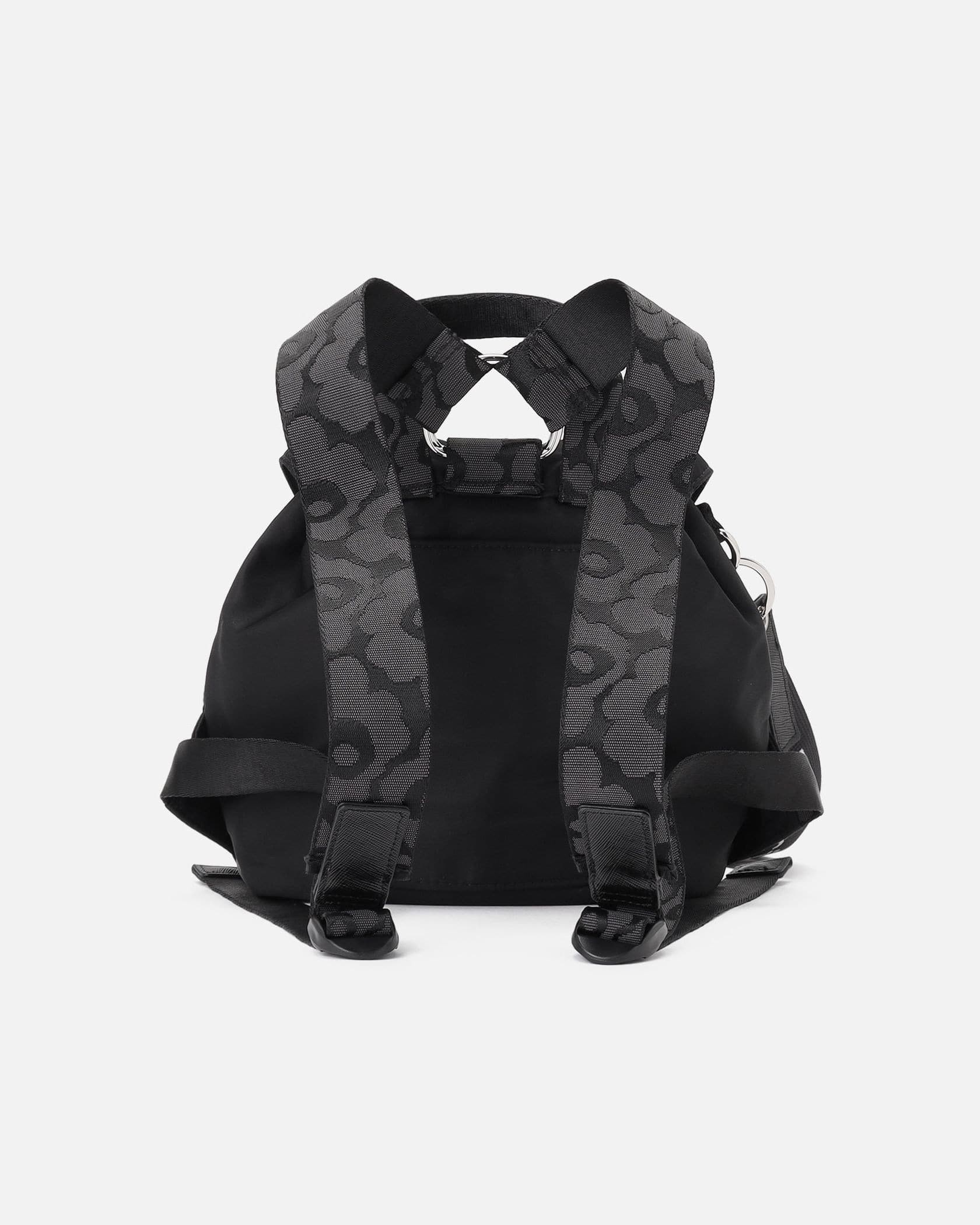 厚みのあるコロンとしたフォルムが可愛らしい、ミニサイズのバックパック。ドローコードで絞り、フラップをかぶせる安心の間口です。立体的なアウトポケットをあしらっていて、すぐに取り出したいものなどはここにイン。合わせやすいソリッドカラーで、ショルダーストラップには「Unikko」柄をチョイスしています。