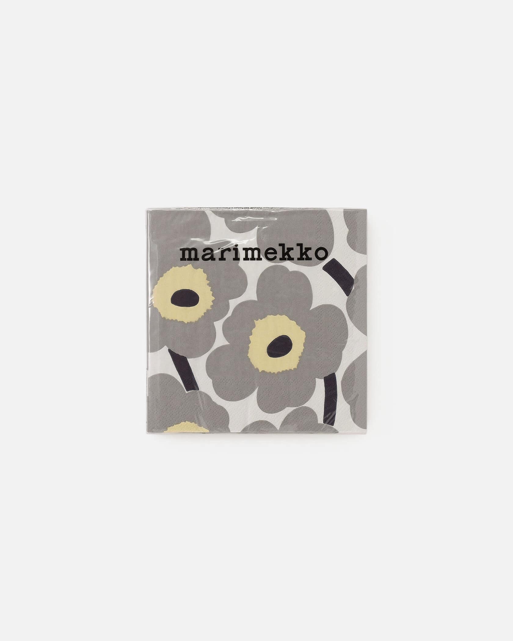 全面にプリントされた花のパターンが華やかなUnikko柄ランチナプキン33×33cm。ニュートラルなグレーがモダンで洗練された印象に。加えて卓上に華やかさを添えてくれるアイテムです。