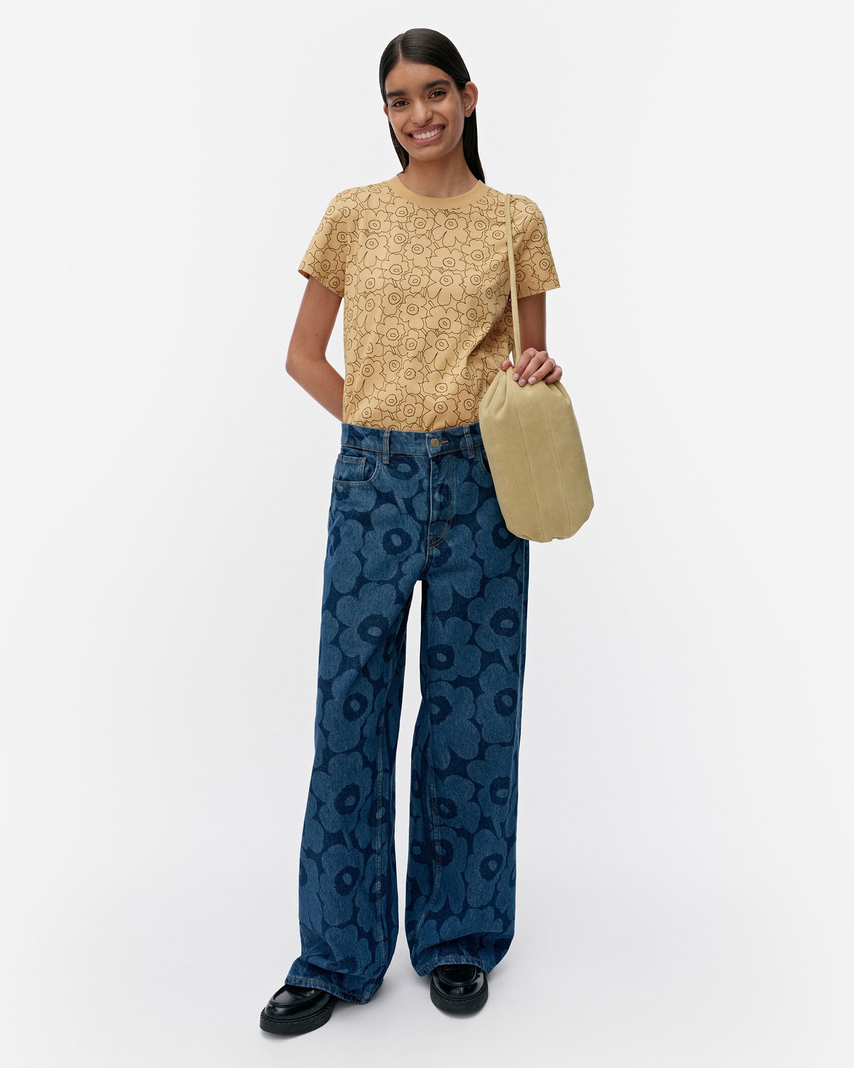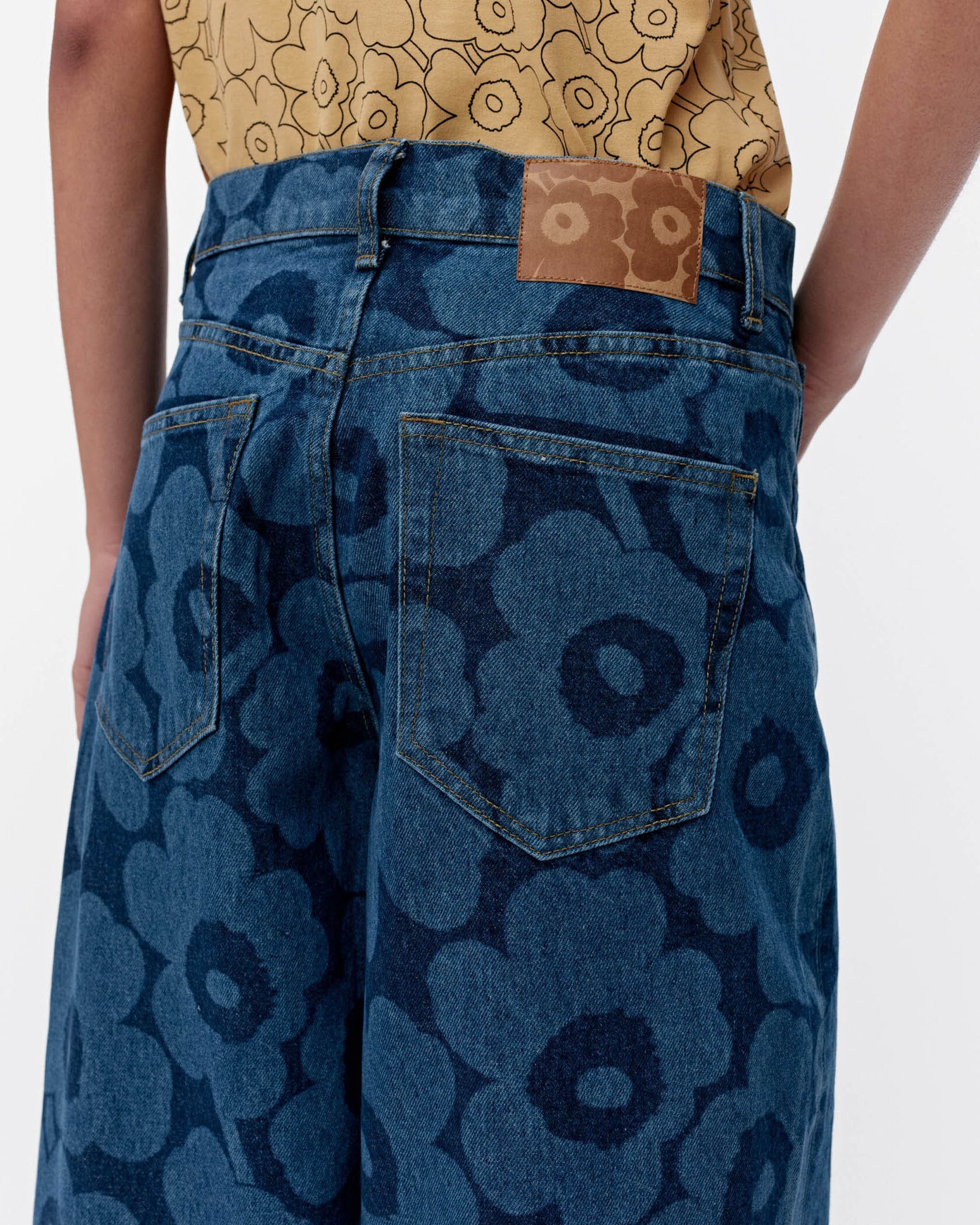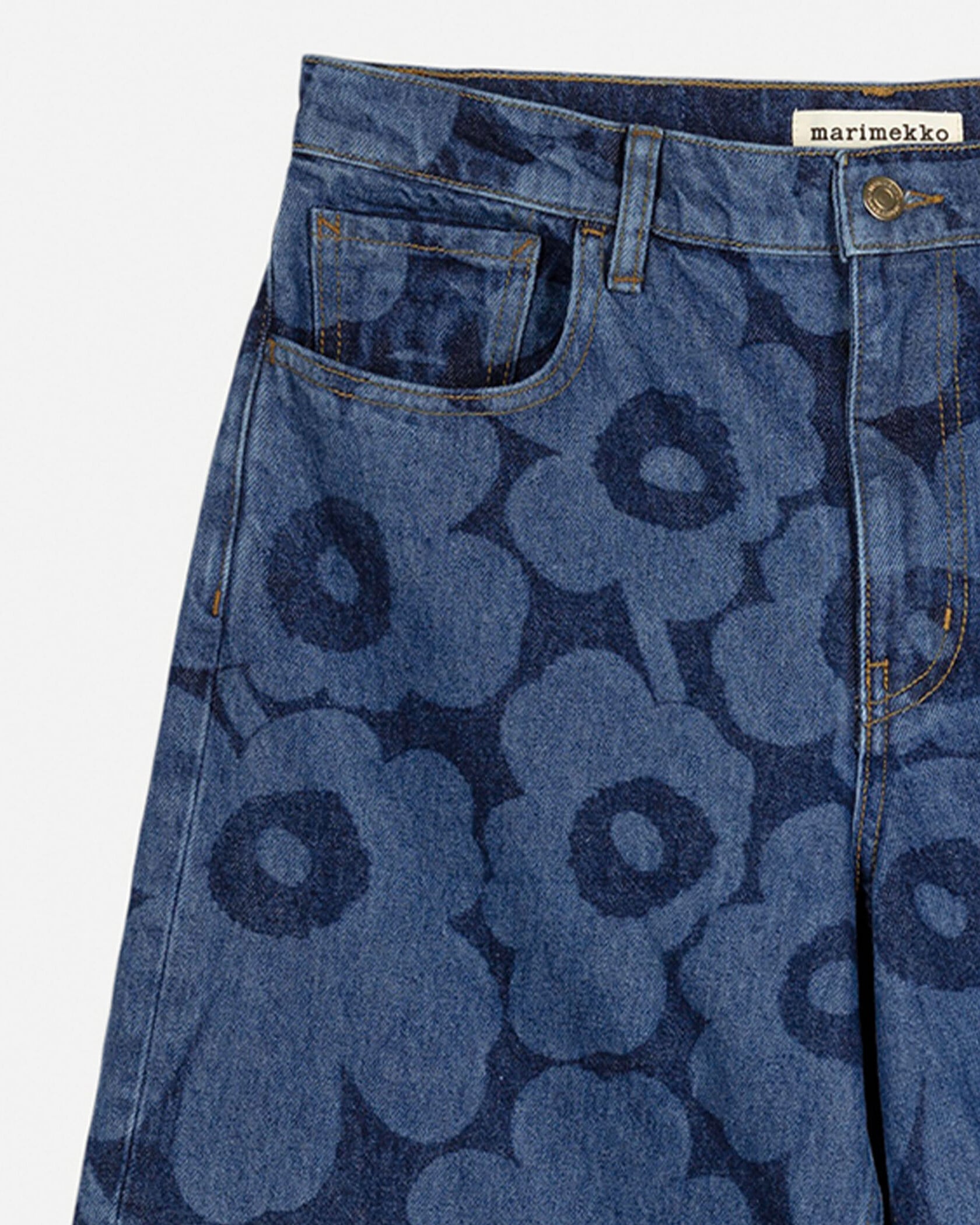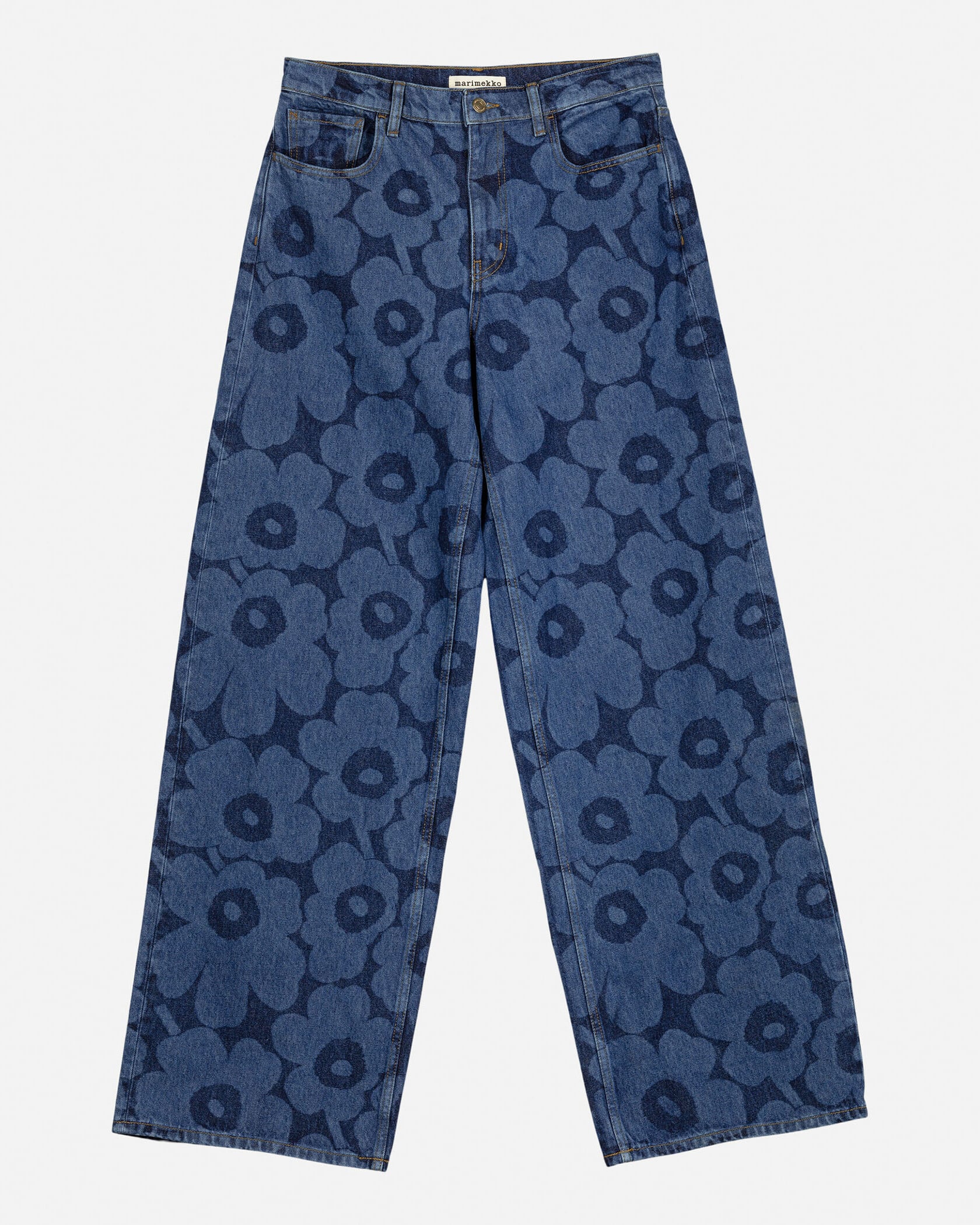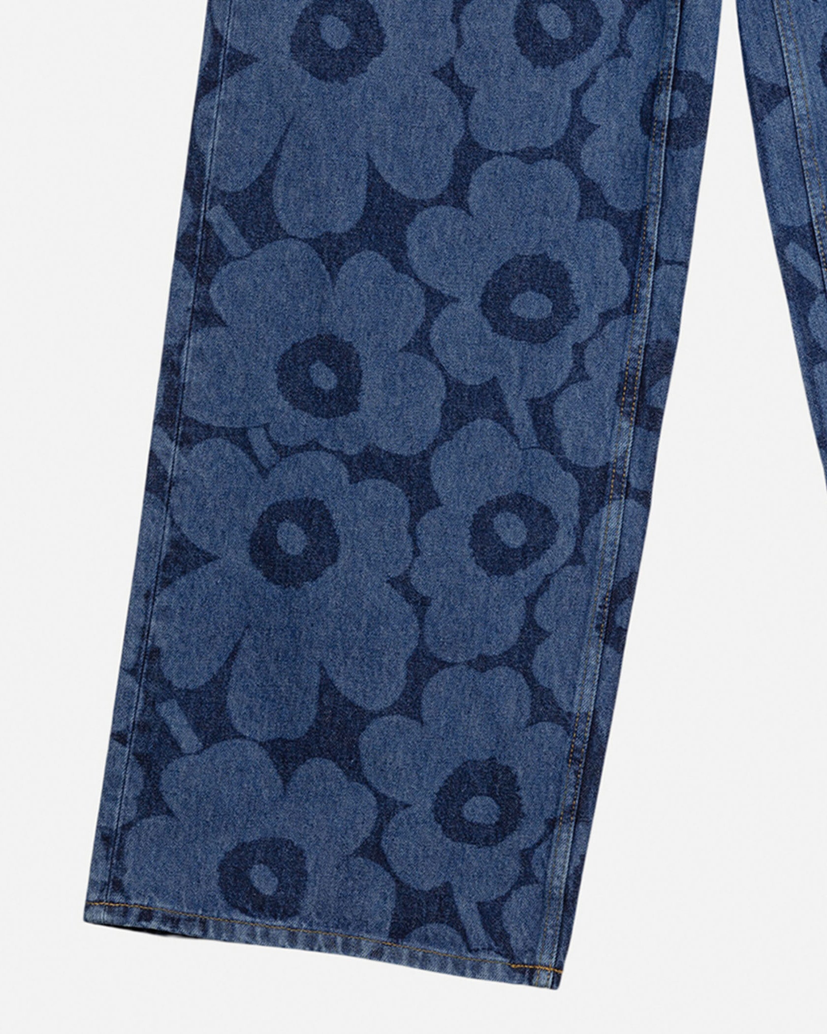 ミッドインディゴのUnikkoパターンで仕上げたMaridenim Loose ジーンズ。程よくゆとりのあるリラックスフィットシルエット。ミッドライズウエストは着こなしやすく、ノンストレッチのコットンデニム生地を採用しています。バックウエストにはUnikko柄のパッチを添えてワンポイントに。