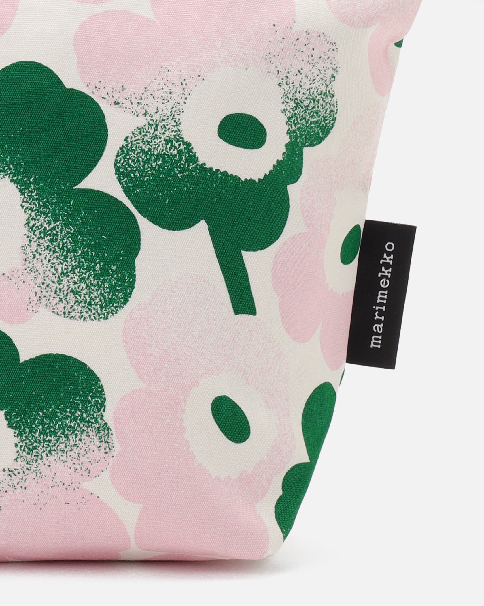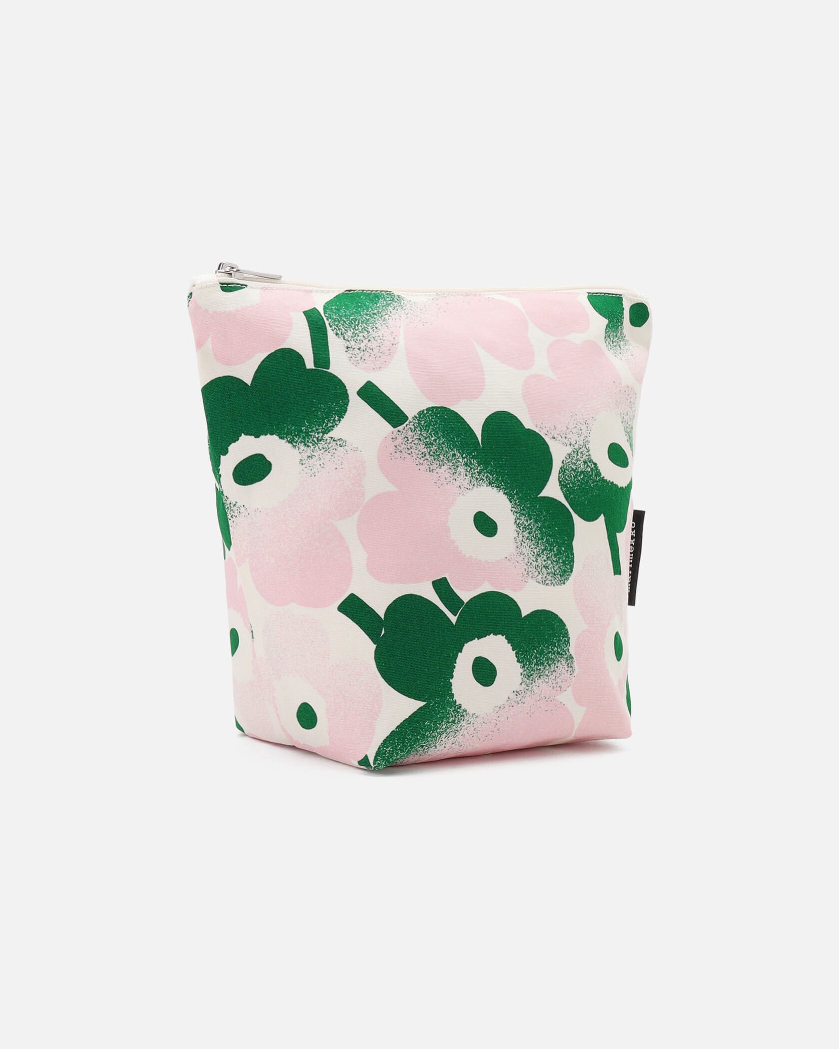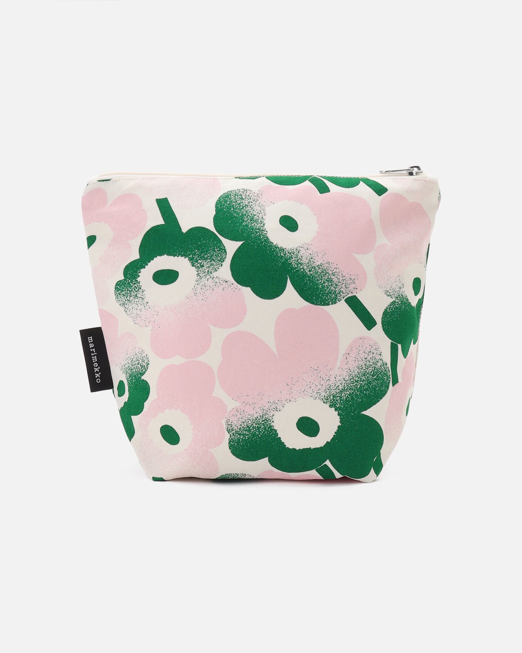 Marimekkoを代表するUnikko柄が華やかなデザインのコスメポーチ。2カラーのグラデーションがスタイリッシュなデザイン。広く取り出しやすい開閉部はジップ仕様。サイドにはブランドロゴタグ付きのアクセント。底は幅のあるマチ付きで収納力があり、様々な用途にマッチするアイテムです。