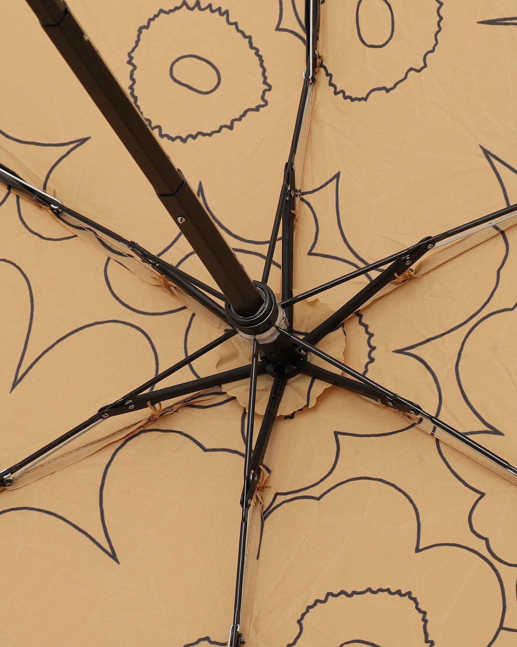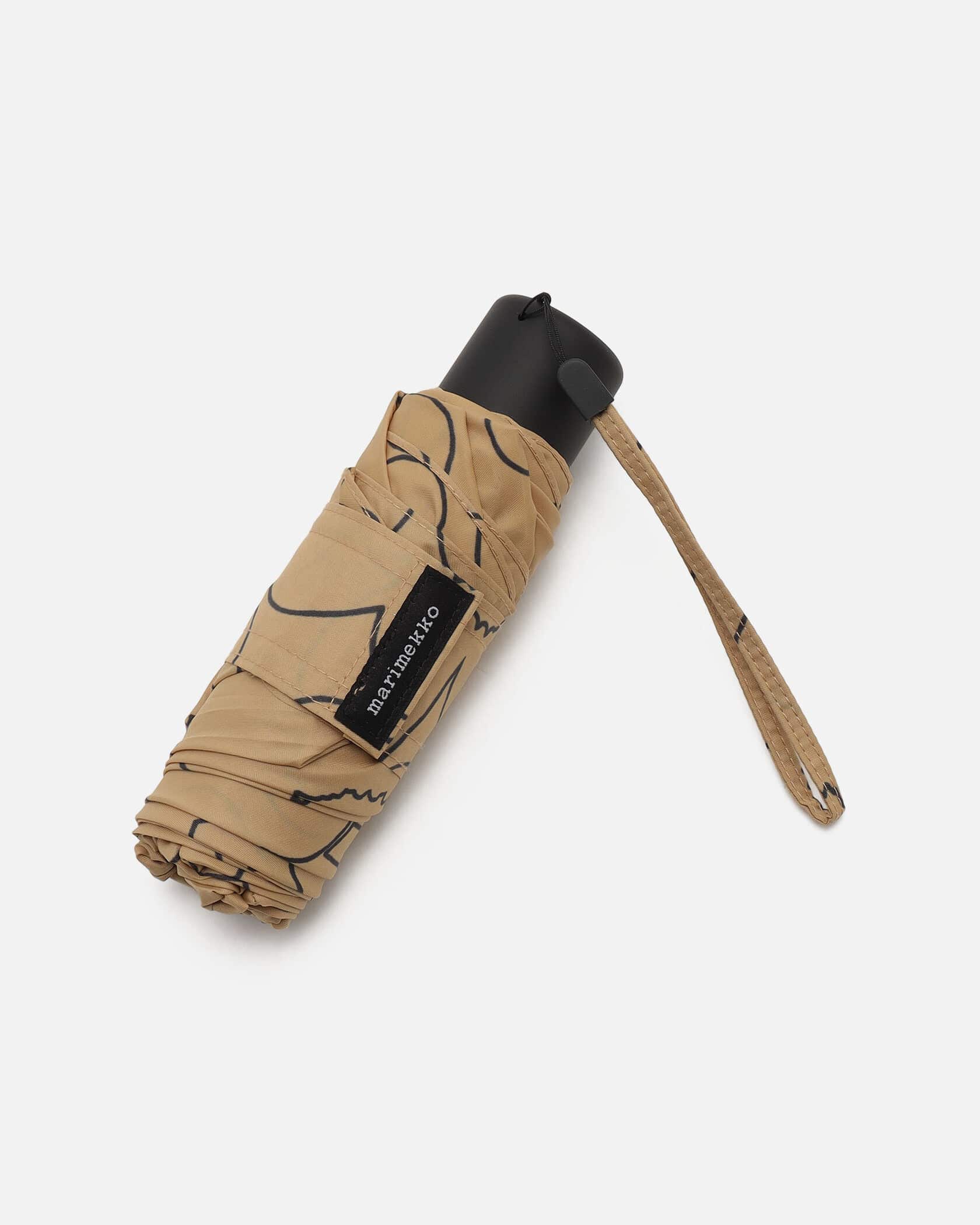Unikko柄のグラフィカルなラインを強調した、ミニマリズムを彷彿とさせるPiirto Unikkoパターンの折りたたみ傘。バッグの中でもかさばらないスリムなフォルム。同柄の専用カバーと手に掛けやすいストラップつき。