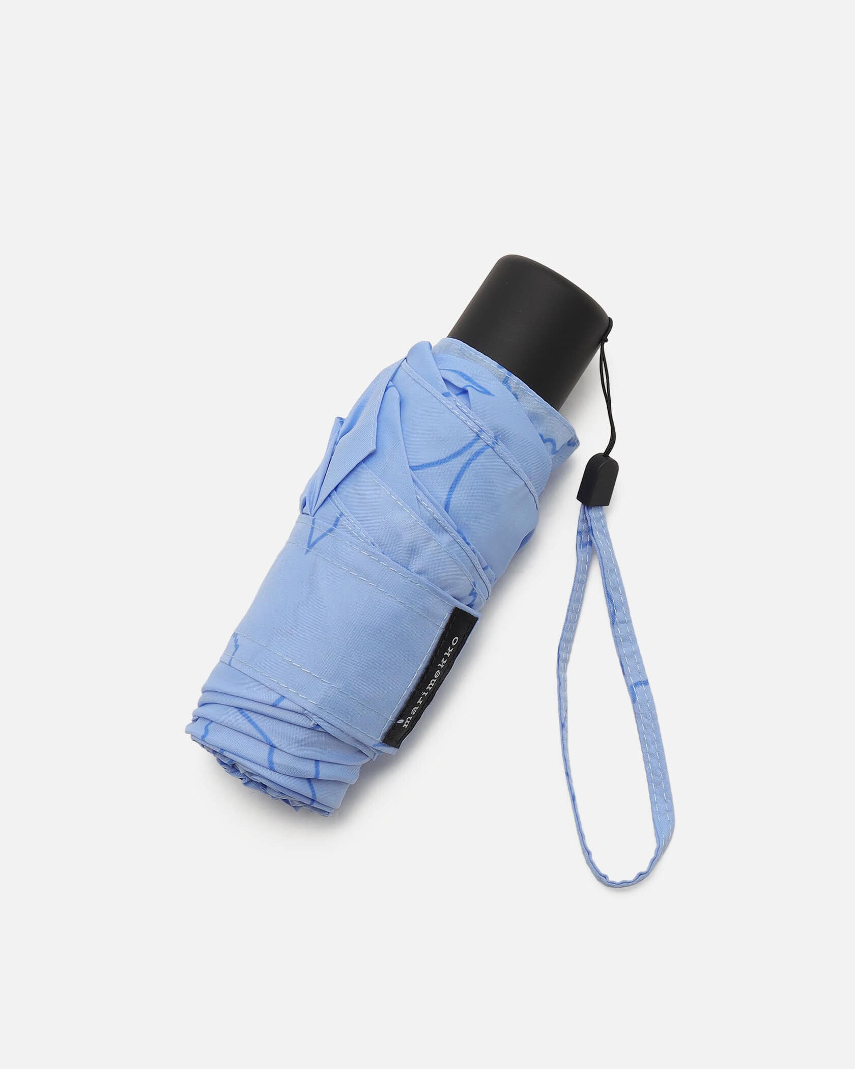 Unikko柄のグラフィカルなラインを強調した、ミニマリズムを彷彿とさせるPiirto Unikkoパターンの折りたたみ傘。バッグの中でもかさばらないスリムなフォルム。同柄の専用カバーと手に掛けやすいストラップつき。