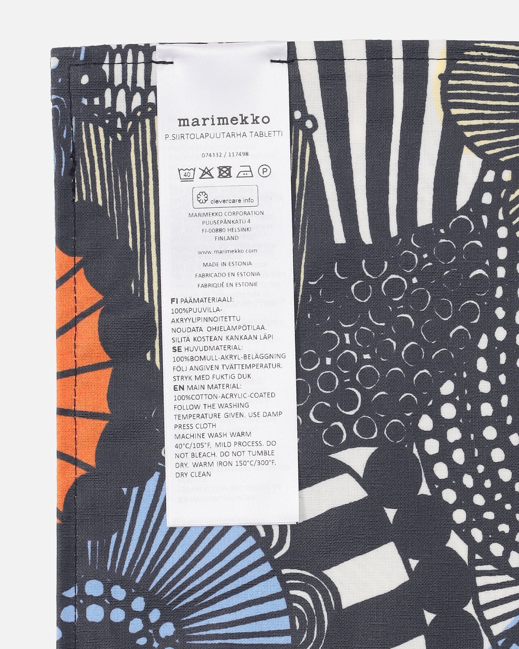 食卓を明るく彩るプレイスマット。家族分をそろえておき、食事の際にテーブル汚れを防ぐ役割も果たします。家庭菜園を意味する「Siirtolapuutarha」柄は、食事シーンにまさにぴったり。インテリアにこだわる人も納得のスタイリッシュな色使いもポイントです。