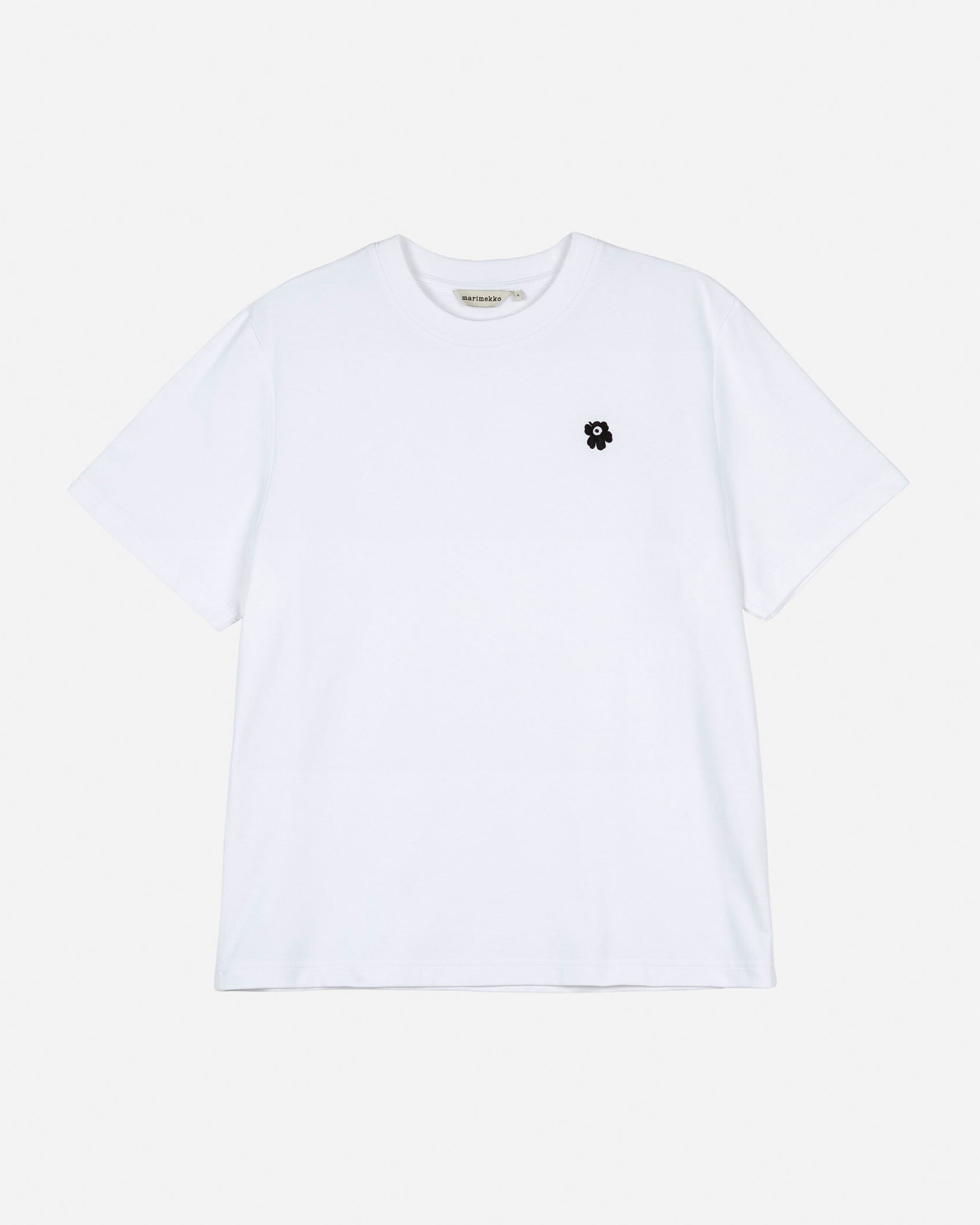 胸元に添えた小さなUnikko柄がアクセントになったTシャツです。ゆったりとしたサイジングと、しっかりとしたネックラインの仕立てで、ゆるさときれいめな印象を両立させたアイテムです。肌当たりが良く、上質な風合いの天竺素材を使用。大人に相応しい、クラス感のあるカジュアルスタイルを楽しめます。