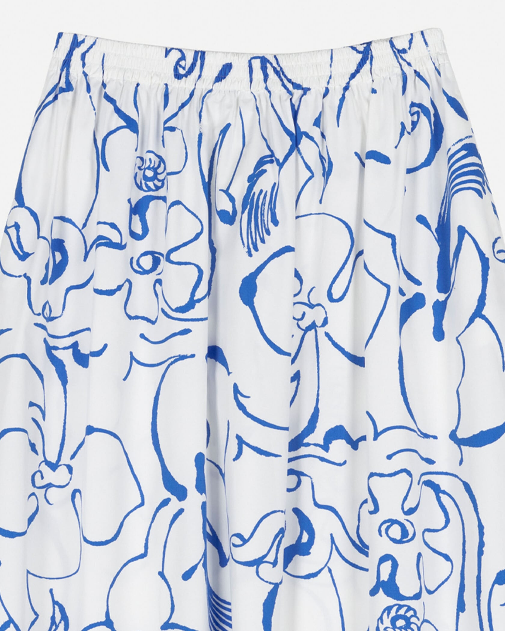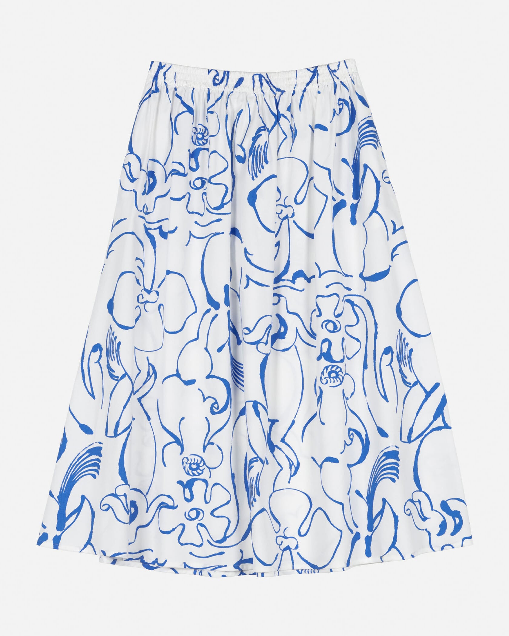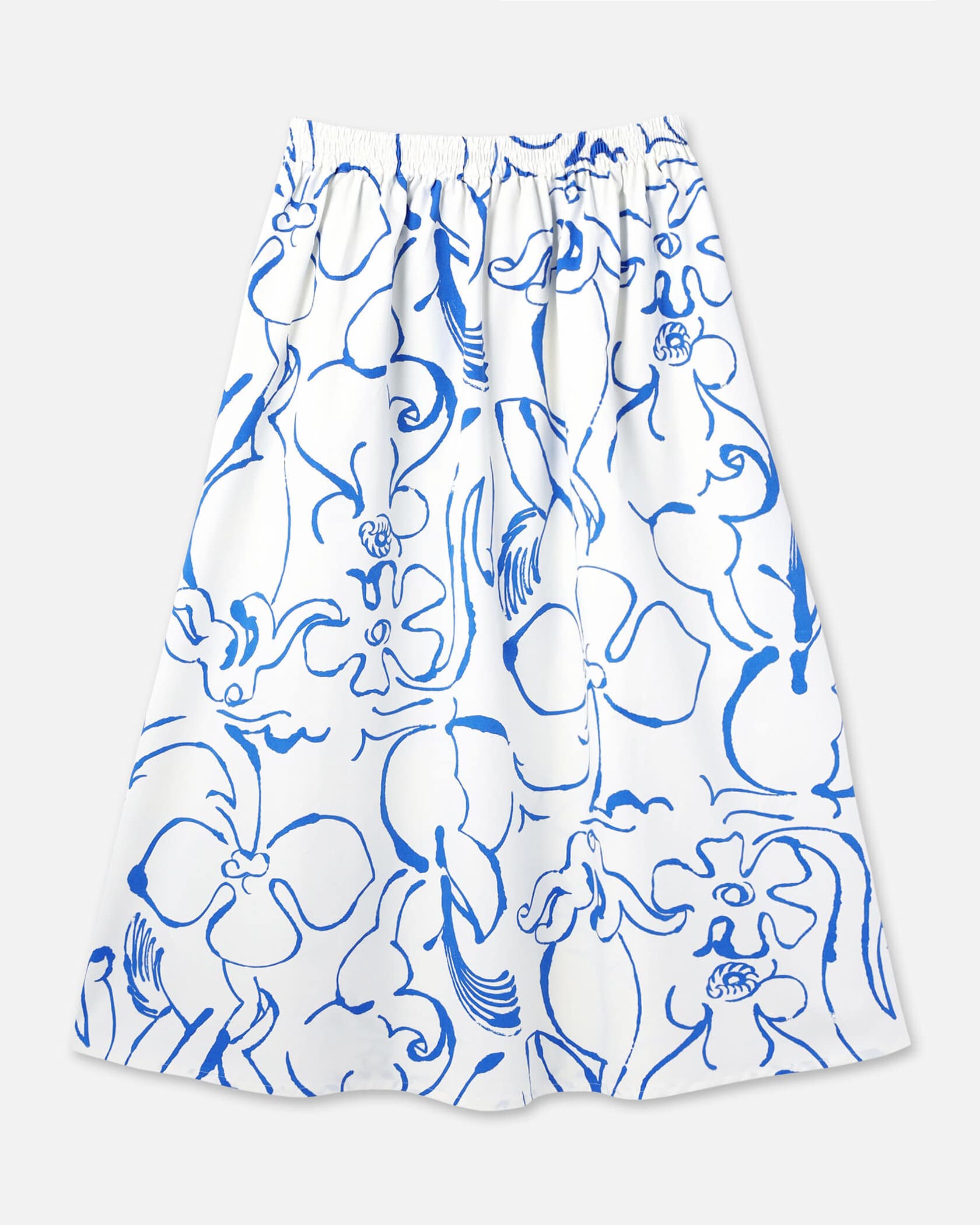 パーティーを意味するBaluns柄のスカート。お祝いで見られる輝かしいエネルギーを表現しており、抽象的なフラワーモチーフが描かれています。伸縮性のあるウエストバンドが快適な履き心地。サイドにポケットを配置しています。