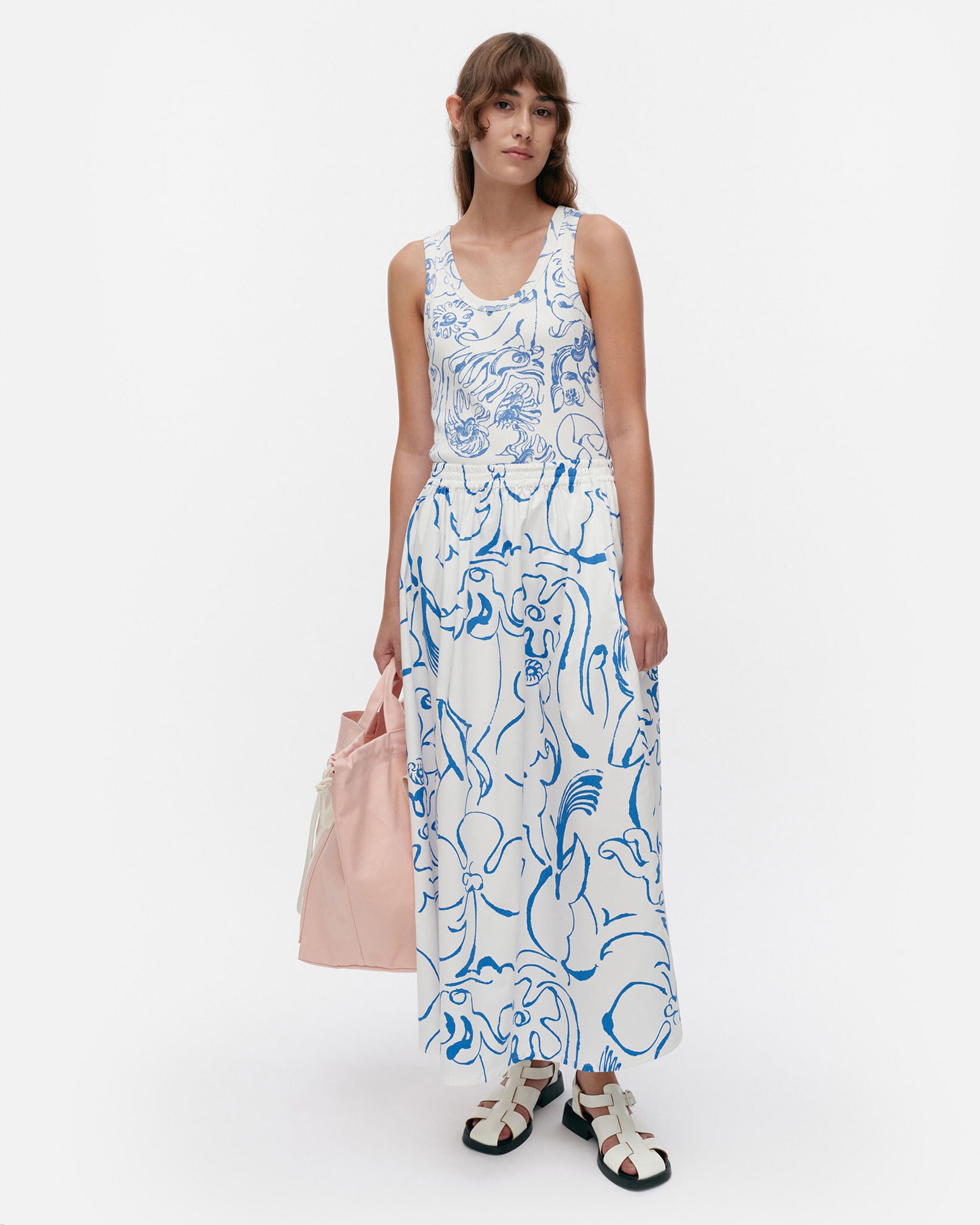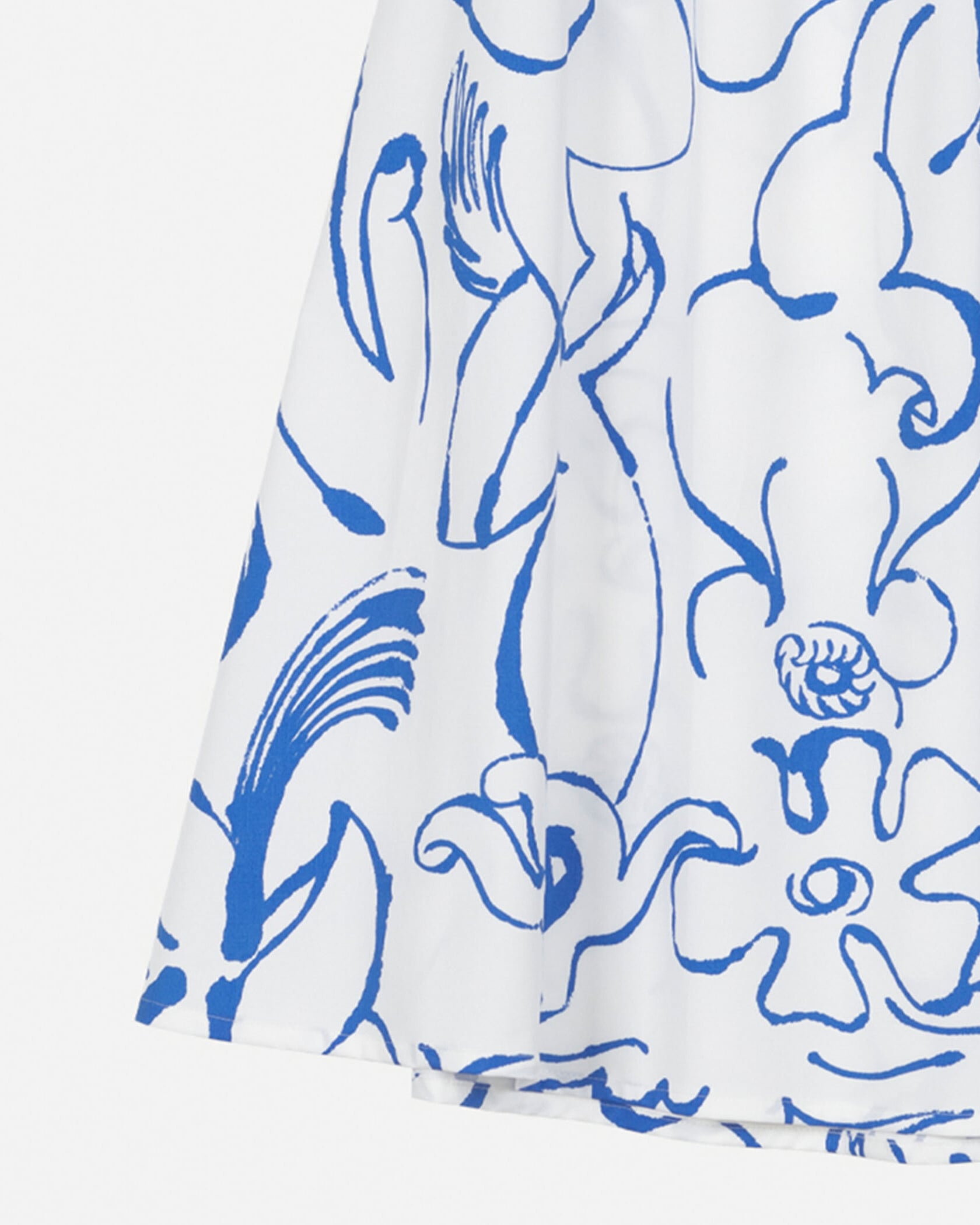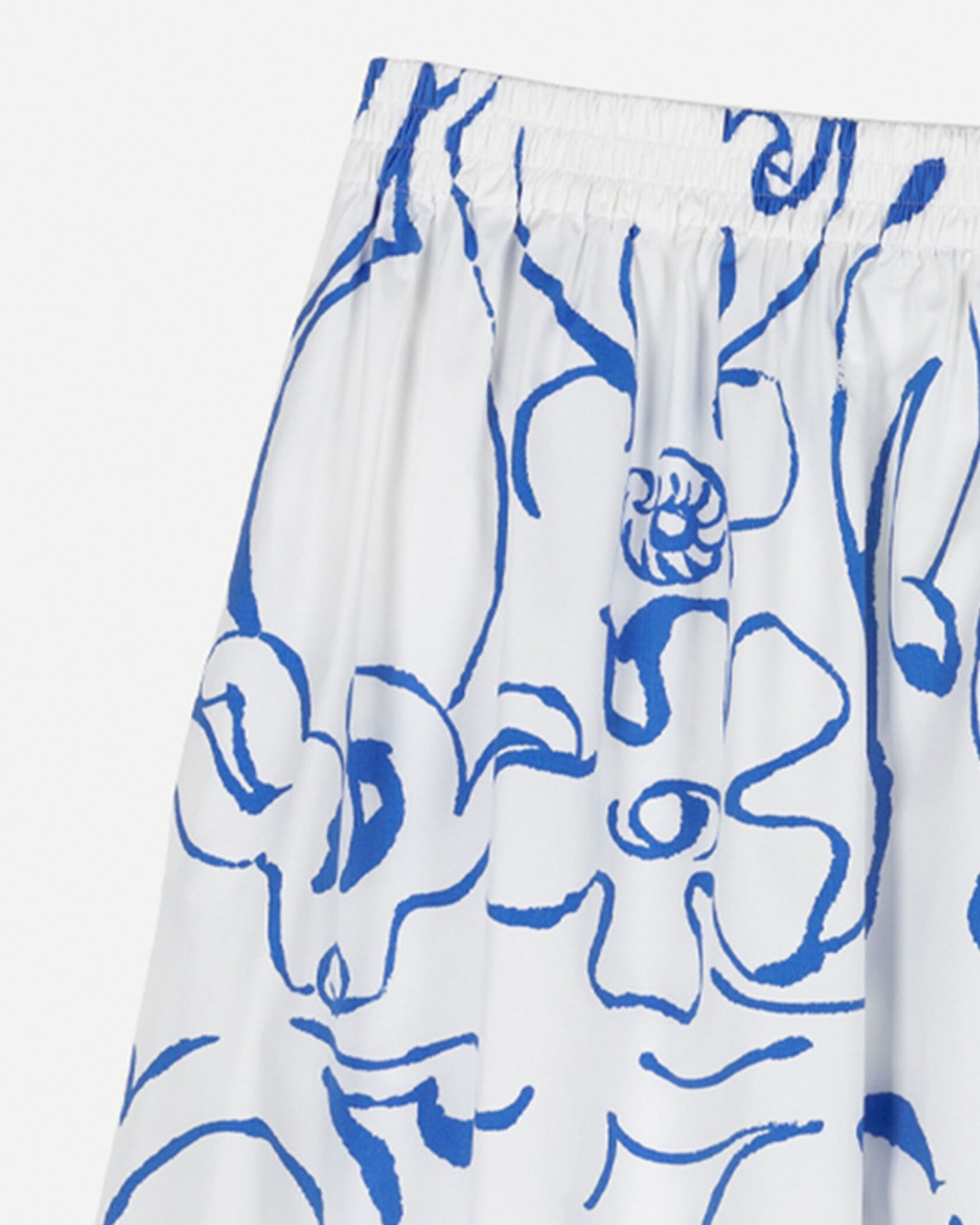 パーティーを意味するBaluns柄のスカート。お祝いで見られる輝かしいエネルギーを表現しており、抽象的なフラワーモチーフが描かれています。伸縮性のあるウエストバンドが快適な履き心地。サイドにポケットを配置しています。