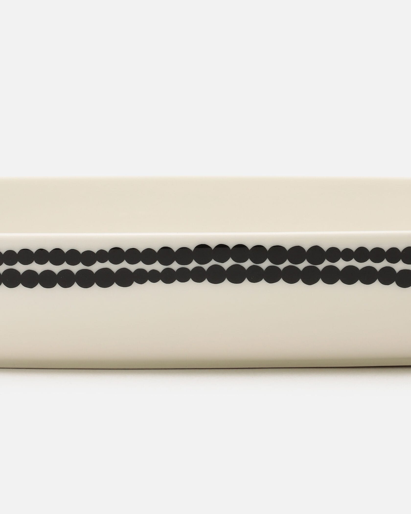 シンプルで洗練されたデザインのサービングディッシュです。サイドには、モノトーンのモダンなドット模様をあしらっており、食卓にさりげないアクセントを添えます。メインディッシュを盛り付けるのに最適なスクエア型は、パーティーや日常使いにも最適です。ギフトとしてもおすすめのアイテムです。
