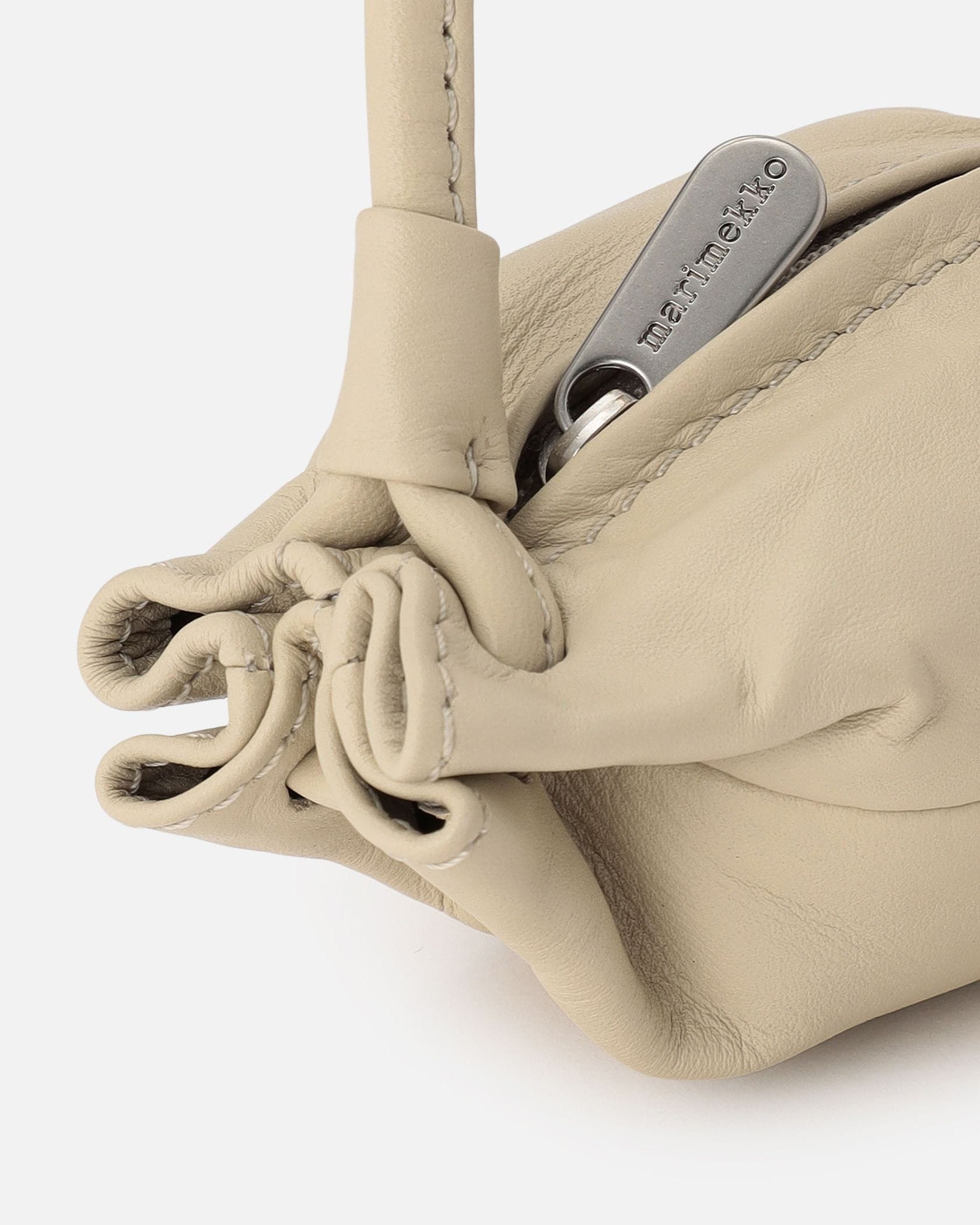 Marimekko定番人気のKarlaバッグが、遊び心のあるミニチュア版ポーチになって登場。キャンディの包み紙からヒントを得た可愛らしいフォルムが特徴。バッグを作る際の余りのレザーから作られたというサスティナブルな点もポイントです。小物入れとしても、バッグに取り付けてチャームとしてもお使いいただけます。