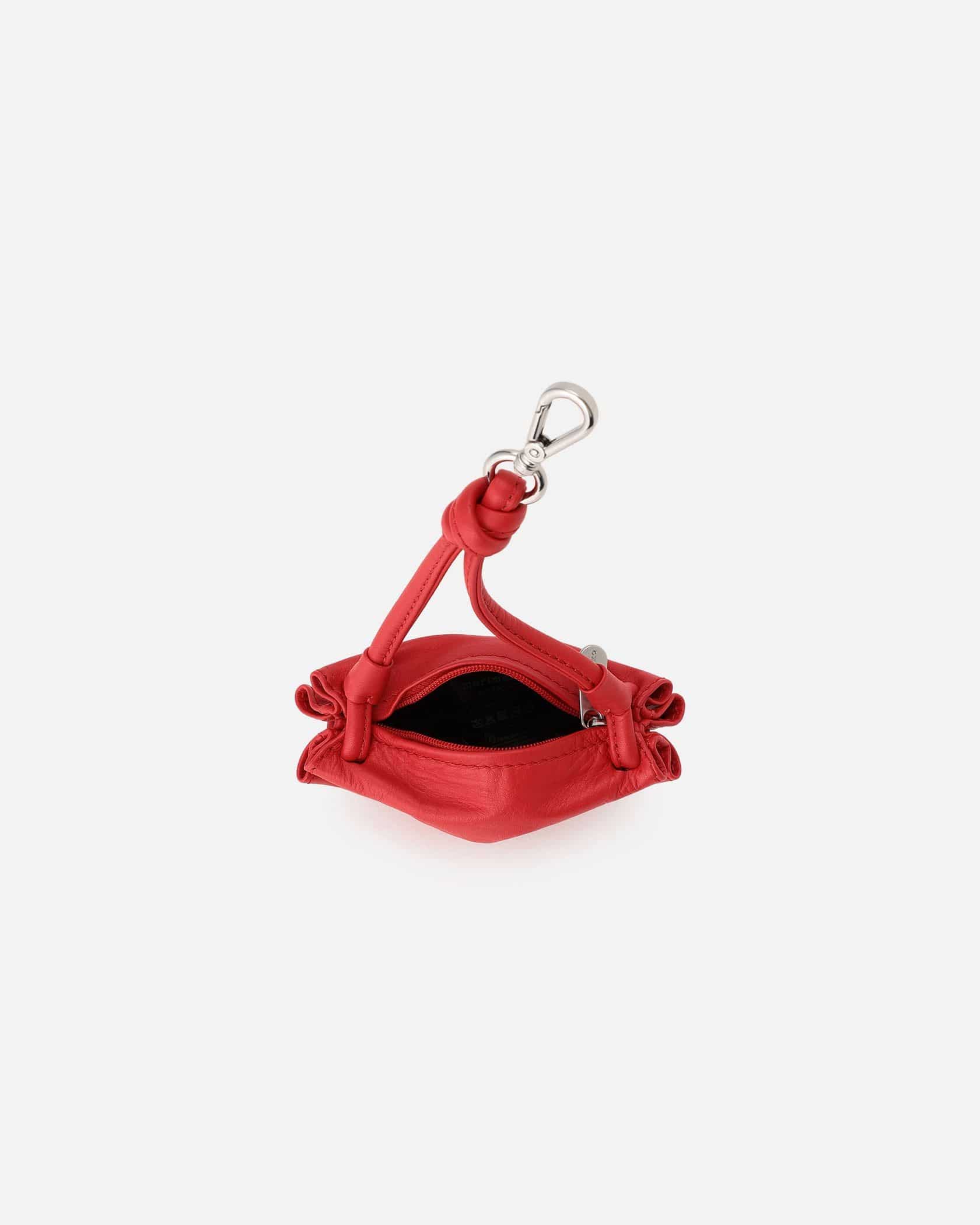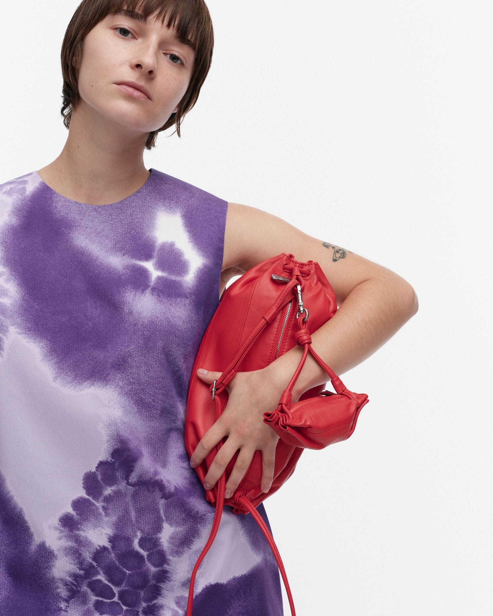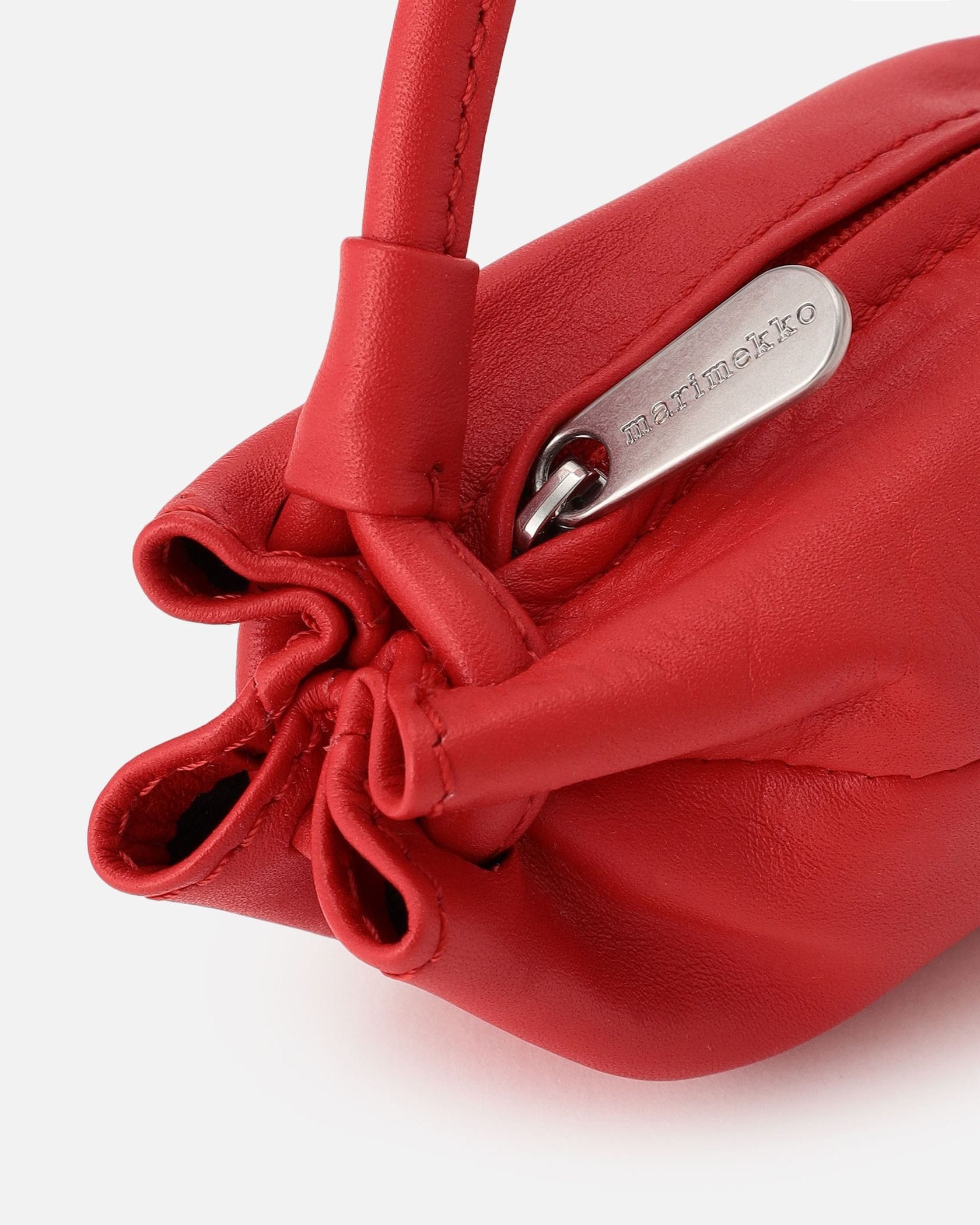 Marimekko定番人気のKarlaバッグが、遊び心のあるミニチュア版ポーチになって登場。キャンディの包み紙からヒントを得た可愛らしいフォルムが特徴。バッグを作る際の余りのレザーから作られたというサスティナブルな点もポイントです。小物入れとしても、バッグに取り付けてチャームとしてもお使いいただけます。