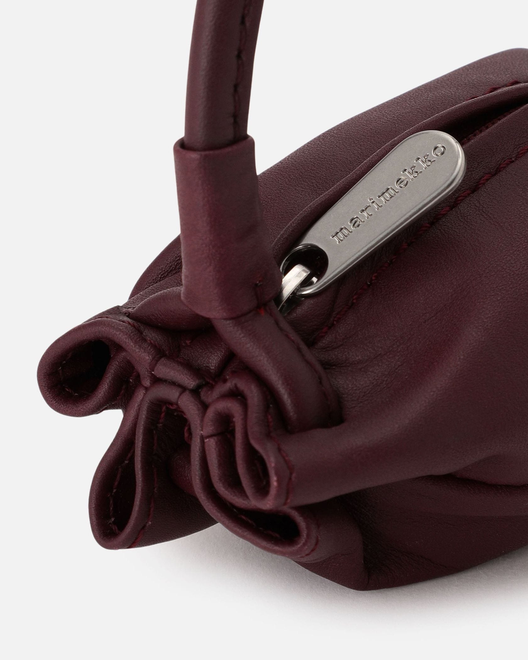 Marimekko定番人気のKarlaバッグが、遊び心のあるミニチュア版ポーチになって登場。キャンディの包み紙からヒントを得た可愛らしいフォルムが特徴。バッグを作る際の余りのレザーから作られたというサスティナブルな点もポイントです。小物入れとしても、バッグに取り付けてチャームとしてもお使いいただけます。
