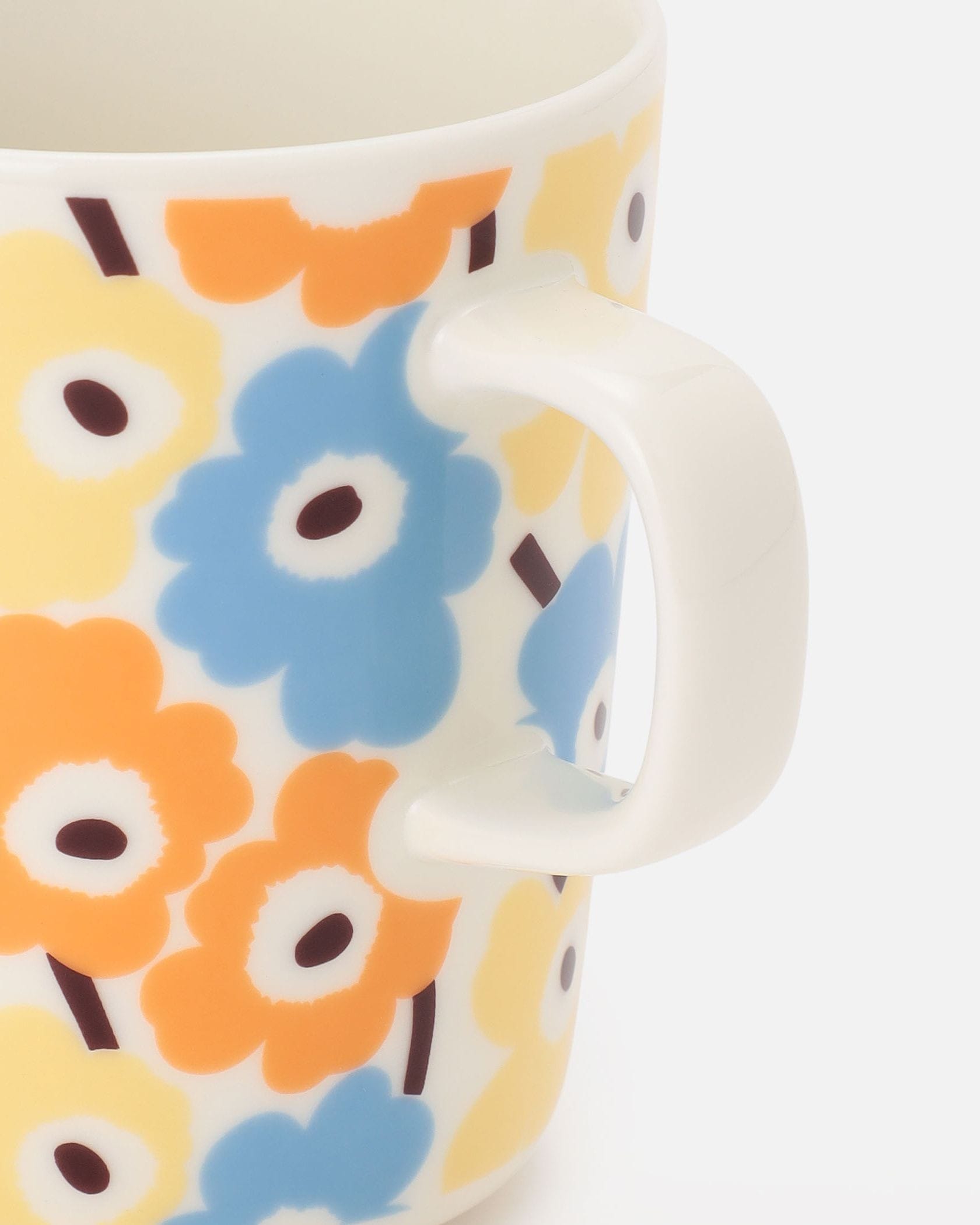 色とりどりのUnikko柄を散りばめた華やかなマグカップ。日常使いしやすい250mlサイズで、朝食のミルク、おやつタイムの紅茶、デスクワークのコーヒーなどを入れるのに最適です。食洗機、電子レンジ、冷凍庫対応の便利な仕様も魅力。日常を彩る洗練されたアイテムは、ギフトとしてもおすすめです。